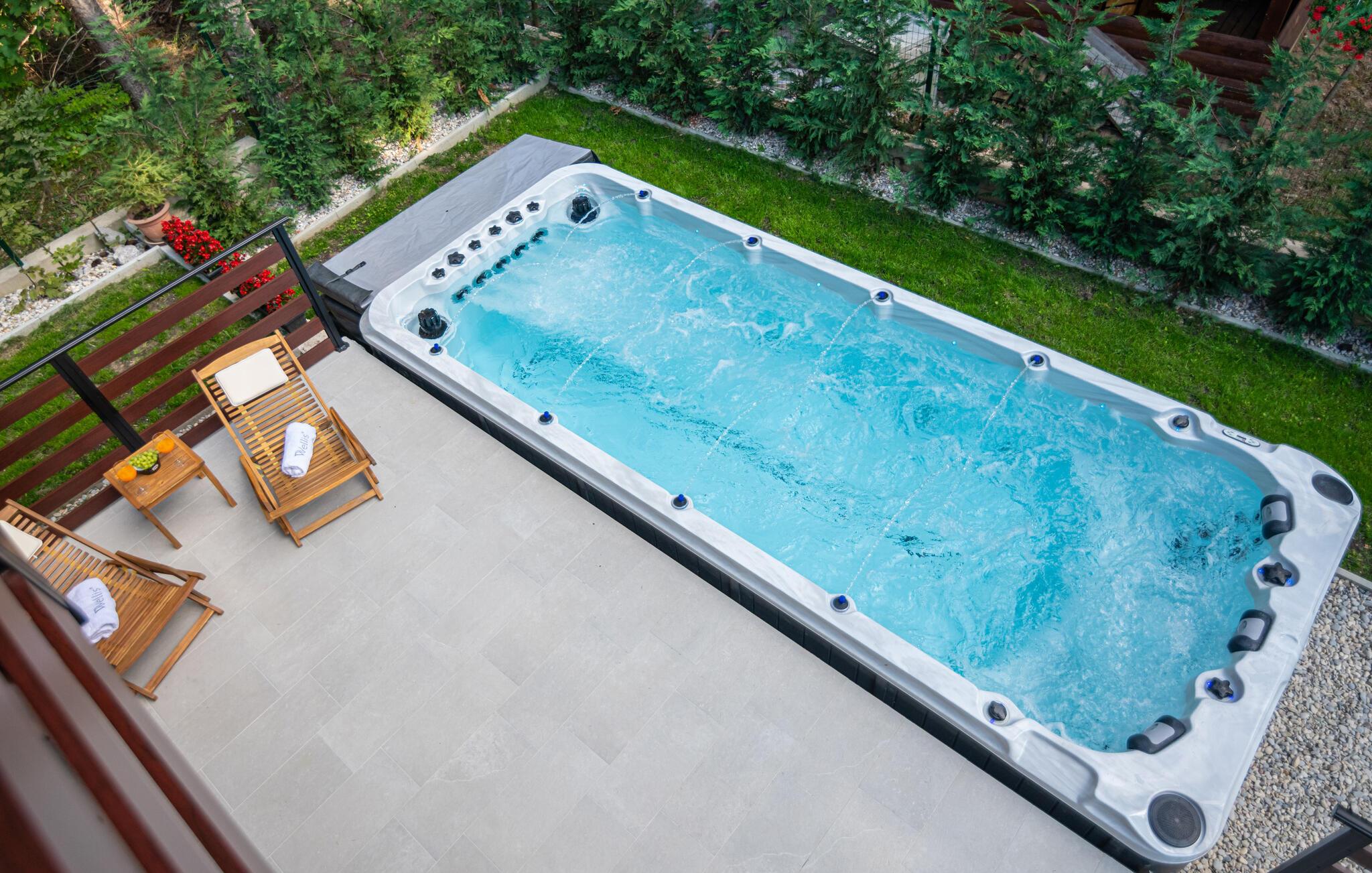 Gå udenfor om morgenen med en frisk kop kaffe og nyd naturens ro. Poolen lægger op til at tage en dukkert eller spille vandpolo når som helst. Tilbring afslappende timer på terrassen med at snakke eller fordybe jer i en god bog. I mellemtiden kan børnene klatre, rutsje og gynge i legehuset.