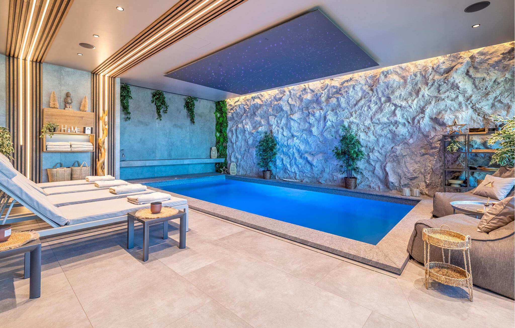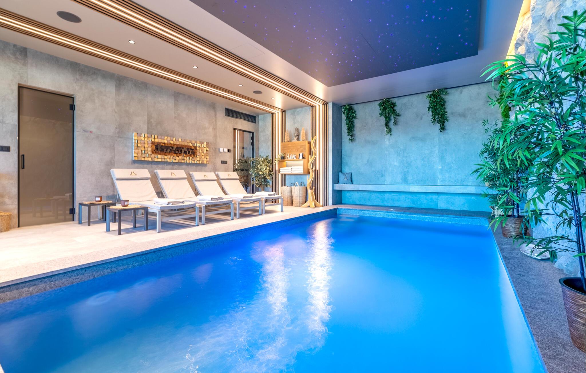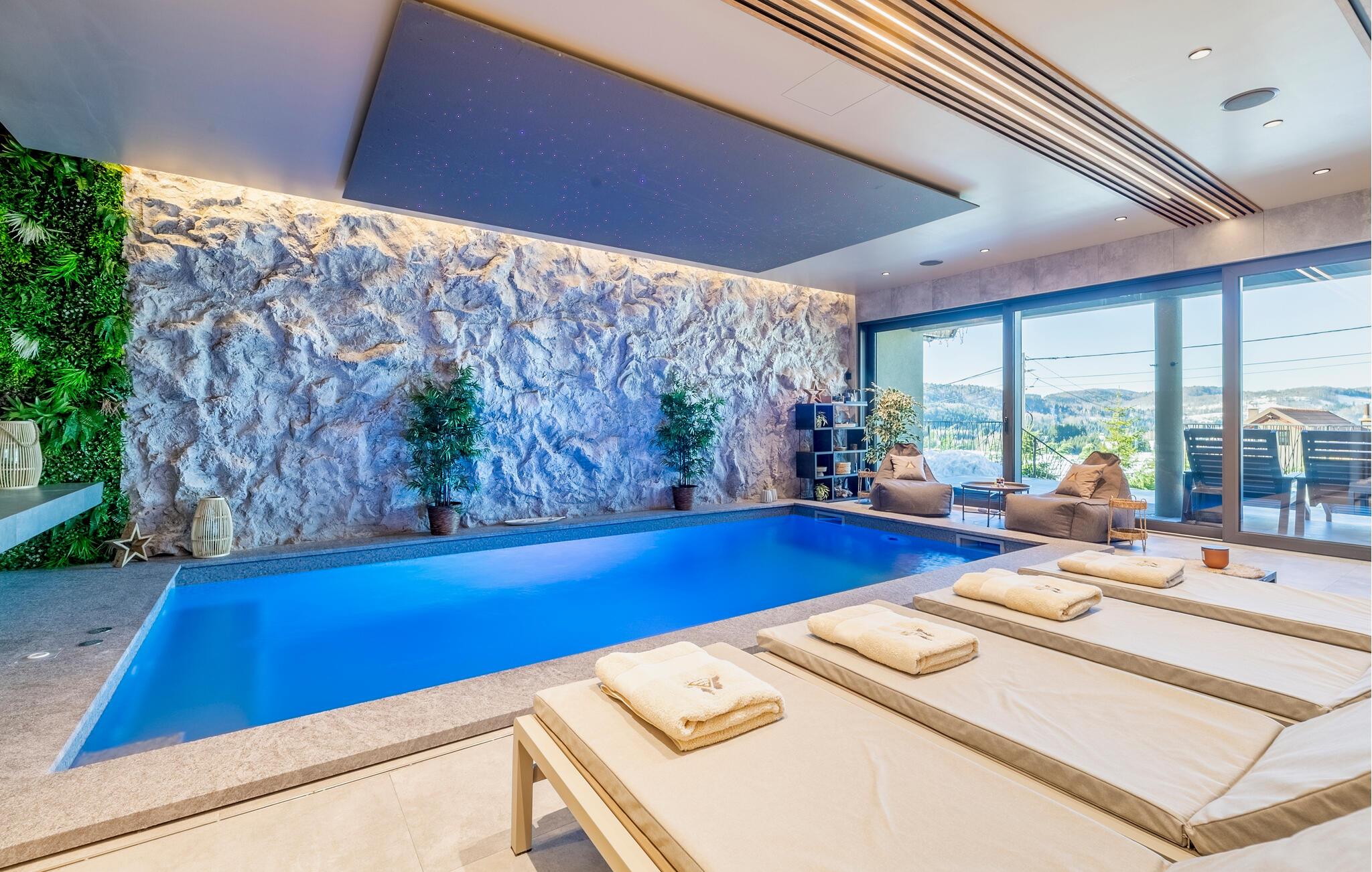 Nyd den smukke udsigt over landskabet i dette feriehus med wellness-område og indendørs pool.