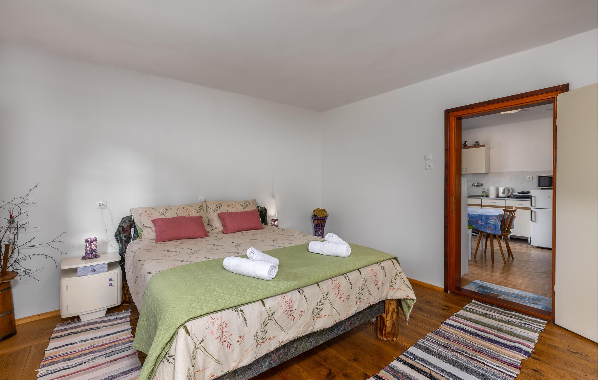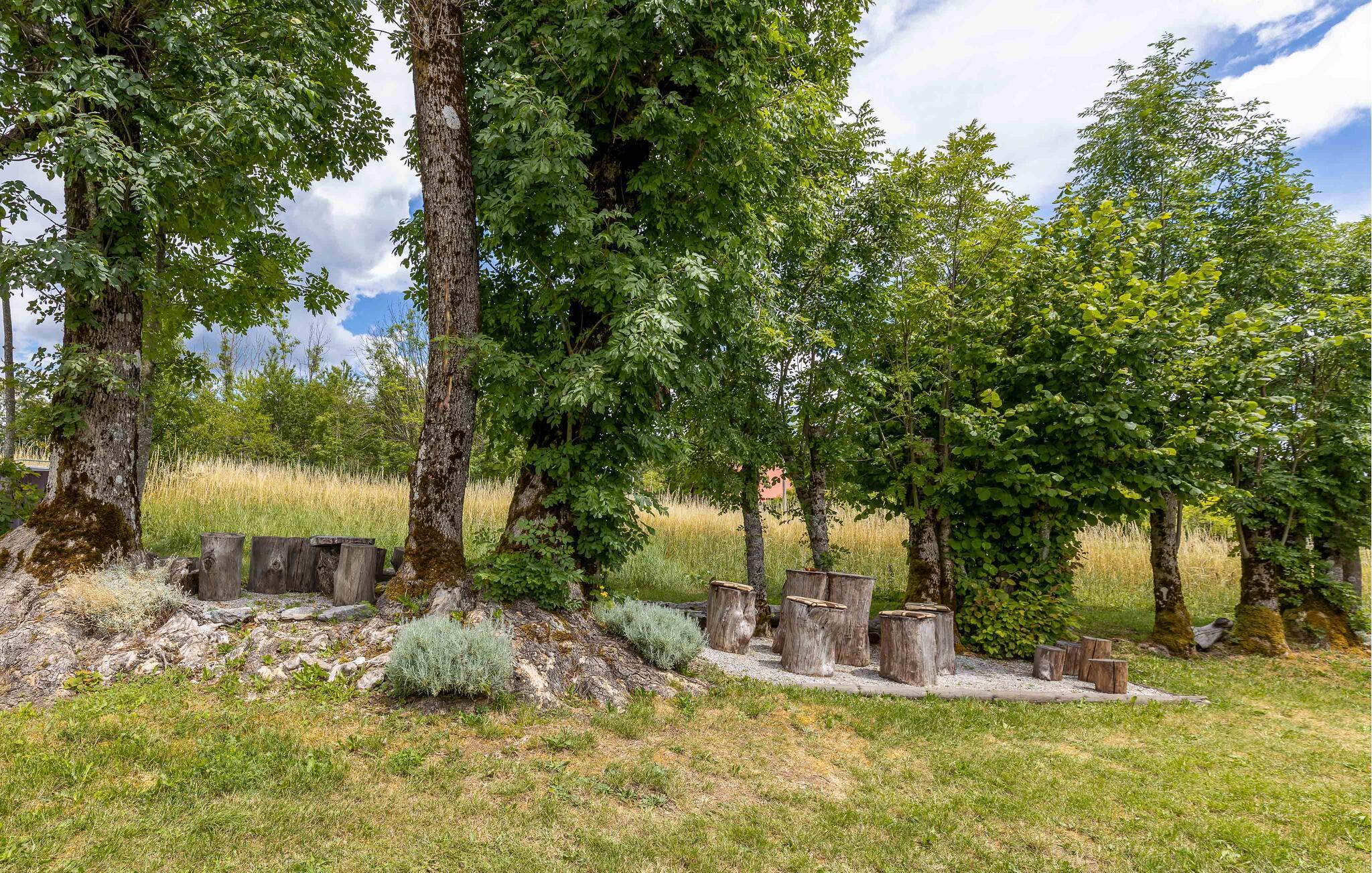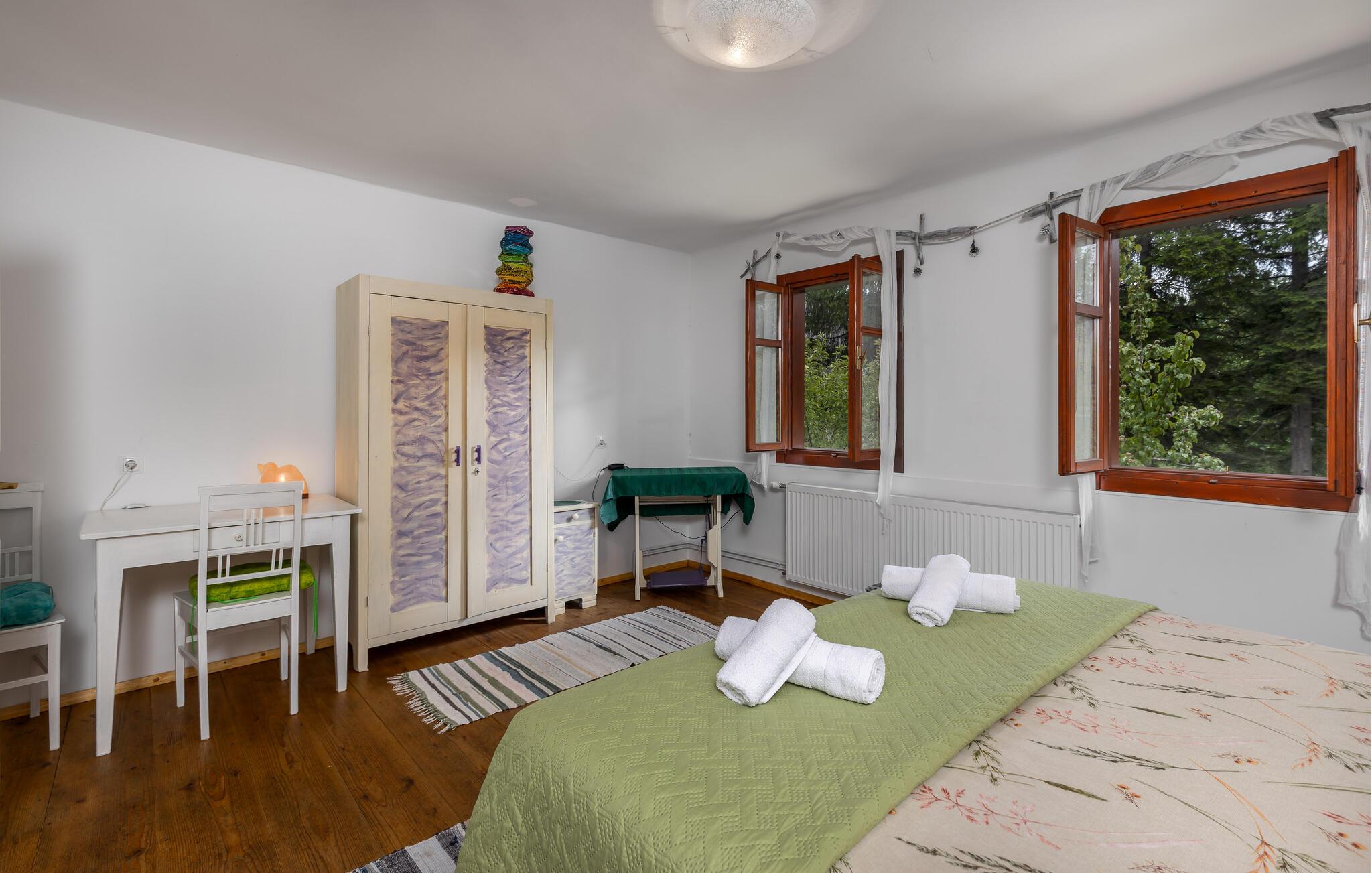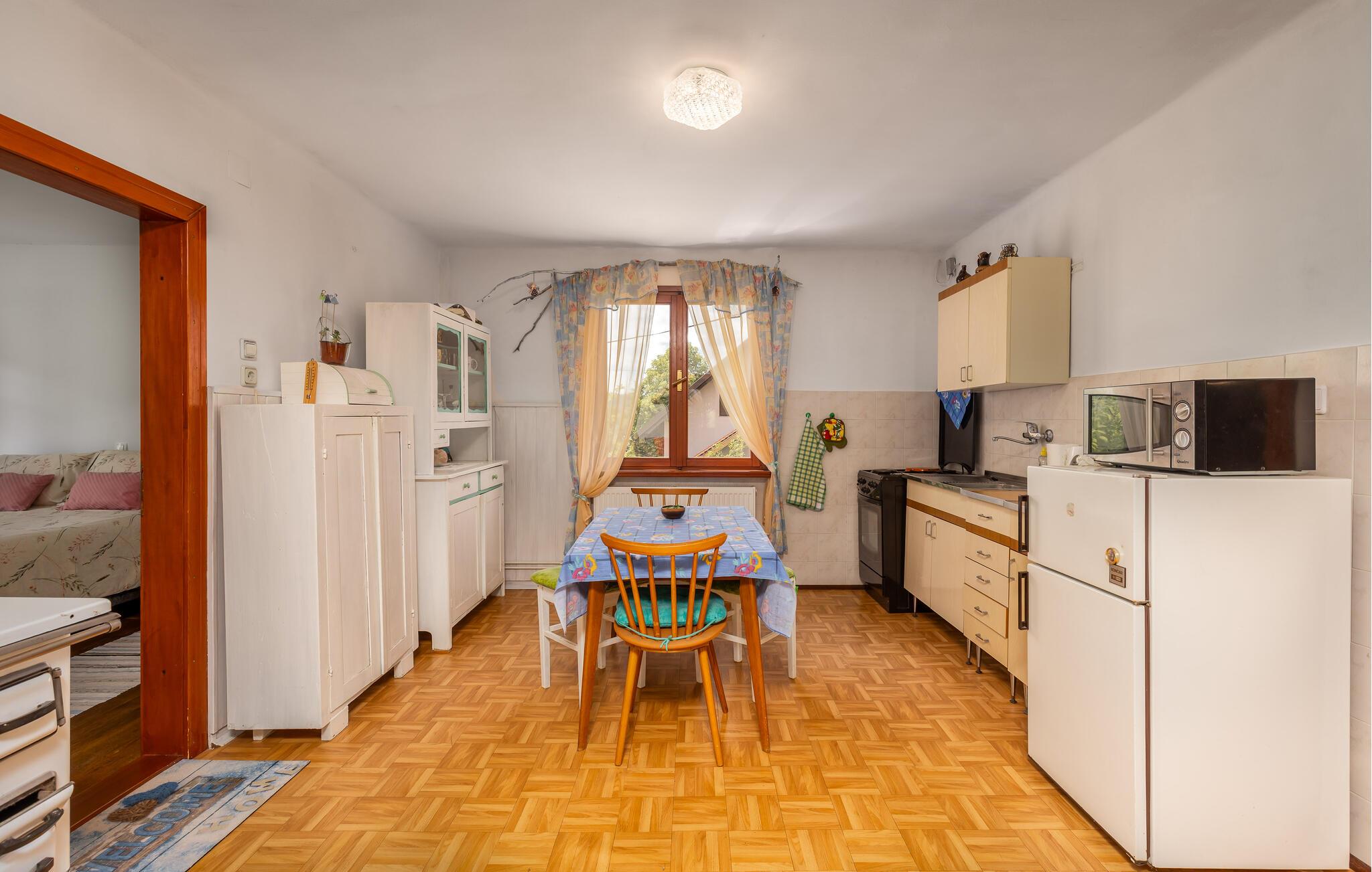 Nyd jeres ferie i dette idyllisk beliggende feriehus. Dette indbydende hus byder jer velkommen med en vellykket blanding af rustik charme og hygge. Træpaneler, synlige træbjælker og en traditionel pejs skaber en atmosfære, der er både hyggelig og nostalgisk. Slap af i sofaen, stream jeres yndlingsserie, eller tilbered et lækkert måltid i det moderne køkken. Den smukke have inviterer jer til at slappe af når som helst på dagen. Gå udenfor om morgenen med en duftende kaffe og nyd naturens ro. Find et roligt sted i træernes skygge og fordyb jer i en god bog. Skænk en kroatisk vin i glasset om aftenen og afslut dagen på en afslappet måde. Udforsk de omkringliggende skove og bjerge på vandreture eller cykelture gennem den uberørte natur i Gorski Kotar. Besøg den nærliggende by Vrbovsko, som vil glæde jer med sine maleriske omgivelser og traditionelle arkitektur. Tag på udflugter til regionens floder og søer, som inviterer jer til at fiske, padle eller blot slappe af. Nyd naturens ro og oplev bjergregionens kulinariske specialiteter i gæstehusene i Ravna Gora og omegn.