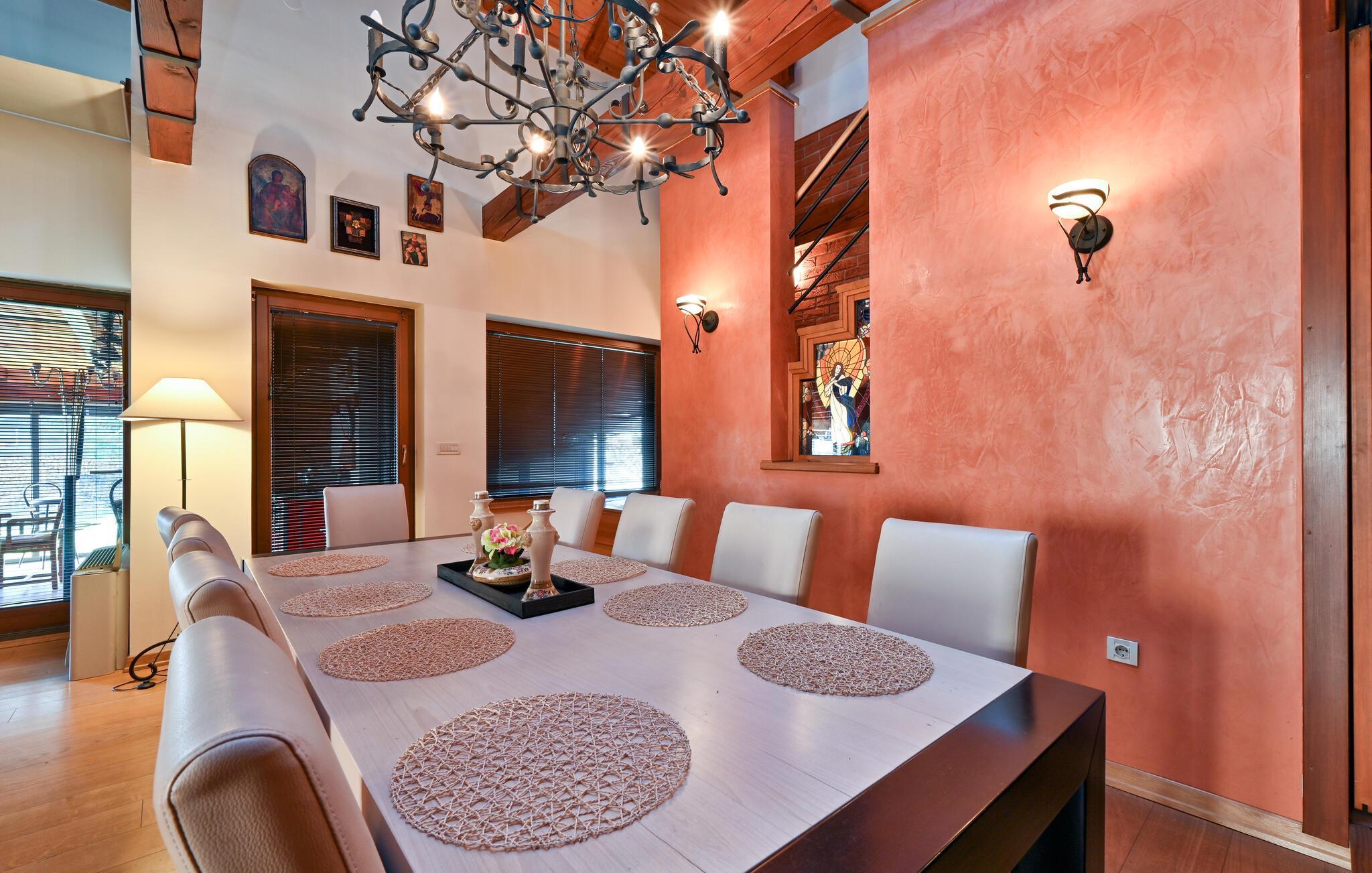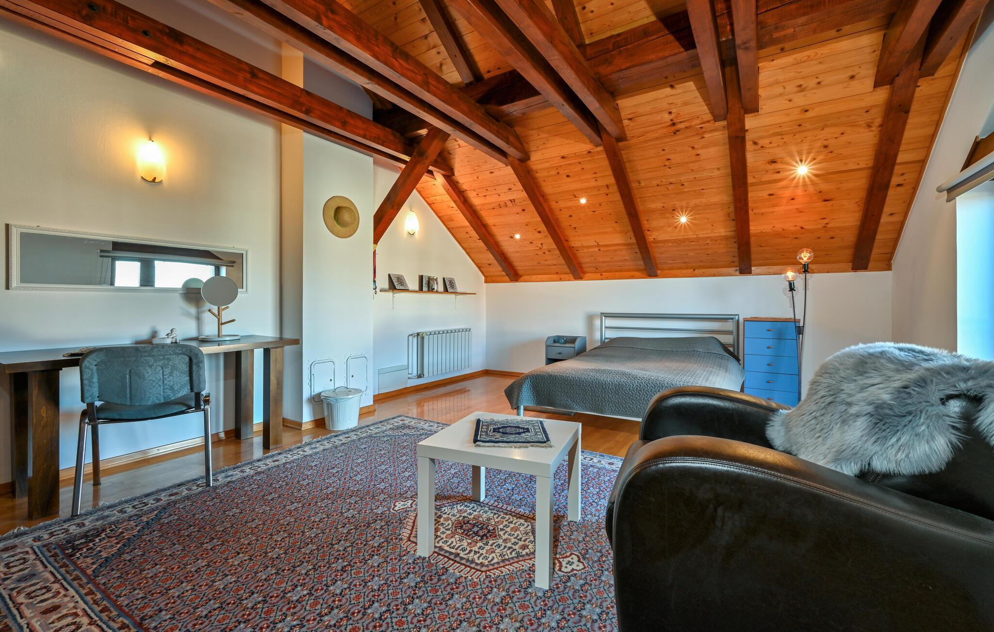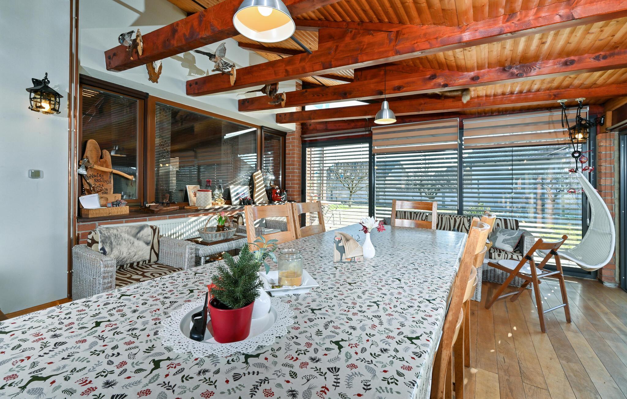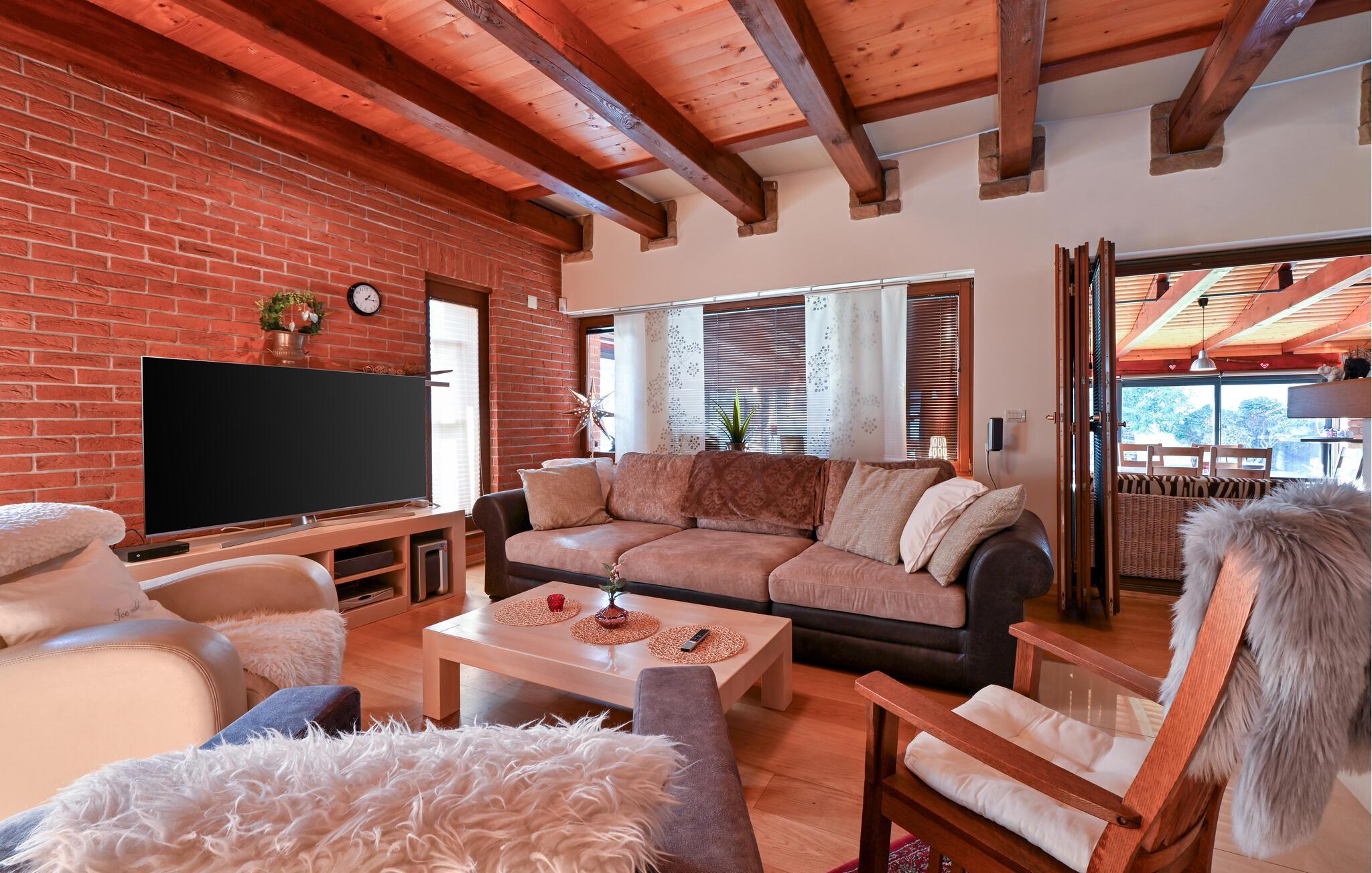 Træd indenfor og Lad jer betage af det hyggelige og stilfulde interiør i dette rummelige feriehus. Varme trælofter, stemningsfuld belysning og udsøgte møbler skaber en hyggelig atmosfære. Glæd jer til hyggelige måltider, Læn jer tilbage i spabadet eller saunaen, snak ved pejsen eller stream jeres yndlingsserie. Hold sjove spilleaftener eller fordyb jer i en god bog i et af de mange indbydende opholdssteder.