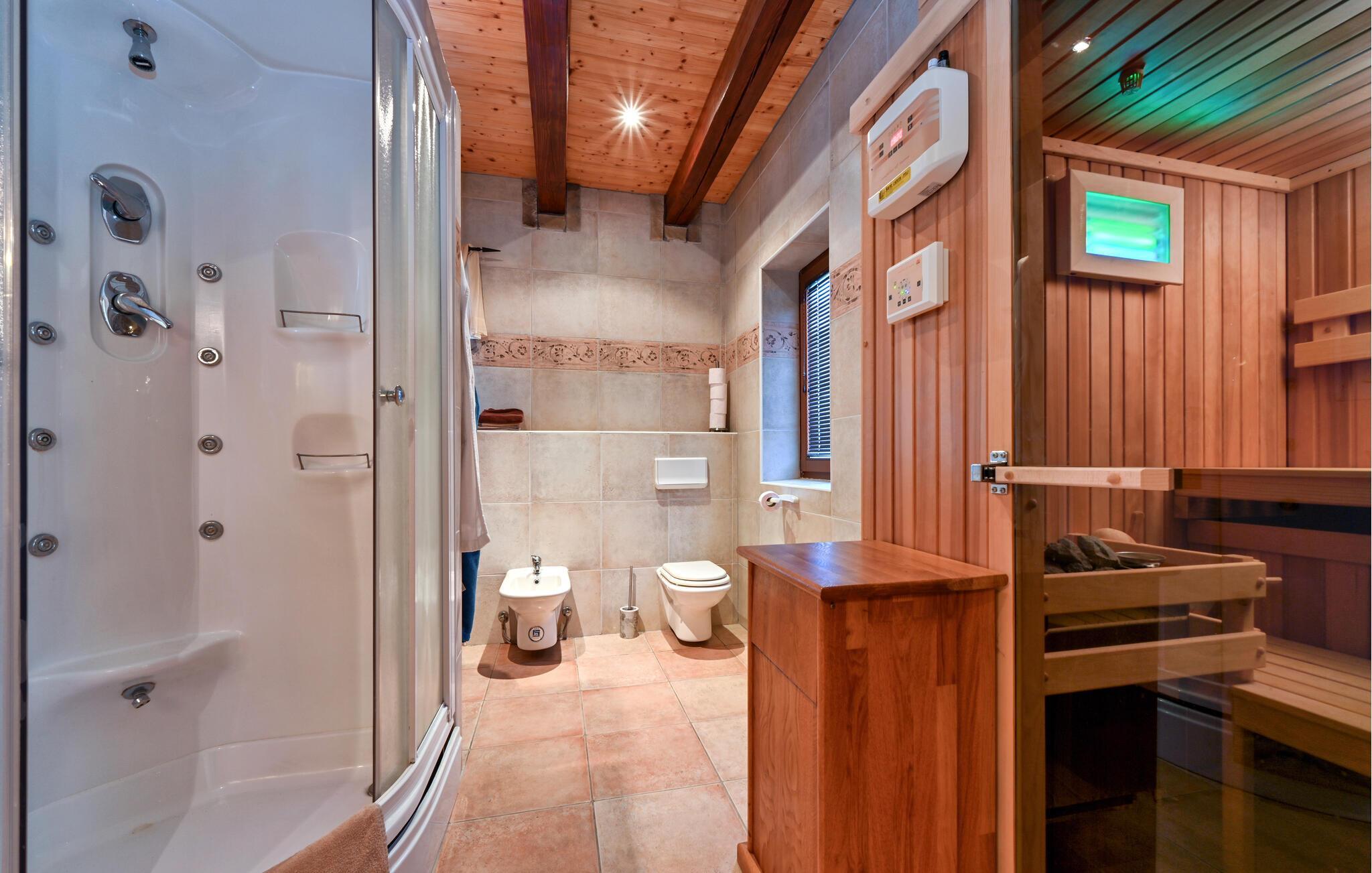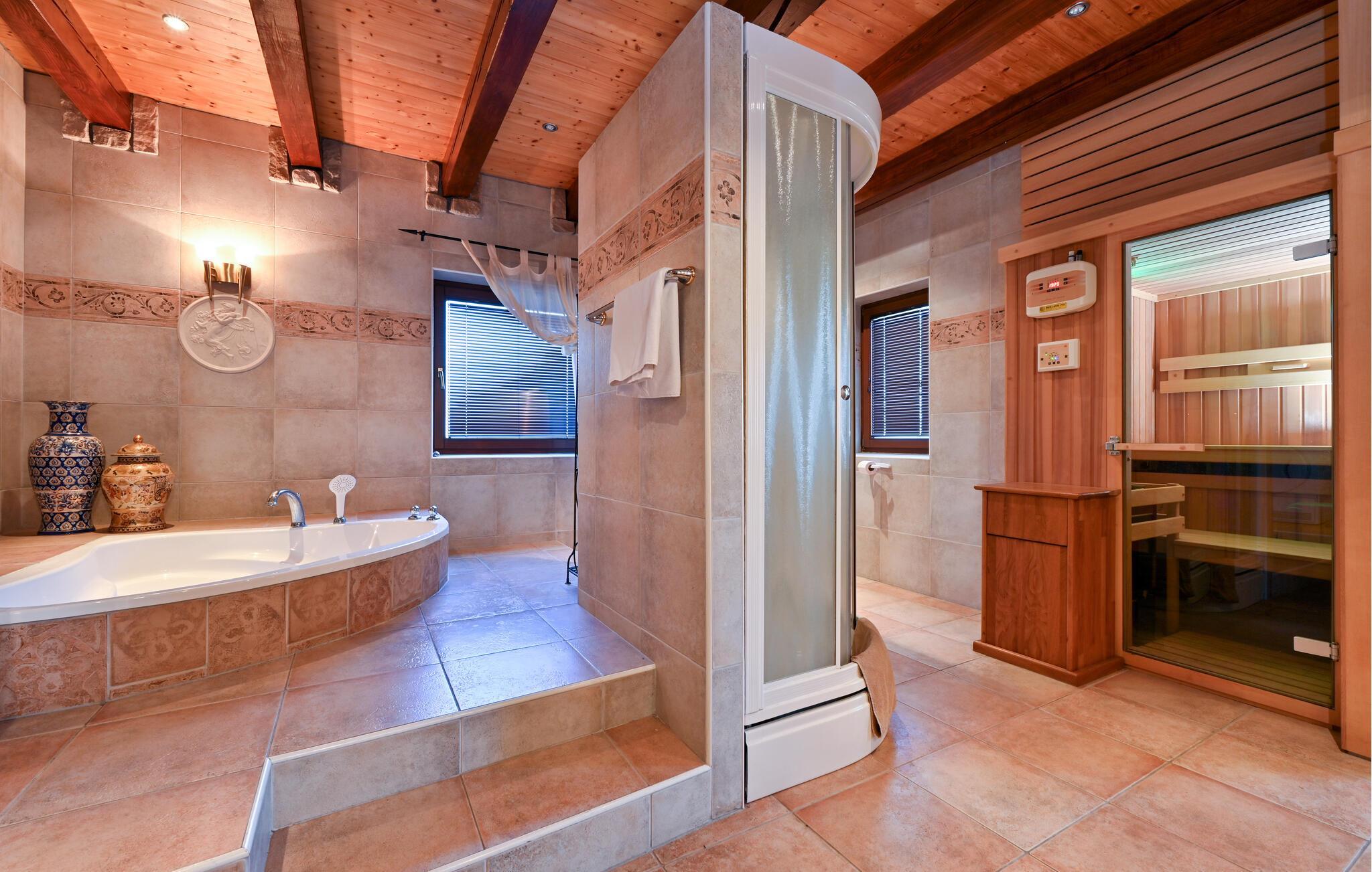 Nyd en behagelig ferie i dette rummelige feriehus med pool, spabad og sauna.