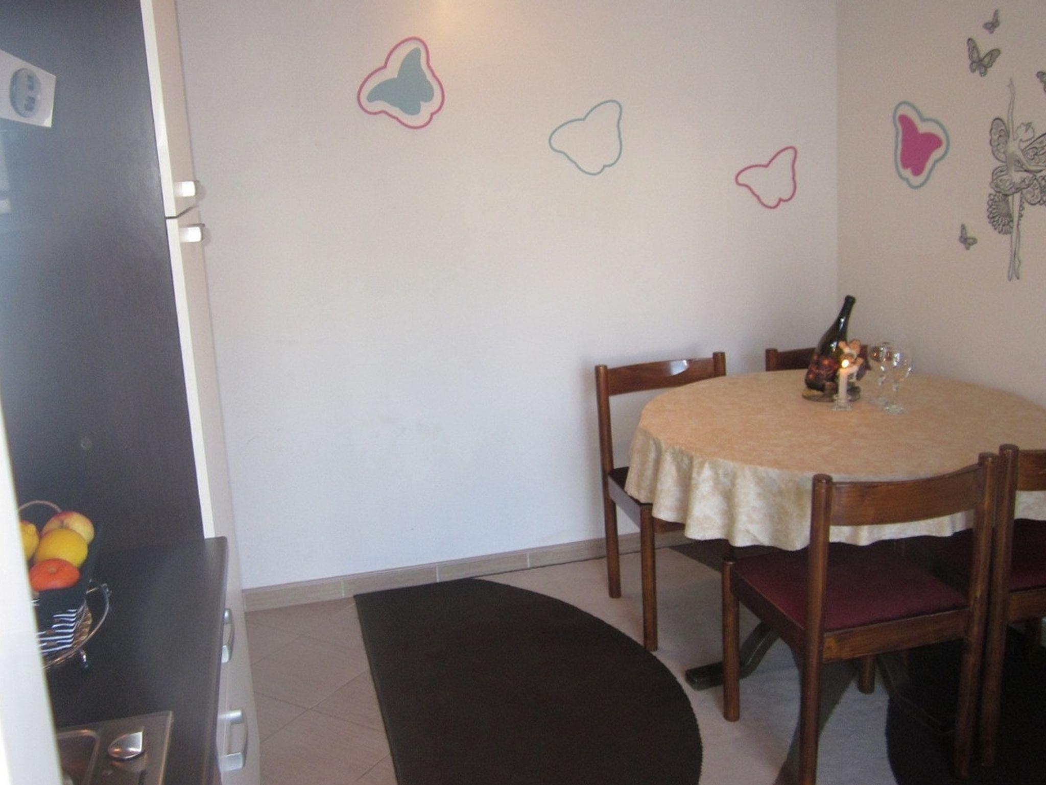 Ferienwohnung bietet Platz für 3 Gäste. Die Betten sind in Schlafzimmern, die es 1 gibt, innerhalb einer Gesamtfläche von 35m2, angeordnet. Die Gäste haben eine eigene Terrasse zur Verfügung, auf der sie in warmen Sommernächten genießen können. Das Apartment bietet Meerblick. IM PREIS INBEGRIFFEN: Kurtaxe, Endreinigung, Klimatisierung, Internet, Kinderbett, Bügeleisen, Bügelbrett, Föhn. VERBINDLICHE ZUSÄTZLICHE KOSTEN: Aufzahlung für Kurzaufenthalte (prozentualer Zuschlag pro Nächtigungsanzahl: 30% - 1, 20% - 2, 10% - 3). UNVERBINDLICHE ZUSÄTZLICHE KOSTEN: Wäschewaschen (14,00 € Waschen), Zusatzbett (30,00 € pro Nacht). Die Verfügbarkeit zusätzlicher Dienstleistungen in Ihrem reservierten Termin und die Preise derselben (falls nicht aufgeführt) müssen im Voraus überprüft werden. Zusätzliche Dienstleistungen die in der Zahlungsaufforderung nicht aufgeführt sind werden direkt beim Vermieter bezahlt, angenommen der Gast nutzt auch diese.