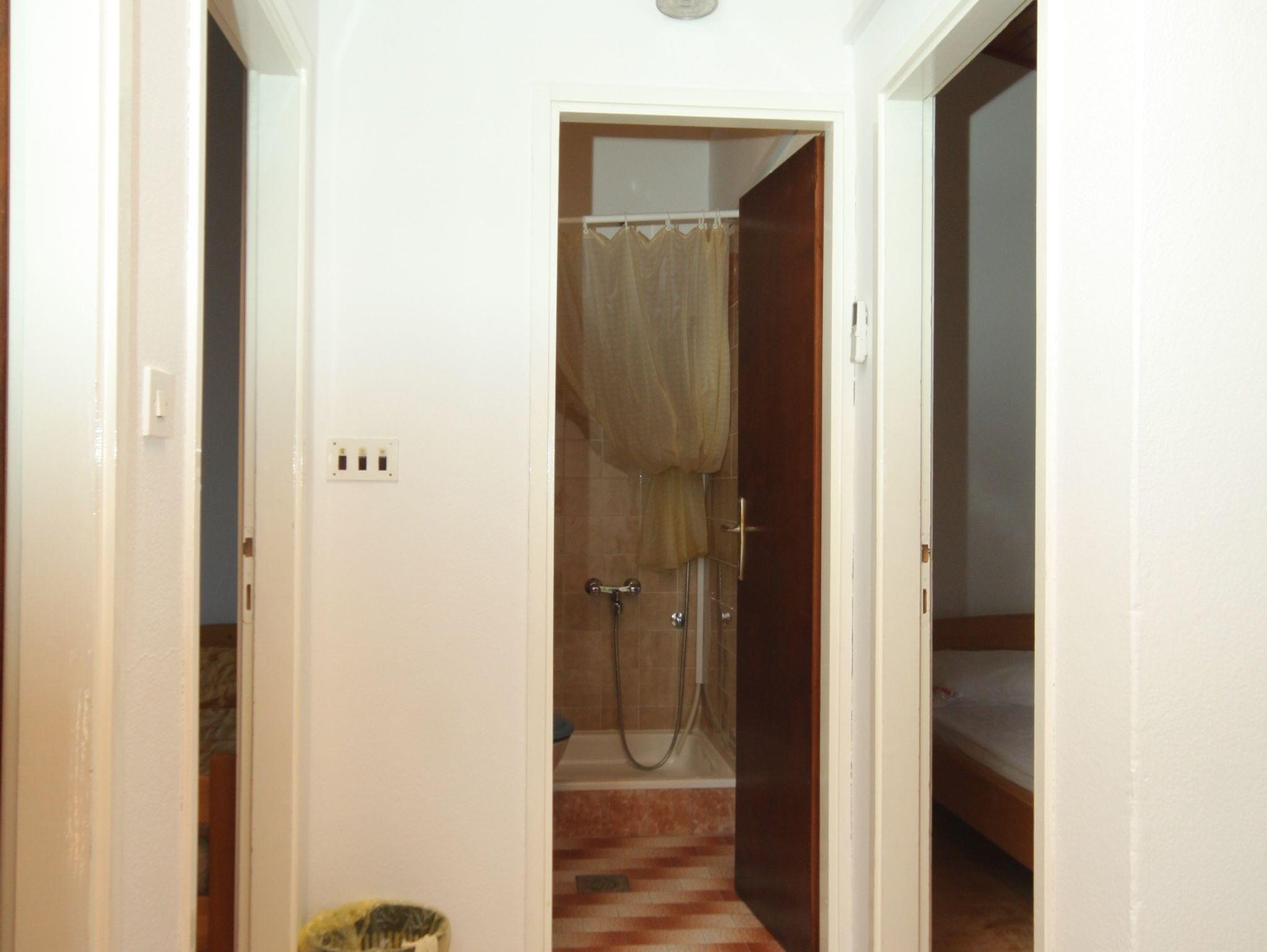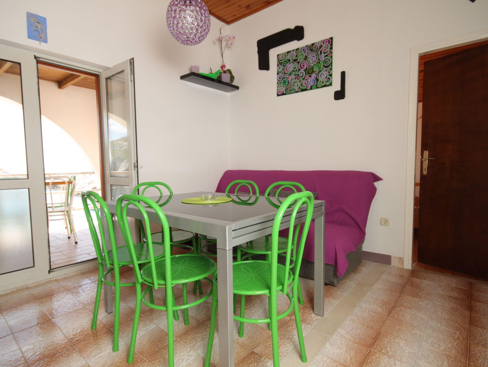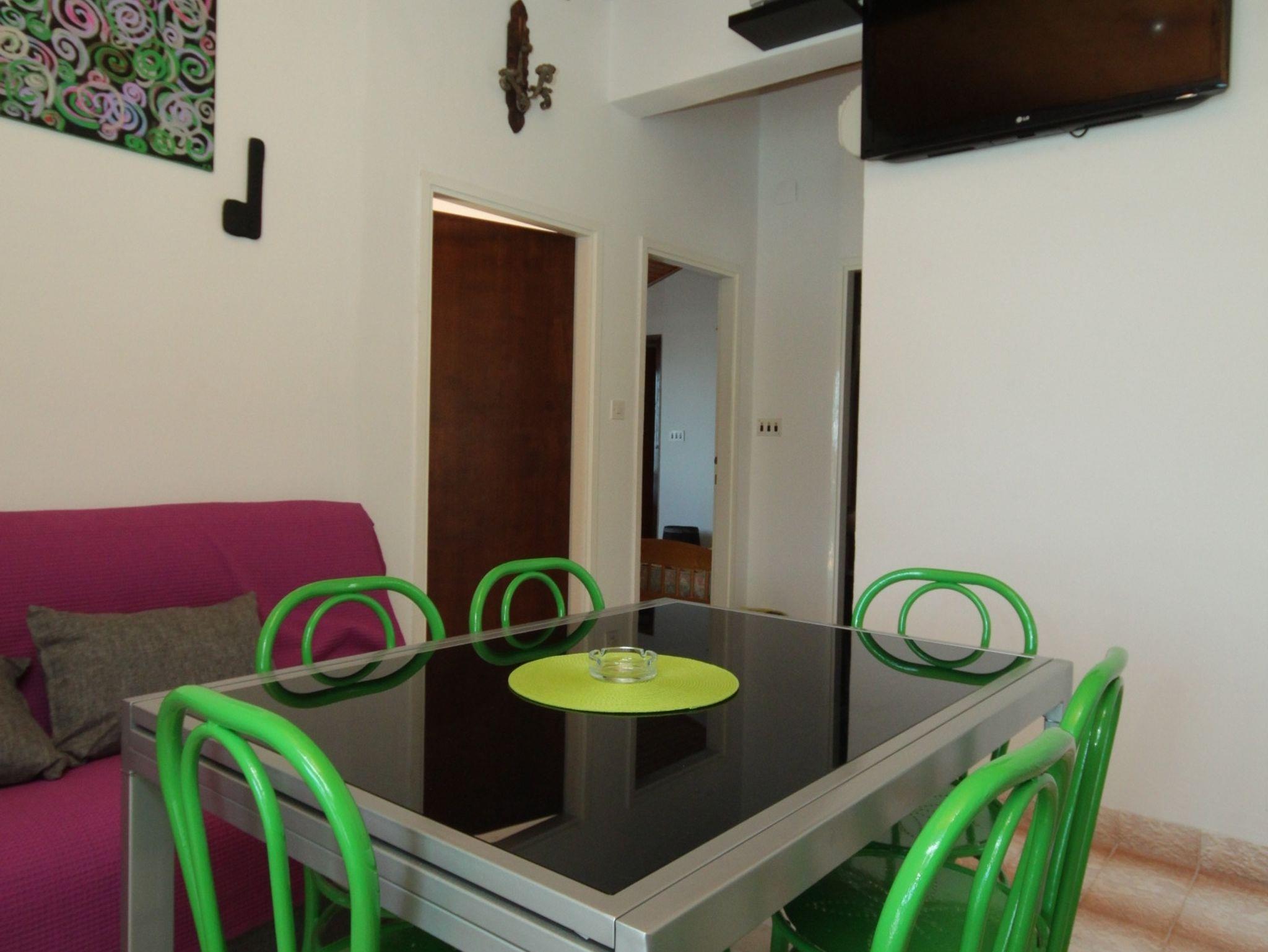 Ferienwohnung bietet Platz für 7 Gäste. Die Betten sind in Schlafzimmern, die es 3 gibt, und in Esszimmer, innerhalb einer Gesamtfläche von 50m2, angeordnet. Die Gäste haben eine eigene Terrasse zur Verfügung, auf der sie in warmen Sommernächten genießen können. Das Apartment bietet Meerblick. Es ist erlaubt, Speisen auf dem Gemeinschafts-Grill vorzubereiten. In der Unterkunftseinheit besteht die Möglichkeit des Mitbringens von Haustieren gegen Aufpreis. IM PREIS INBEGRIFFEN: Kurtaxe, Endreinigung, Klimatisierung, Parkplatz, Internet, Kinderbett, Bügeleisen, Bügelbrett, Föhn. VERBINDLICHE ZUSÄTZLICHE KOSTEN: Aufzahlung für Kurzaufenthalte (prozentualer Zuschlag pro Nächtigungsanzahl: 30% - 1, 20% - 2, 10% - 3). UNVERBINDLICHE ZUSÄTZLICHE KOSTEN: Wäschewaschen (7,00 € Waschen), Haustiere (5,00 € pro Nacht), Zusatzbett (12,00 € pro Nacht). Die Verfügbarkeit zusätzlicher Dienstleistungen in Ihrem reservierten Termin und die Preise derselben (falls nicht aufgeführt) müssen im Voraus überprüft werden. Zusätzliche Dienstleistungen die in der Zahlungsaufforderung nicht aufgeführt sind werden direkt beim Vermieter bezahlt, angenommen der Gast nutzt auch diese.