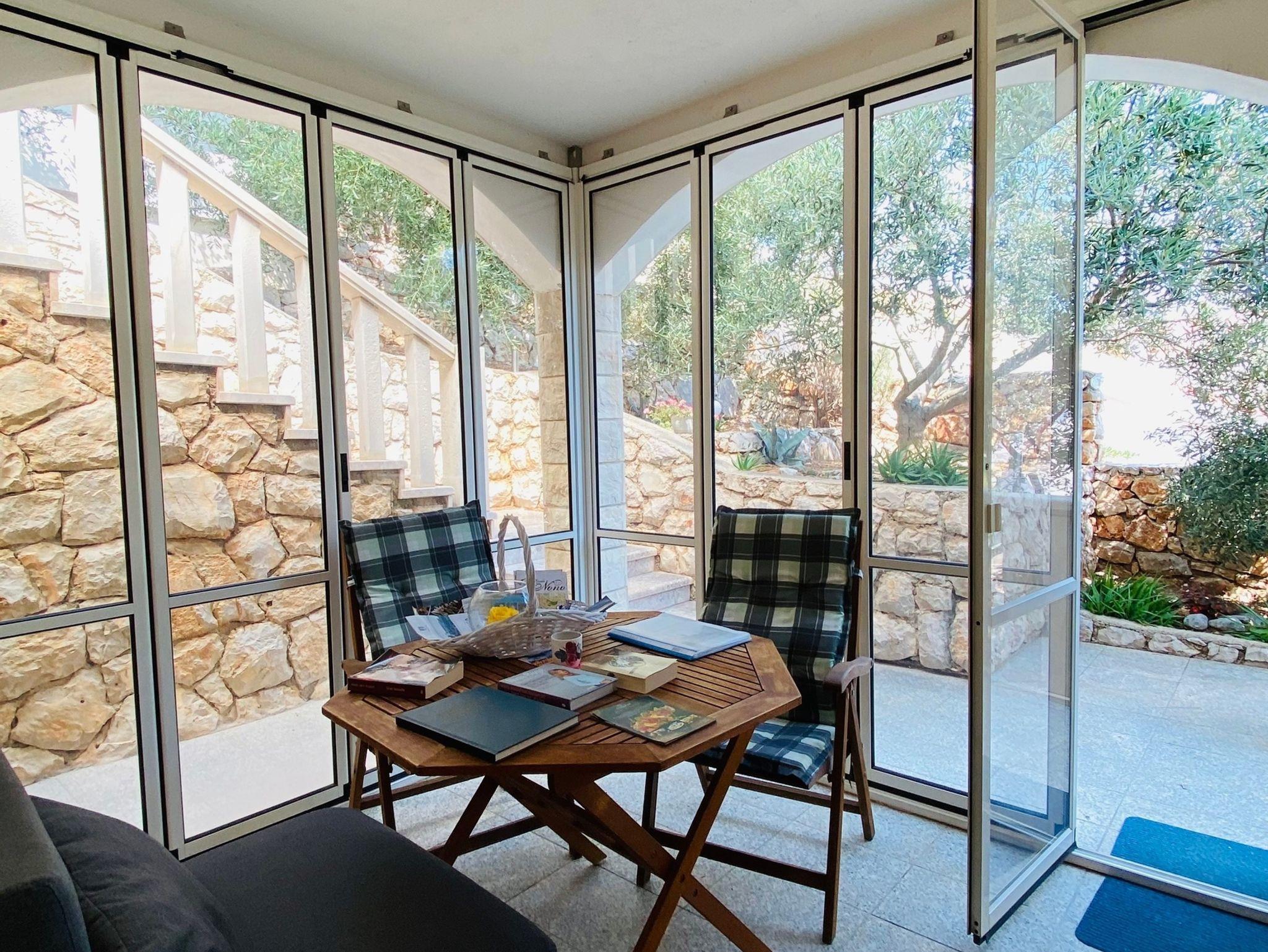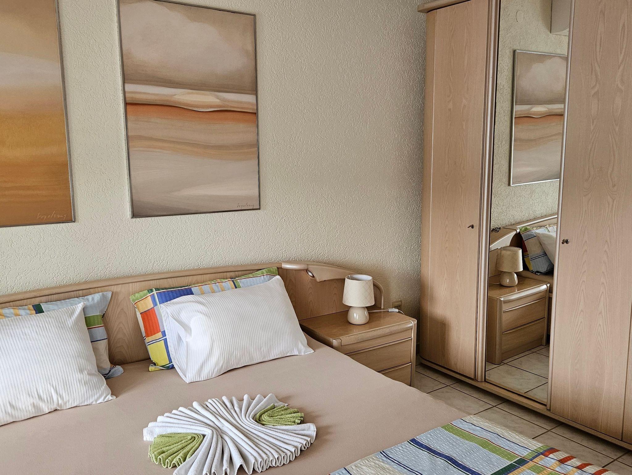 Ferienwohnung bietet Platz für 2 Gäste. Die Betten sind in Schlafzimmern, die es 1 gibt, innerhalb einer Gesamtfläche von 28m2, angeordnet. Die Gäste haben eine eigene Terrasse zur Verfügung, auf der sie in warmen Sommernächten genießen können. Das Apartment bietet Meerblick. Es ist erlaubt, Speisen auf dem Gemeinschafts-Grill vorzubereiten. Während ihres Aufenthalts können Gäste das gemeinsam zur Nutzung stehende Schwimmbad benutzen. In der Unterkunftseinheit besteht die Möglichkeit des Mitbringens von Haustieren, und die Dienstleistung ist im Preis der Unterkunft enthalten. IM PREIS INBEGRIFFEN: Kurtaxe, Endreinigung, Klimatisierung, Pool, Parkplatz, Internet, Wäschewaschen, Haustiere, Liegestühle, 1 Bett für Kinder (im Preis enthalten). Die Verfügbarkeit zusätzlicher Dienstleistungen in Ihrem reservierten Termin und die Preise derselben (falls nicht aufgeführt) müssen im Voraus überprüft werden. Zusätzliche Dienstleistungen die in der Zahlungsaufforderung nicht aufgeführt sind werden direkt beim Vermieter bezahlt, angenommen der Gast nutzt auch diese. Ermäßigung auf den Grundpreis: Gratistag 14=13 (bei einem Aufenthalt von 14 Tagen oder mehr erhalten Sie einen Gratistag für den Aufenthalt bis 31.12.26).
