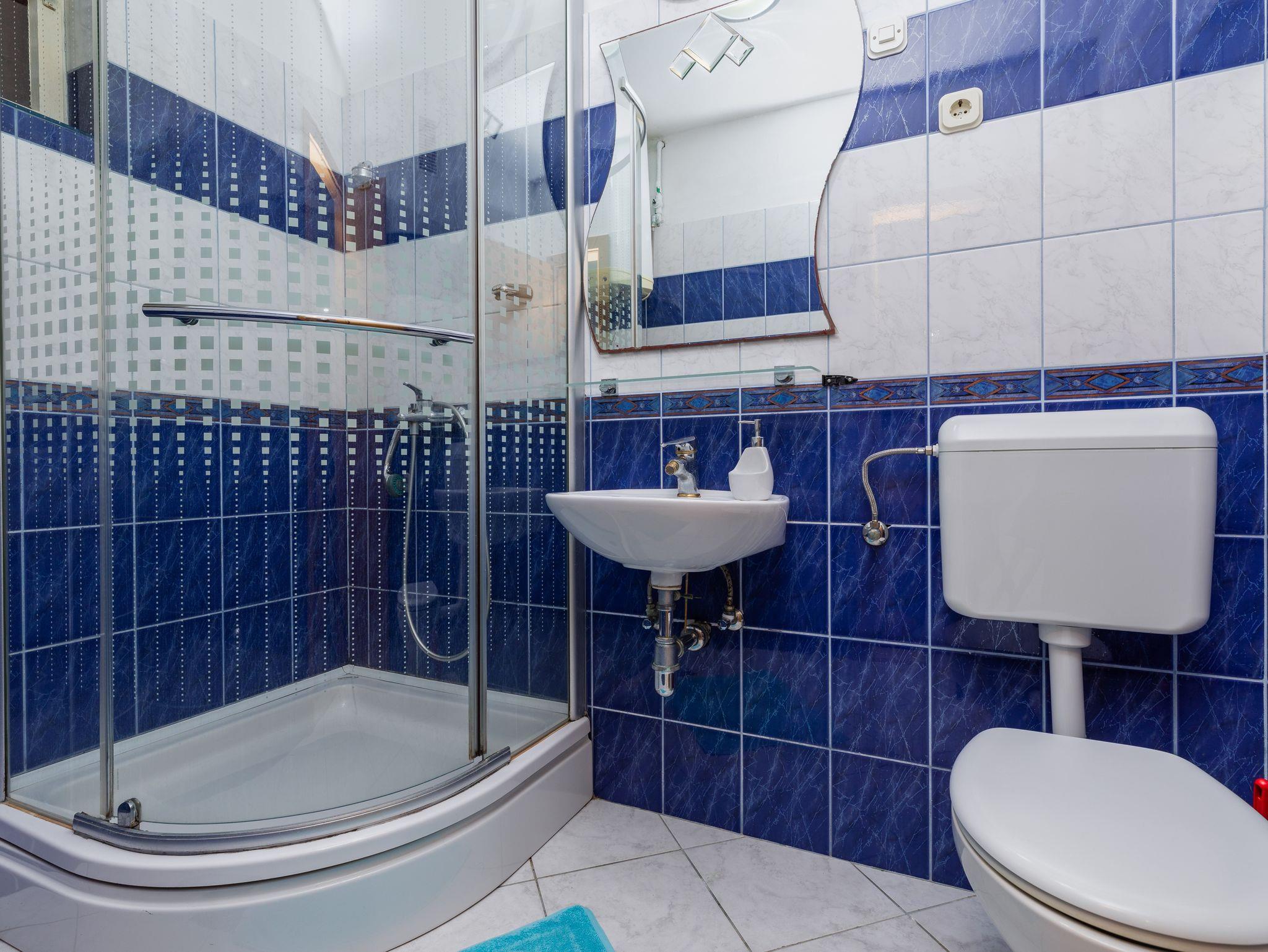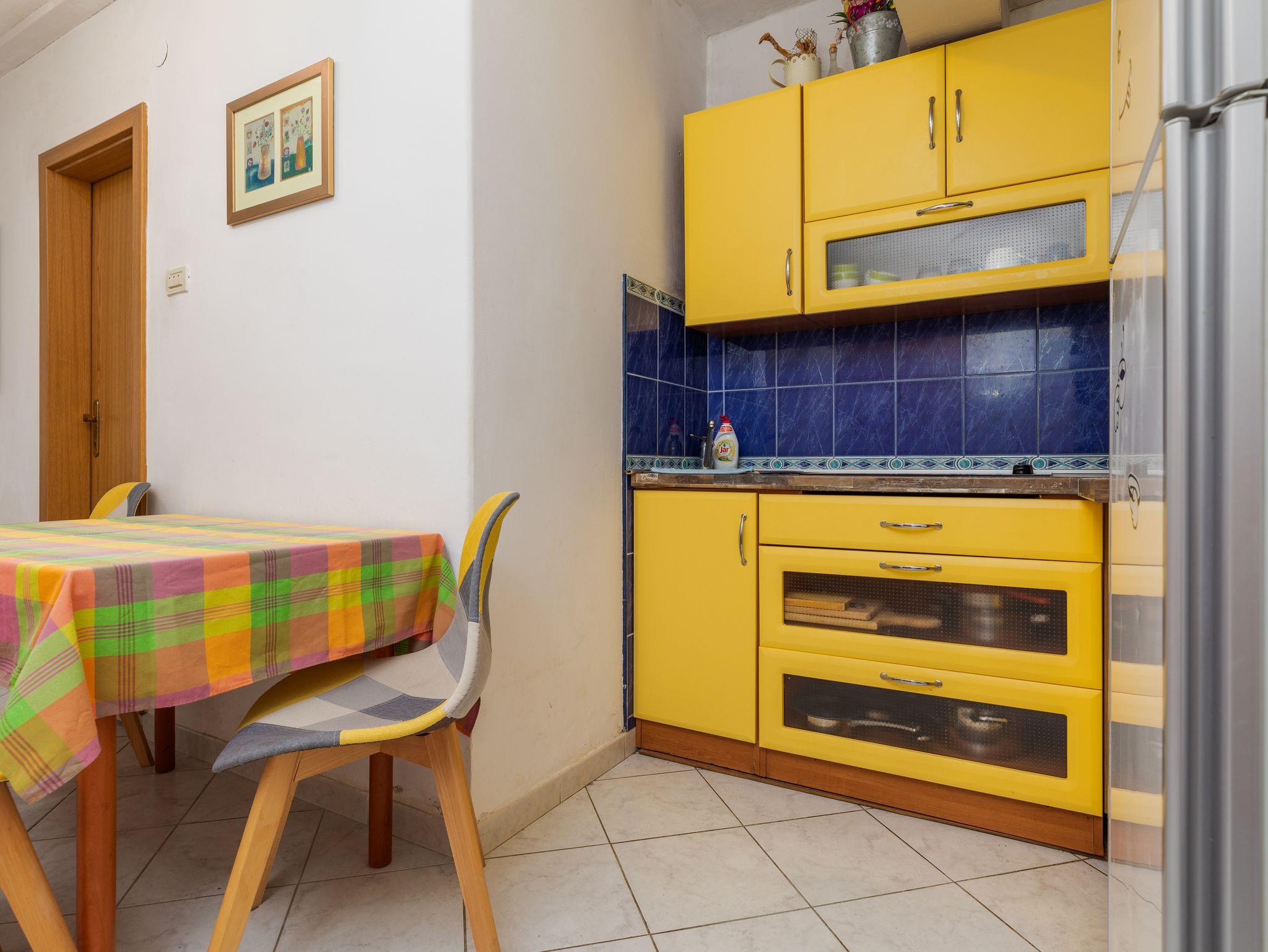 Ferienwohnung bietet Platz für 5 Gäste. Die Betten sind in Schlafzimmern, die es 2 gibt, innerhalb einer Gesamtfläche von 42m2, angeordnet. Die Gäste haben eine eigene Terrasse zur Verfügung, auf der sie in warmen Sommernächten genießen können. Das Apartment bietet Meerblick. Es ist erlaubt, Speisen auf dem Gemeinschafts-Grill vorzubereiten. In der Unterkunftseinheit besteht die Möglichkeit des Mitbringens von Haustieren gegen Aufpreis. IM PREIS INBEGRIFFEN: Kurtaxe, Endreinigung, Klimatisierung, Parkplatz, Internet, Kinderbett, tragbarer Grill. VERBINDLICHE ZUSÄTZLICHE KOSTEN: Aufzahlung für Kurzaufenthalte (prozentualer Zuschlag pro Nächtigungsanzahl: 30% - 1, 20% - 2, 10% - 3). UNVERBINDLICHE ZUSÄTZLICHE KOSTEN: Haustiere (5,00 € pro Nacht). Die Verfügbarkeit zusätzlicher Dienstleistungen in Ihrem reservierten Termin und die Preise derselben (falls nicht aufgeführt) müssen im Voraus überprüft werden. Zusätzliche Dienstleistungen die in der Zahlungsaufforderung nicht aufgeführt sind werden direkt beim Vermieter bezahlt, angenommen der Gast nutzt auch diese. Ermäßigung auf den Grundpreis: Gratistag 14=13 (bei einem Aufenthalt von 14 Tagen oder mehr erhalten Sie einen Gratistag für den Aufenthalt bis 31.12.26).