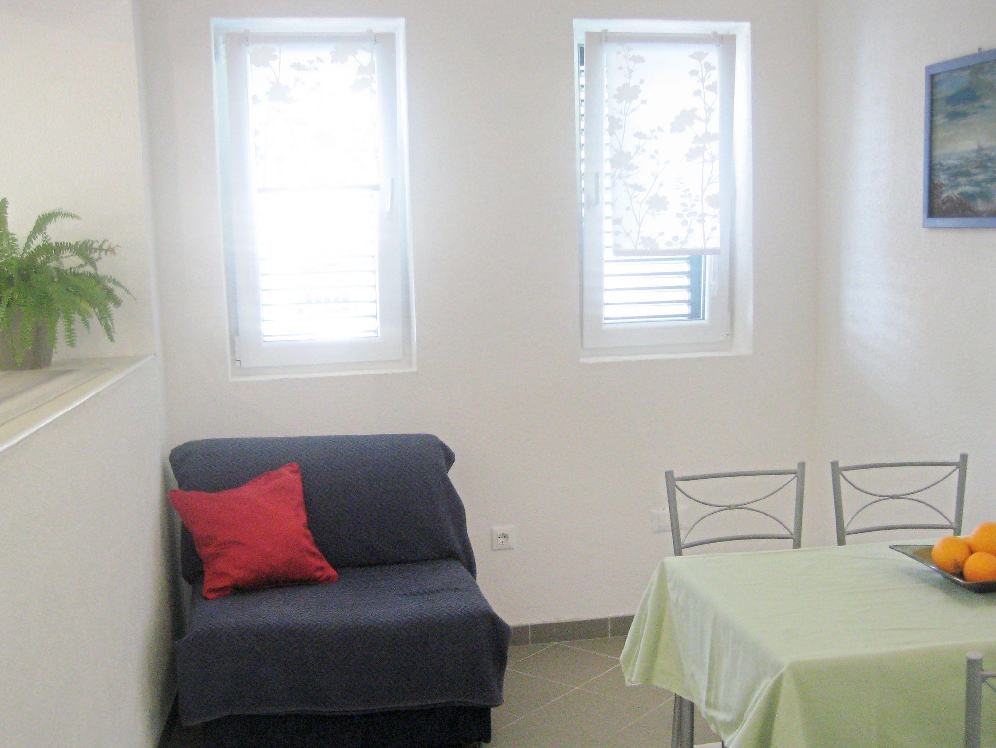 Studio bietet Platz für 4 Gäste. Die Betten sind in Schlafzimmern, die es 1 gibt, und in Wohnzimmer und Esszimmer, innerhalb einer Gesamtfläche von 26m2, angeordnet. Die Gäste haben eine eigene Terrasse zur Verfügung, auf der sie in warmen Sommernächten genießen können. Das Studio-Apartment bietet Meerblick. Es ist erlaubt, Speisen auf dem Gemeinschafts-Grill vorzubereiten. In der Unterkunftseinheit besteht die Möglichkeit des Mitbringens von Haustieren gegen Aufpreis. Unterkunftseinheit hat Räume, die von dem Rest der Einheit abgetrennt werden. IM PREIS INBEGRIFFEN: Kurtaxe, Endreinigung, Klimatisierung, Parkplatz, Internet, Kinderbett, tragbarer Grill. UNVERBINDLICHE ZUSÄTZLICHE KOSTEN: Haustiere (5,00 € pro Nacht). Die Verfügbarkeit zusätzlicher Dienstleistungen in Ihrem reservierten Termin und die Preise derselben (falls nicht aufgeführt) müssen im Voraus überprüft werden. Zusätzliche Dienstleistungen die in der Zahlungsaufforderung nicht aufgeführt sind werden direkt beim Vermieter bezahlt, angenommen der Gast nutzt auch diese. Ermäßigung auf den Grundpreis: Gratistag 14=13 (bei einem Aufenthalt von 14 Tagen oder mehr erhalten Sie einen Gratistag für den Aufenthalt bis 31.12.26).