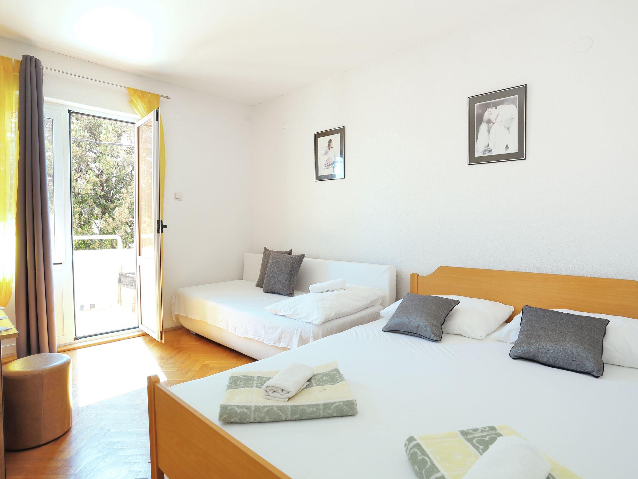 Ferienwohnung bietet Platz für 5 Gäste. Die Betten sind in Schlafzimmern, die es 2 gibt, innerhalb einer Gesamtfläche von 39m2, angeordnet. Die Gäste haben einen eigenen Balkon zur Verfügung, auf der sie in warmen Sommernächten genießen können. Das Apartment bietet Meerblick. Es ist erlaubt, Speisen auf dem Gemeinschafts-Grill vorzubereiten. IM PREIS INBEGRIFFEN: Kurtaxe, Endreinigung, Klimatisierung, Parkplatz, Internet, Föhn. VERBINDLICHE ZUSÄTZLICHE KOSTEN: Aufzahlung für Kurzaufenthalte (prozentualer Zuschlag pro Nächtigungsanzahl: 30% - 1, 20% - 2, 10% - 3). Die Verfügbarkeit zusätzlicher Dienstleistungen in Ihrem reservierten Termin und die Preise derselben (falls nicht aufgeführt) müssen im Voraus überprüft werden. Zusätzliche Dienstleistungen die in der Zahlungsaufforderung nicht aufgeführt sind werden direkt beim Vermieter bezahlt, angenommen der Gast nutzt auch diese. Ermäßigung auf den Grundpreis: Gratistag 14=13 (bei einem Aufenthalt von 14 Tagen oder mehr erhalten Sie einen Gratistag für den Aufenthalt bis 31.12.26).