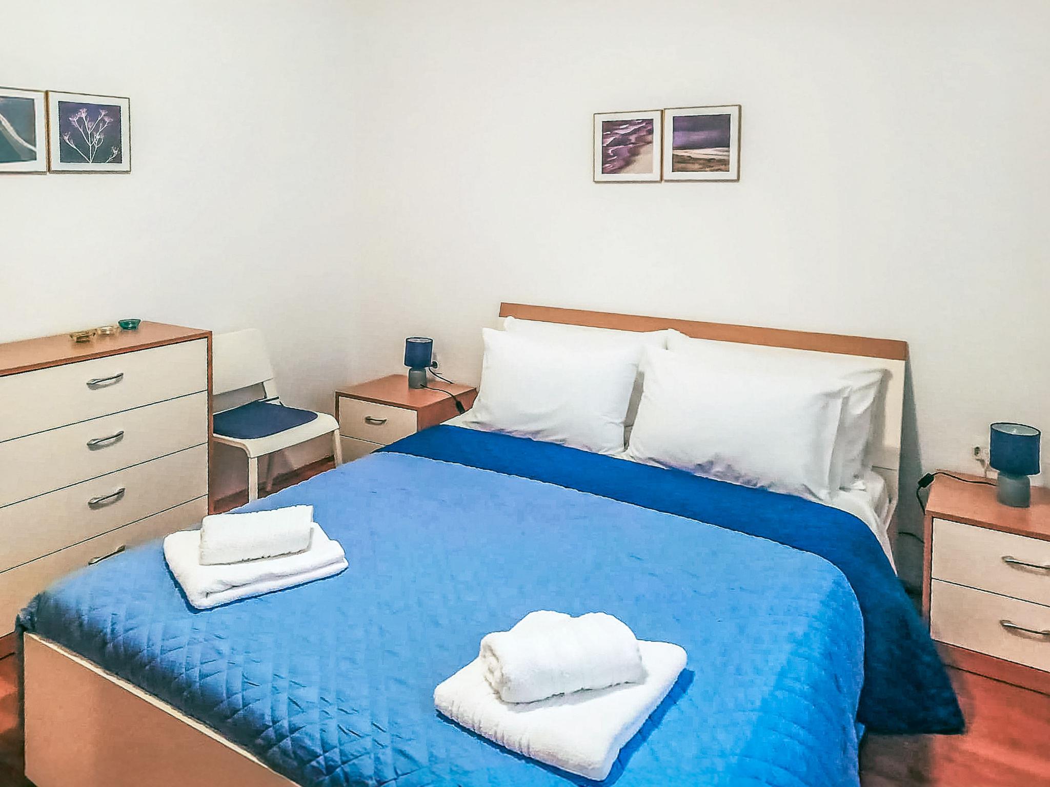 3-room apartment 140 m2 on 1st floor. Beautiful and tasteful furnishings: living/dining room with 1 sofabed (150 cm, length 200 cm), satellite TV and air conditioning. Exit to the balcony. 2 rooms, each room with 1 french bed (160 cm, length 200 cm). 1 room with 1 french bed (140 cm, length 200 cm), shower/WC. Open kitchen (oven, dishwasher, 4 ceramic glass hob hotplates, freezer, electric coffee machine). Shower/WC. Terrace furniture. Beautiful view of the sea.