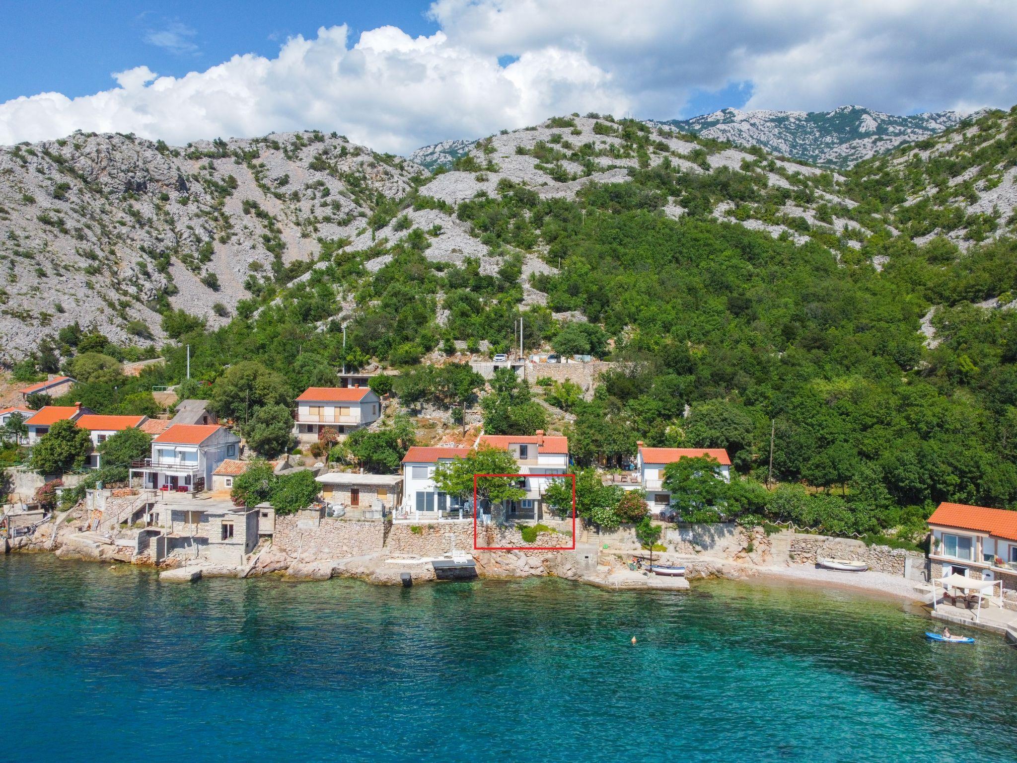 Josinovac 10 km from Jablanac: 3-family house. In a quiet, sunny position, 15 m from the sea, direct access to the beach. In the house: internet access. Steep, narrow motor access to 50 m from the house. Stepped path (105 steps) to the house. Parking at 50 m. Shop 25 km, restaurant 25 km, bus stop 2.8 km, pebble beach 15 m, concrete beach 10 m. The tap water has no drinking water quality.