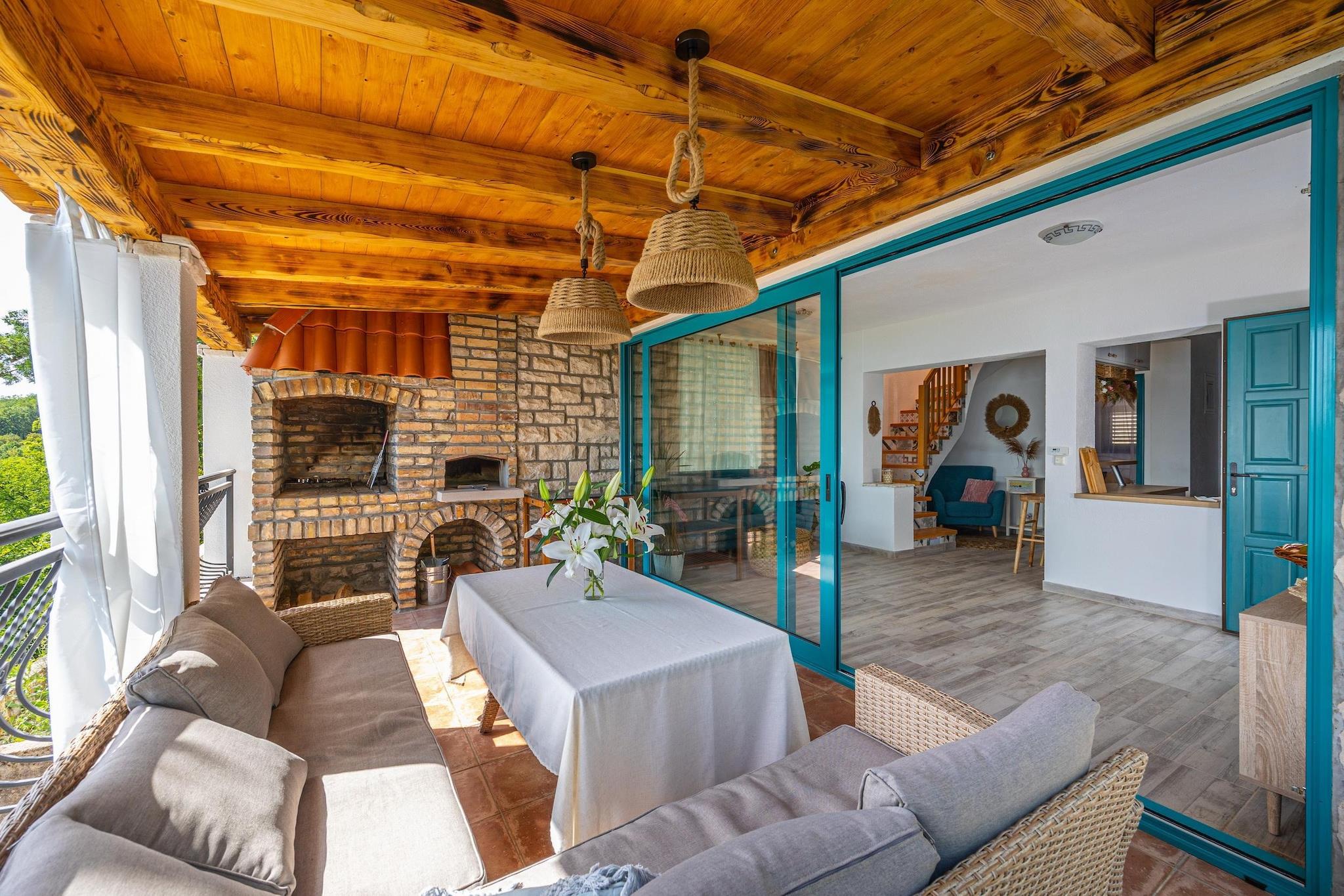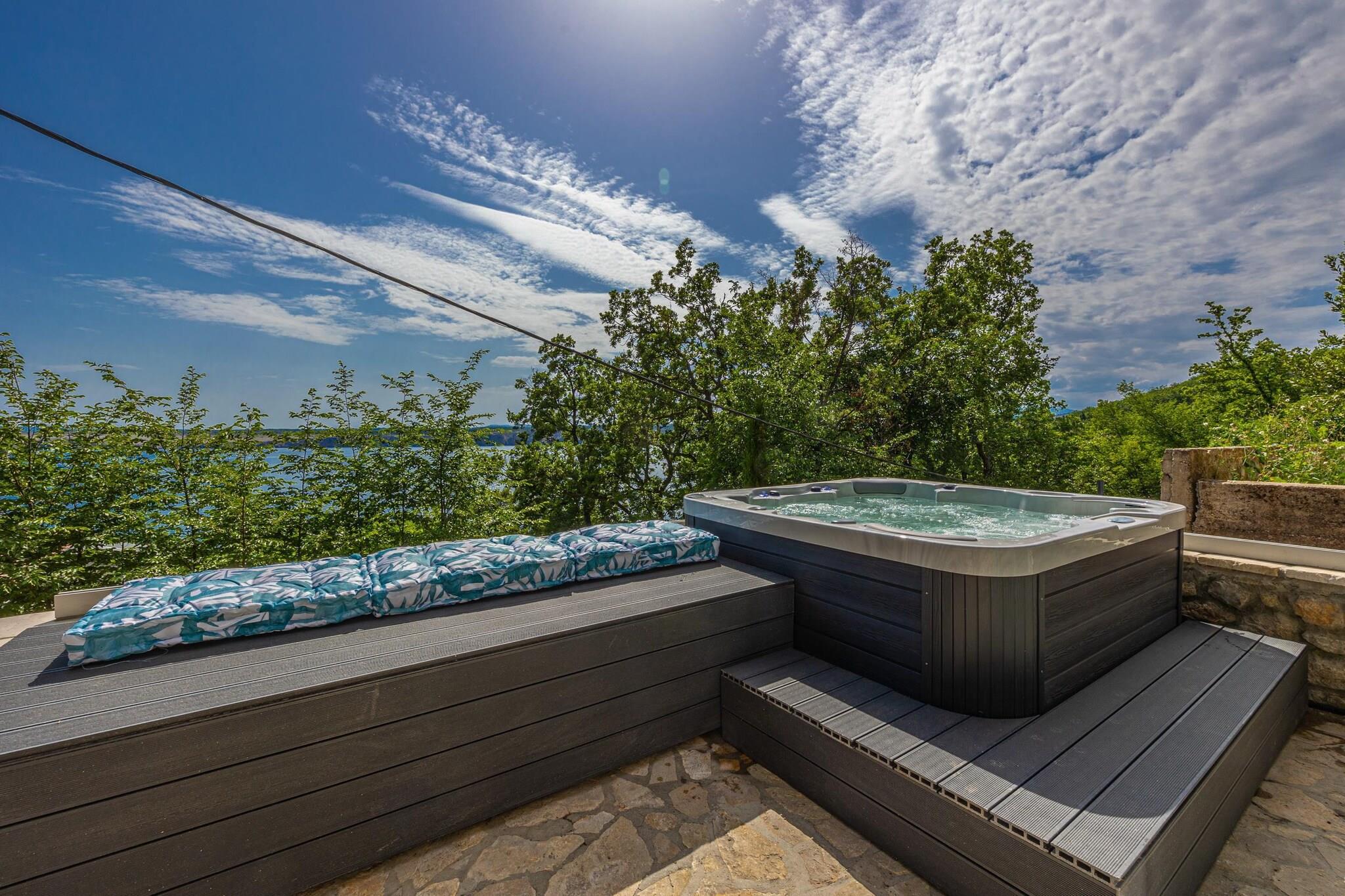 Stueetage: (Stue(Fjernsyn(parabol), sofahjørne), Køkken(spisebord, elkedel, brødrister, komfur, ovn, mikrobølgeovn, opvaskemaskine , køle-fryseskab), badeværelse(bruser, håndvask, toilet), terrasse(privat, indhegnet)) På 1. etage: (soveværelse(dobbeltseng), soveværelse(dobbeltseng), soveværelse(dobbeltseng), badeværelse(bruser, håndvask, toilet), badeværelse(bruser, håndvask, toilet), terrasse(privat)) Bubble bath, sauna(privat), varme, klimaanlæg, havemøbler, grill, strygebræt, loungemøbler