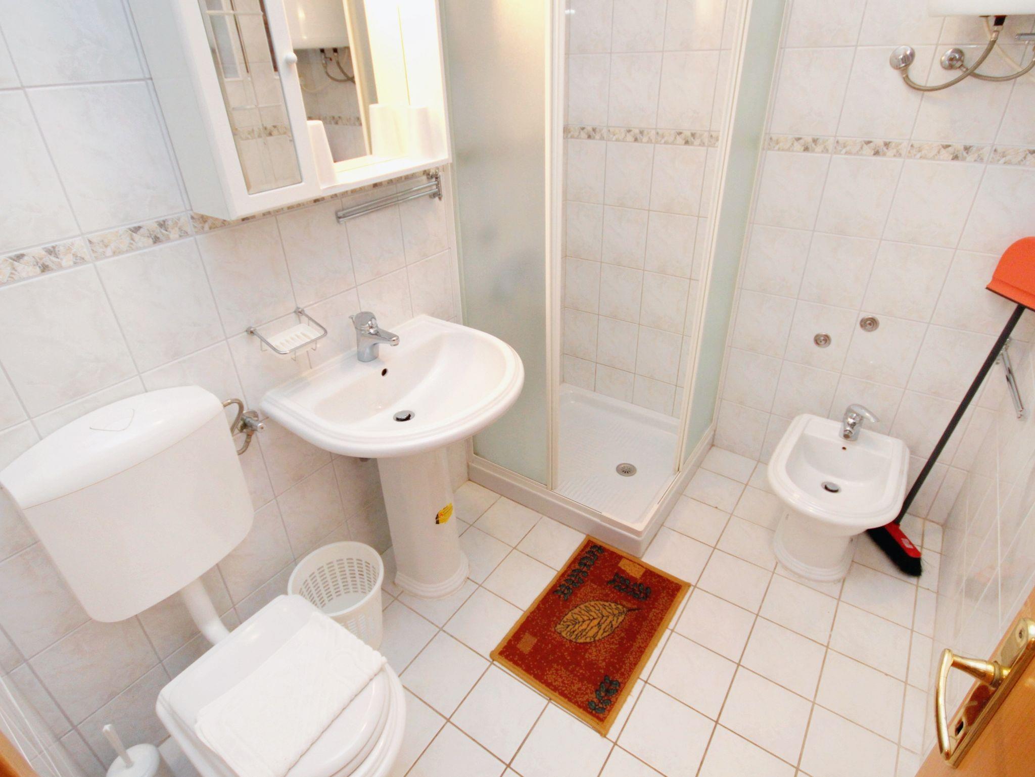 Ferienwohnung bietet Platz für 5 Gäste. Die Betten sind in Schlafzimmern, die es 1 gibt, und in Esszimmer, innerhalb einer Gesamtfläche von 57m2, angeordnet. Die Gäste haben eine eigene Terrasse zur Verfügung, auf der sie in warmen Sommernächten genießen können. Das Apartment bietet Meerblick. Es ist erlaubt, Speisen auf dem Gemeinschafts-Grill vorzubereiten. Während ihres Aufenthalts können Gäste das gemeinsam zur Nutzung stehende Schwimmbad benutzen. IM PREIS INBEGRIFFEN: Endreinigung, Pool, Parkplatz, Internet, Kinderbett, Bügeleisen, Bügelbrett, Föhn. VERBINDLICHE ZUSÄTZLICHE KOSTEN: Kurtaxe (Erwachsene 0,93 € - 2,50 € Nacht/Person, Kinderermäßigung 12 - 17 Jahre). UNVERBINDLICHE ZUSÄTZLICHE KOSTEN: Klimatisierung (5,00 € pro Nacht), Wäschewaschen (5,00 € Waschen). Die Verfügbarkeit zusätzlicher Dienstleistungen in Ihrem reservierten Termin und die Preise derselben (falls nicht aufgeführt) müssen im Voraus überprüft werden. Zusätzliche Dienstleistungen die in der Zahlungsaufforderung nicht aufgeführt sind werden direkt beim Vermieter bezahlt, angenommen der Gast nutzt auch diese. Ermäßigung auf den Grundpreis: Gratistag 21=19 (bei einem Aufenthalt von 21 Tagen oder mehr erhalten Sie 2 Gratistage für den Aufenthalt bis 31.12.26).