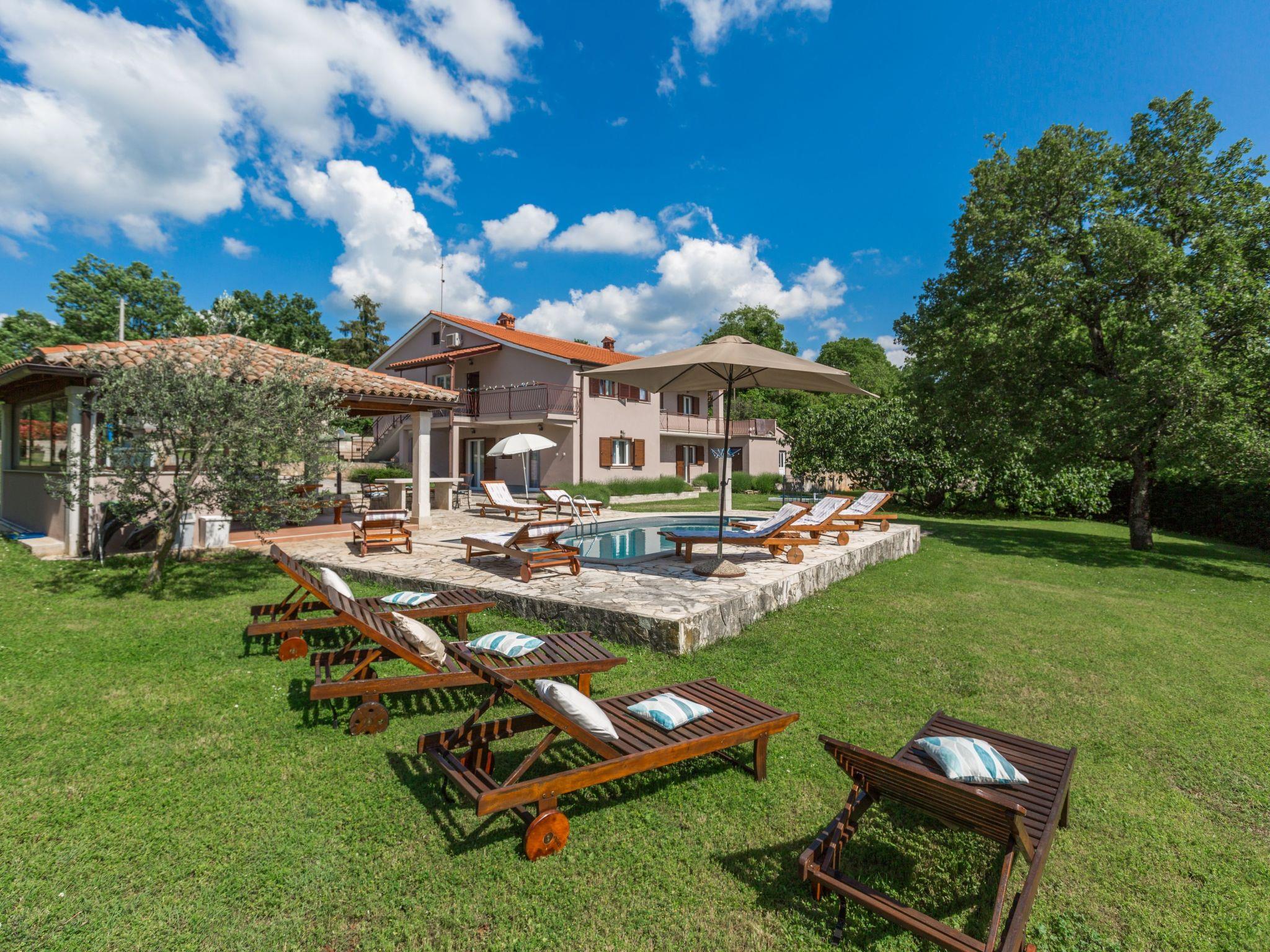 Holiday house Morena with pool is located in the small village of Butori in the green Istrian inland, 2km from the town of Tinjan and 15km from Porec and its beaches. The semi-detached house is situated on its own 3800m2 plot of land with paved lawn and offers its guests exclusive use of parking for several vehicles, private 28m2 pool with sun loungers, shower, covered summer kitchen with dining table and a barbecue fireplace. There is also a table tennis, swing and badminton court. The landlord lives next door in a separate part of the house, which has 160m2 of living space on two floors and consists of a ground floor flat for 4-5 people and a separate double bedroom with its own shower. The flat on the ground floor has a living room with open fireplace, fully equipped kitchen with dining area, 2 bedrooms and bathroom with shower/WC.The separate bedroom with double bed and private bathroom with shower/WC is also on the ground floor by the pool.The second flat for 4-5 persons is located on the 1st floor and offers a living room with fully equipped kitchen and dining area, two bedrooms and bathroom with shower/WC and washing machine. All rooms are air-conditioned and wifi is available and the holiday home will be completely renovated in 2023!