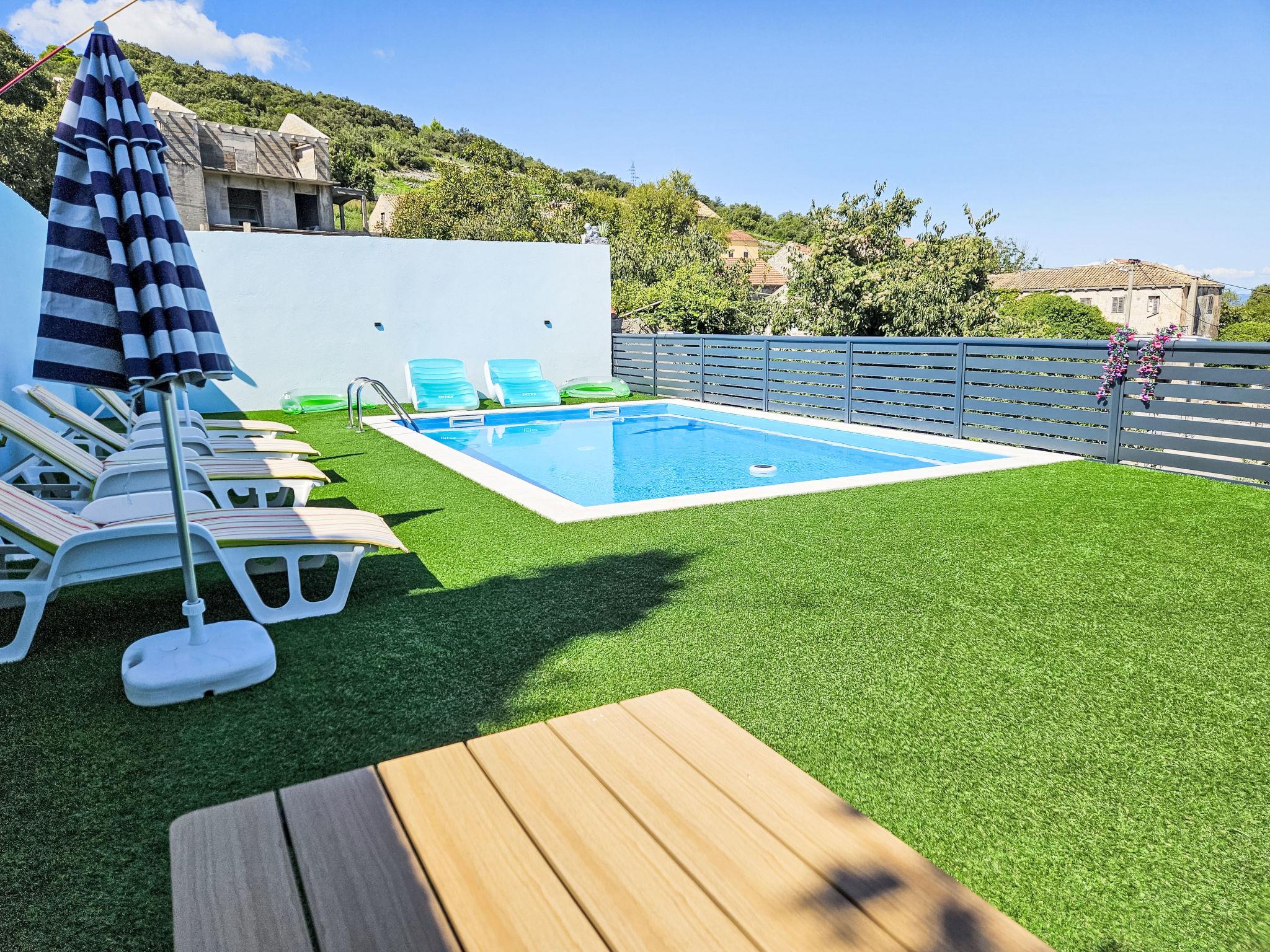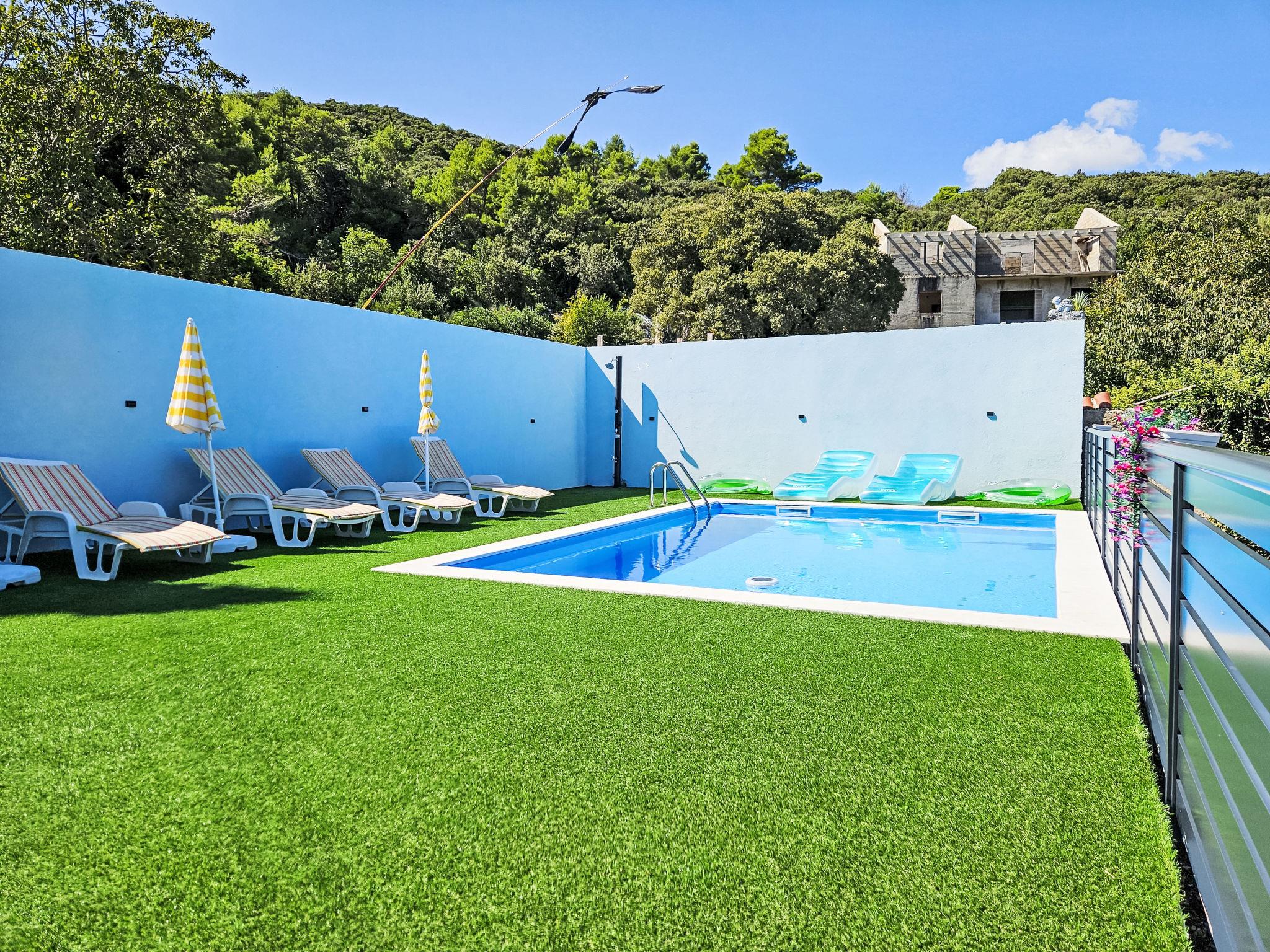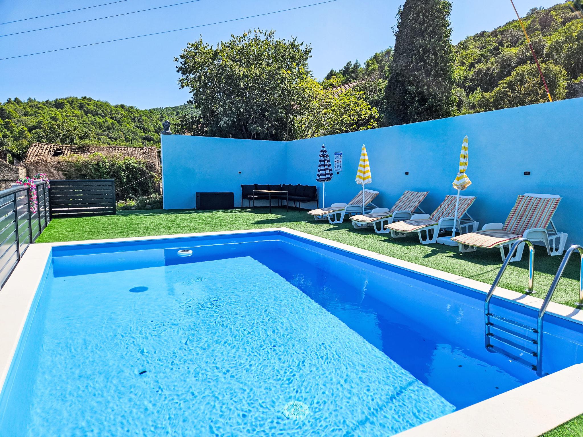 Terraced house "Sunrise", 2 storeys, renovated in 2024. In the hamlet Popova Luka 3.8 km from the centre of Drace, 3.8 km from the sea, 3.8 km from the beach, in a cul-de-sac. Private: swimming pool angular (6 x 4 m, seasonal availability: 01.May. - 14.Oct.). Outdoor shower, pool maintenance by the owner/gardener. In the house: internet access, washing machine, tumble dryer. Available: bicycles (2). Parking (for 2 cars) at the house. Shop 3.8 km, restaurant 3.8 km, café 3.8 km, bus stop 1.6 km, pebble beach 3.8 km. On request: airport transfer to the holiday accommodation.