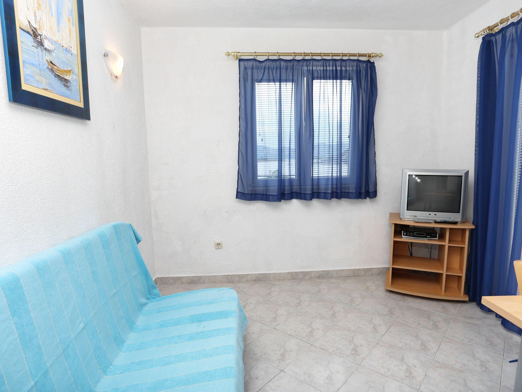 Ferienwohnung bietet Platz für 4 Gäste. Die Betten sind in Schlafzimmern, die es 1 gibt, und in Wohnzimmer, innerhalb einer Gesamtfläche von 31m2, angeordnet. Die Gäste haben eine eigene Terrasse zur Verfügung, auf der sie in warmen Sommernächten genießen können. Das Apartment bietet Meerblick. Es ist erlaubt, Speisen auf dem Gemeinschafts-Grill vorzubereiten. IM PREIS INBEGRIFFEN: Kurtaxe, Endreinigung, Klimatisierung, Parkplatz, Internet, Kinderbett, Bügeleisen, Bügelbrett, Föhn. VERBINDLICHE ZUSÄTZLICHE KOSTEN: Aufzahlung für Kurzaufenthalte (prozentualer Zuschlag pro Nächtigungsanzahl: 30% - 1, 20% - 2, 10% - 3). UNVERBINDLICHE ZUSÄTZLICHE KOSTEN: Wäschewaschen (5,00 € Waschen). Die Verfügbarkeit zusätzlicher Dienstleistungen in Ihrem reservierten Termin und die Preise derselben (falls nicht aufgeführt) müssen im Voraus überprüft werden. Zusätzliche Dienstleistungen die in der Zahlungsaufforderung nicht aufgeführt sind werden direkt beim Vermieter bezahlt, angenommen der Gast nutzt auch diese.