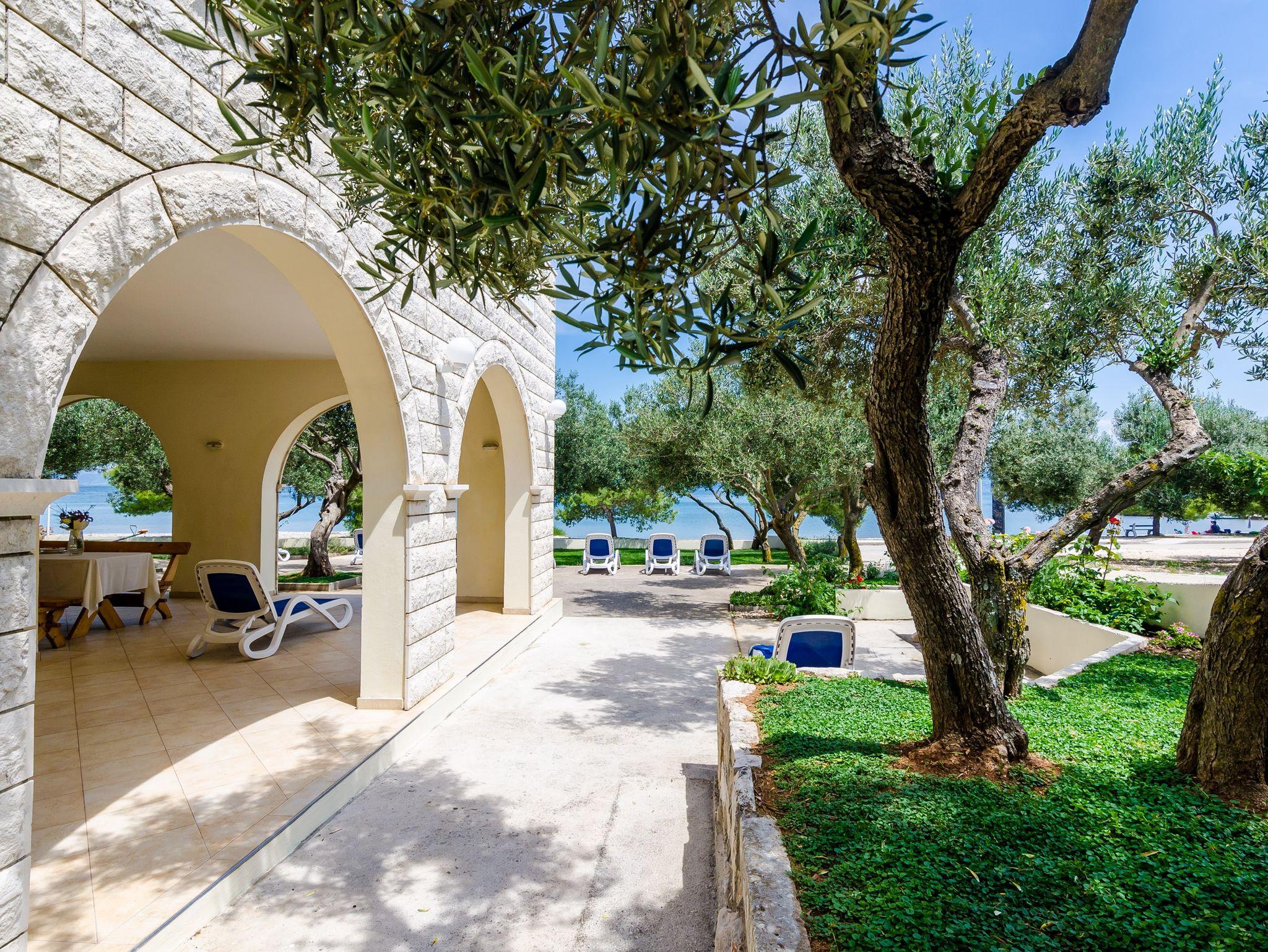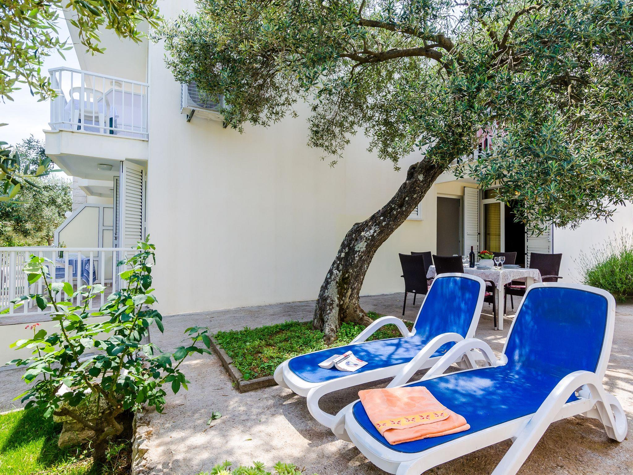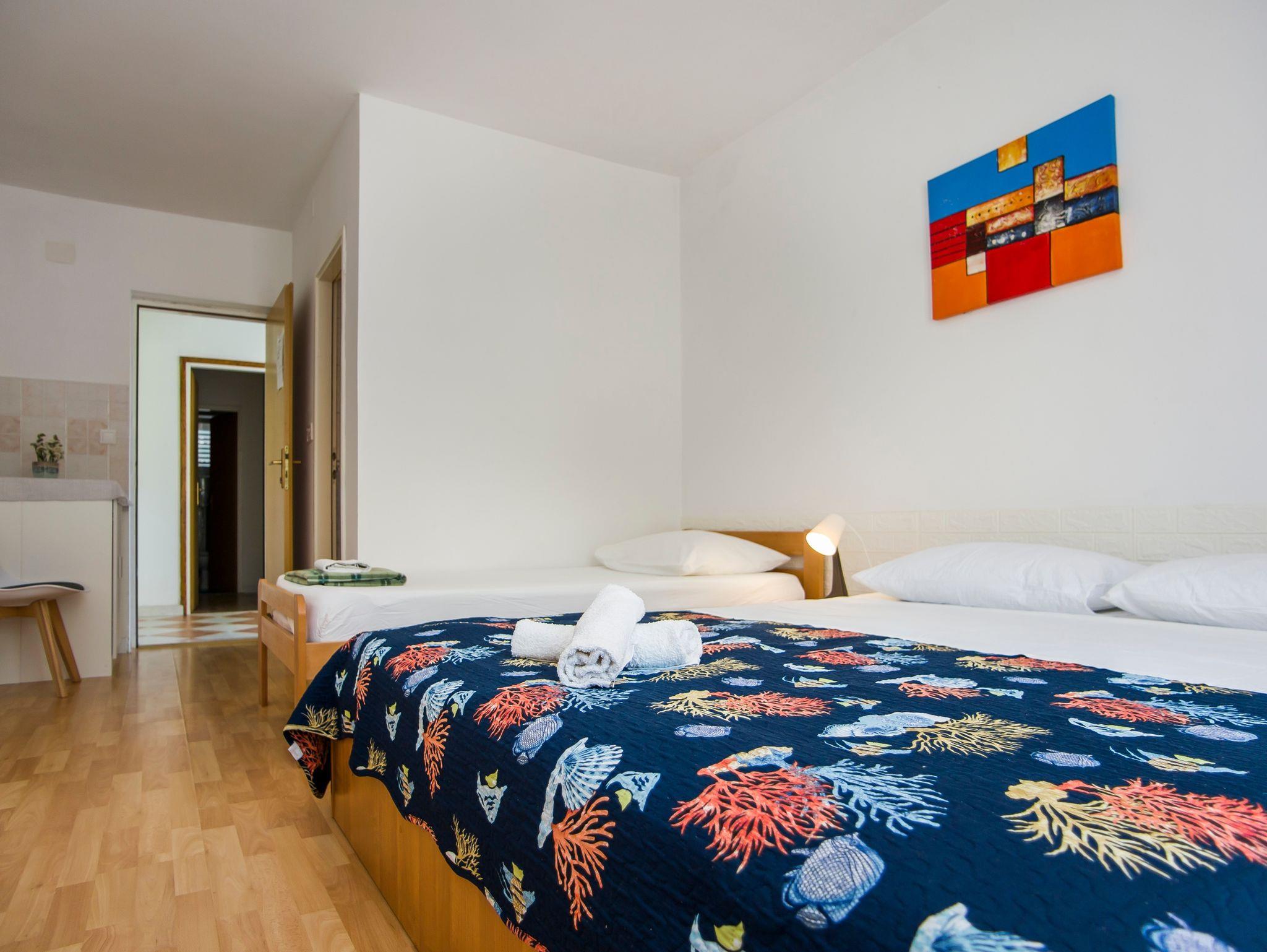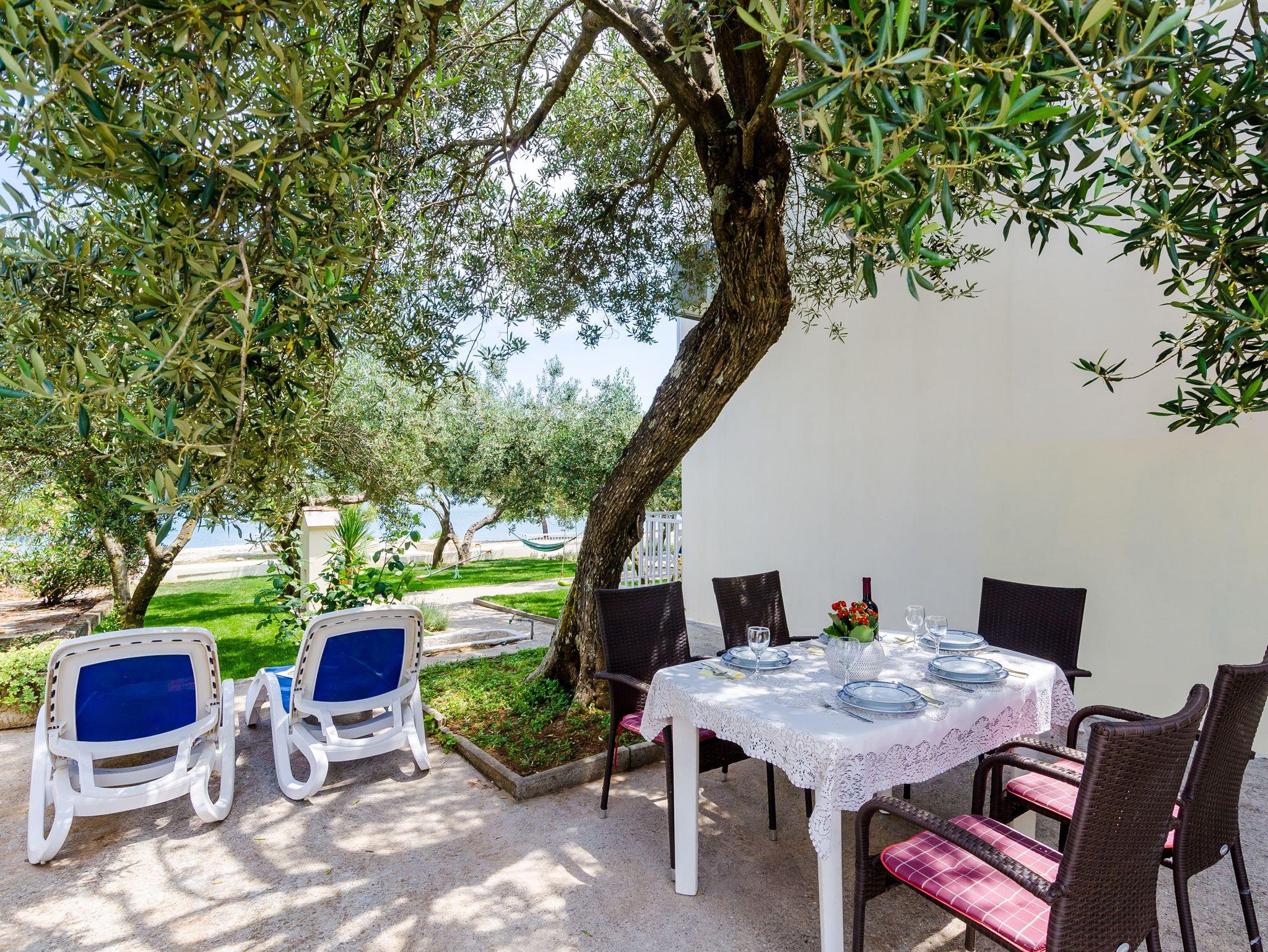 Ferienwohnung bietet Platz für 5 Gäste. Die Betten sind in Schlafzimmern, die es 1 gibt, und in Wohnzimmer, innerhalb einer Gesamtfläche von 37m2, angeordnet. Die Gäste haben eine eigene Terrasse zur Verfügung, auf der sie in warmen Sommernächten genießen können. Das Apartment bietet Meerblick. Für vollen Genuss und Entspannung gibt es einen privaten Grill für Gäste dieser Unterkunft. IM PREIS INBEGRIFFEN: Kurtaxe, Endreinigung, Klimatisierung, Parkplatz, Internet, Bügeleisen, Bügelbrett, Föhn, Liegestühle. Die Verfügbarkeit zusätzlicher Dienstleistungen in Ihrem reservierten Termin und die Preise derselben (falls nicht aufgeführt) müssen im Voraus überprüft werden. Zusätzliche Dienstleistungen die in der Zahlungsaufforderung nicht aufgeführt sind werden direkt beim Vermieter bezahlt, angenommen der Gast nutzt auch diese.