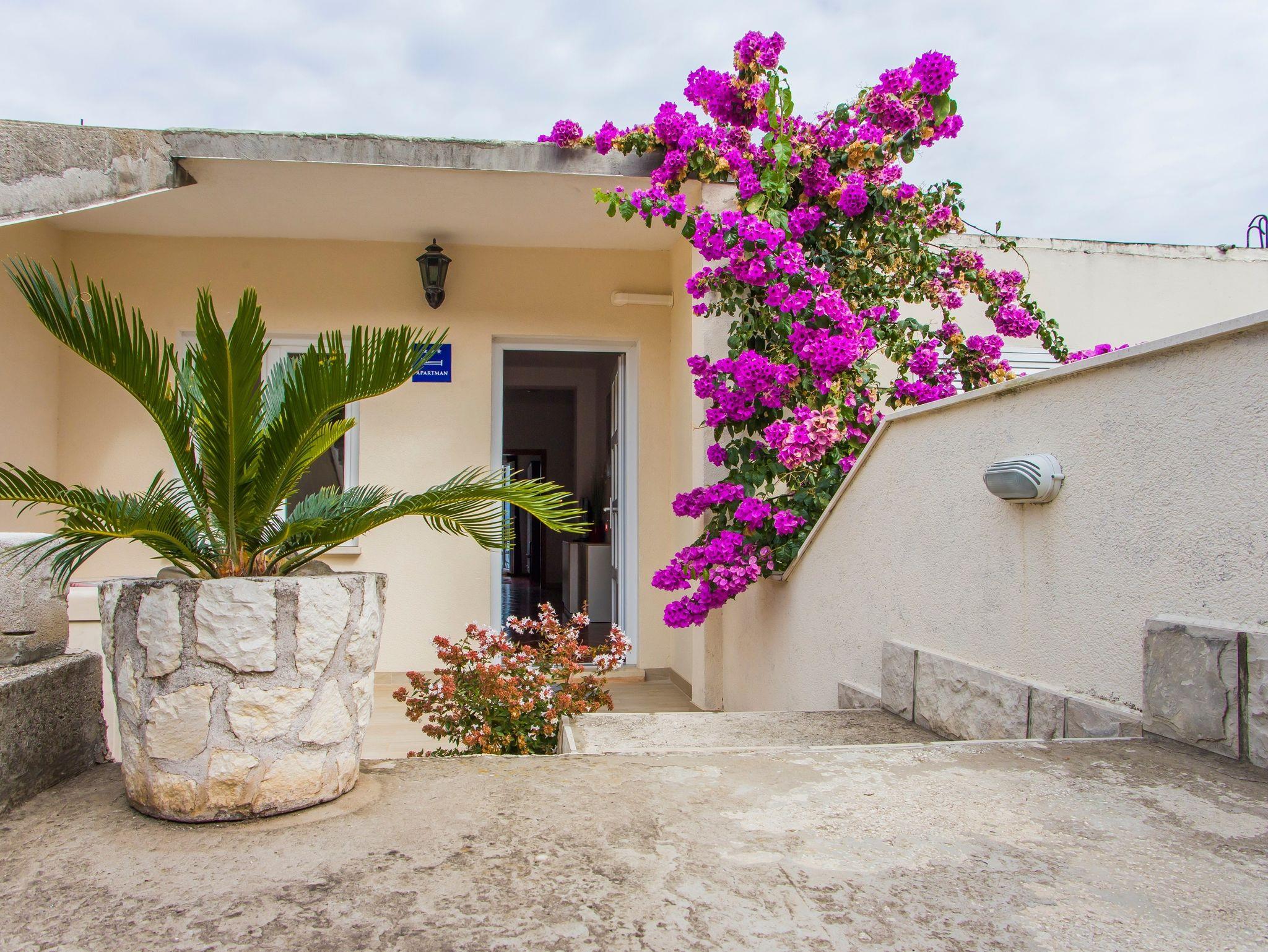 Ferienwohnung bietet Platz für 5 Gäste. Die Betten sind in Schlafzimmern, die es 2 gibt, innerhalb einer Gesamtfläche von 49m2, angeordnet. Die Gäste haben eine eigene Terrasse zur Verfügung, auf der sie in warmen Sommernächten genießen können. Das Apartment bietet Meerblick. Es ist erlaubt, Speisen auf dem Gemeinschafts-Grill vorzubereiten. IM PREIS INBEGRIFFEN: Kurtaxe, Endreinigung, Klimatisierung, Parkplatz, Internet, Bootsanlegeplatz, Kinderbett, Liegestühle. Die Verfügbarkeit zusätzlicher Dienstleistungen in Ihrem reservierten Termin und die Preise derselben (falls nicht aufgeführt) müssen im Voraus überprüft werden. Zusätzliche Dienstleistungen die in der Zahlungsaufforderung nicht aufgeführt sind werden direkt beim Vermieter bezahlt, angenommen der Gast nutzt auch diese.