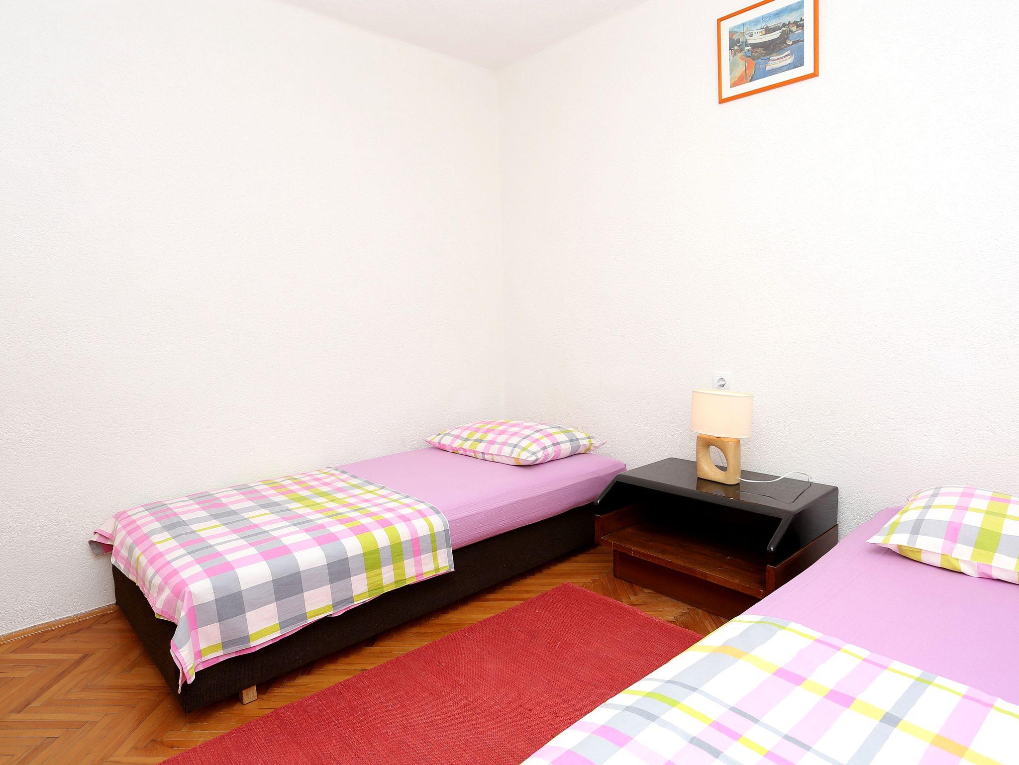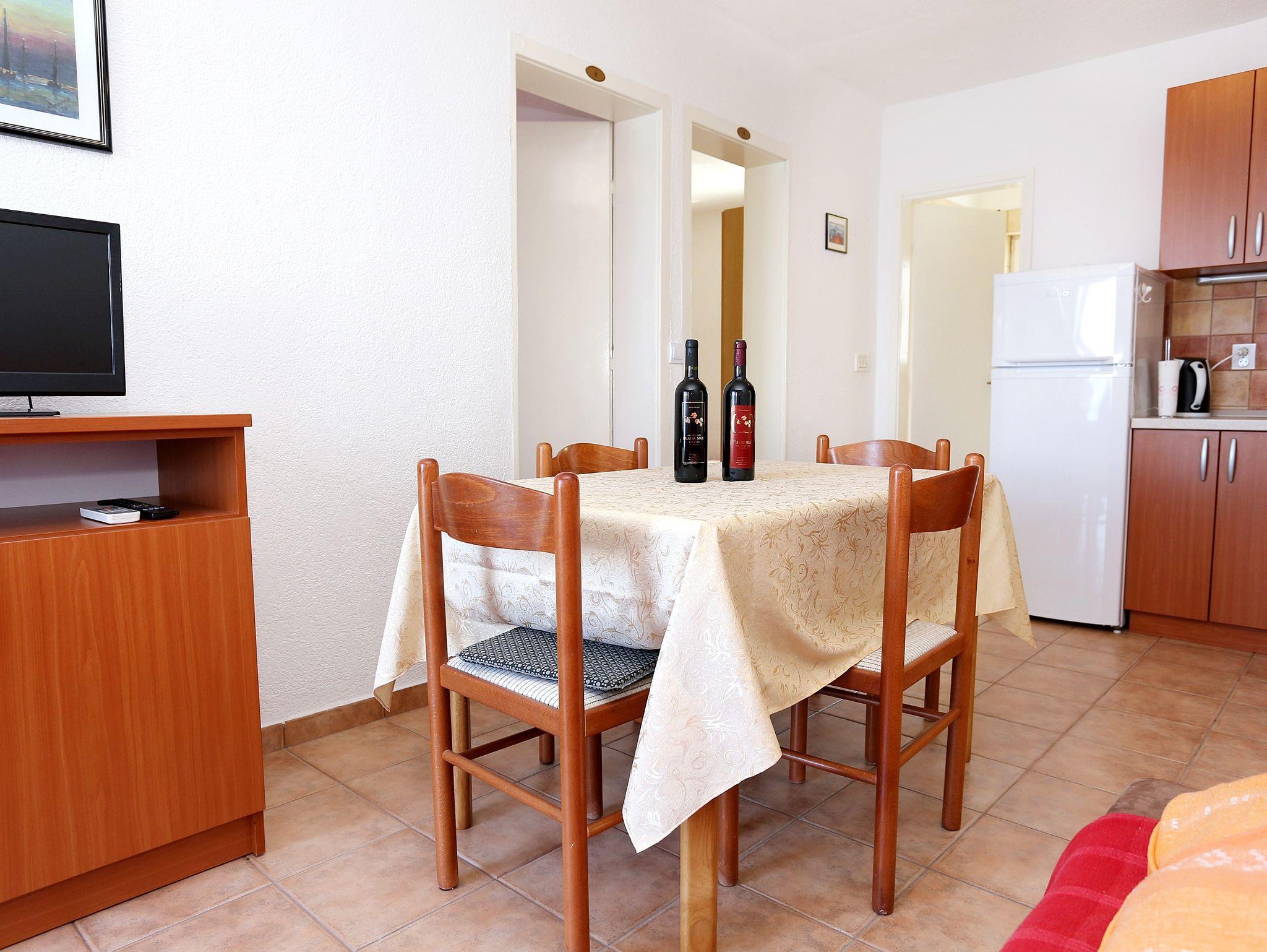 Ferienwohnung bietet Platz für 4 Gäste. Die Betten sind in Schlafzimmern, die es 2 gibt, innerhalb einer Gesamtfläche von 40m2, angeordnet. Die Gäste haben einen eigenen Balkon zur Verfügung, auf der sie in warmen Sommernächten genießen können. Das Apartment bietet Meerblick. Es ist erlaubt, Speisen auf dem Gemeinschafts-Grill vorzubereiten. IM PREIS INBEGRIFFEN: Kurtaxe, Endreinigung, Klimatisierung, Parkplatz, Internet, Bootsanlegeplatz, Bügeleisen, Bügelbrett, Föhn, Liegestühle. VERBINDLICHE ZUSÄTZLICHE KOSTEN: Aufzahlung für Kurzaufenthalte (prozentualer Zuschlag pro Nächtigungsanzahl: 30% - 1, 20% - 2, 10% - 3). Die Verfügbarkeit zusätzlicher Dienstleistungen in Ihrem reservierten Termin und die Preise derselben (falls nicht aufgeführt) müssen im Voraus überprüft werden. Zusätzliche Dienstleistungen die in der Zahlungsaufforderung nicht aufgeführt sind werden direkt beim Vermieter bezahlt, angenommen der Gast nutzt auch diese.