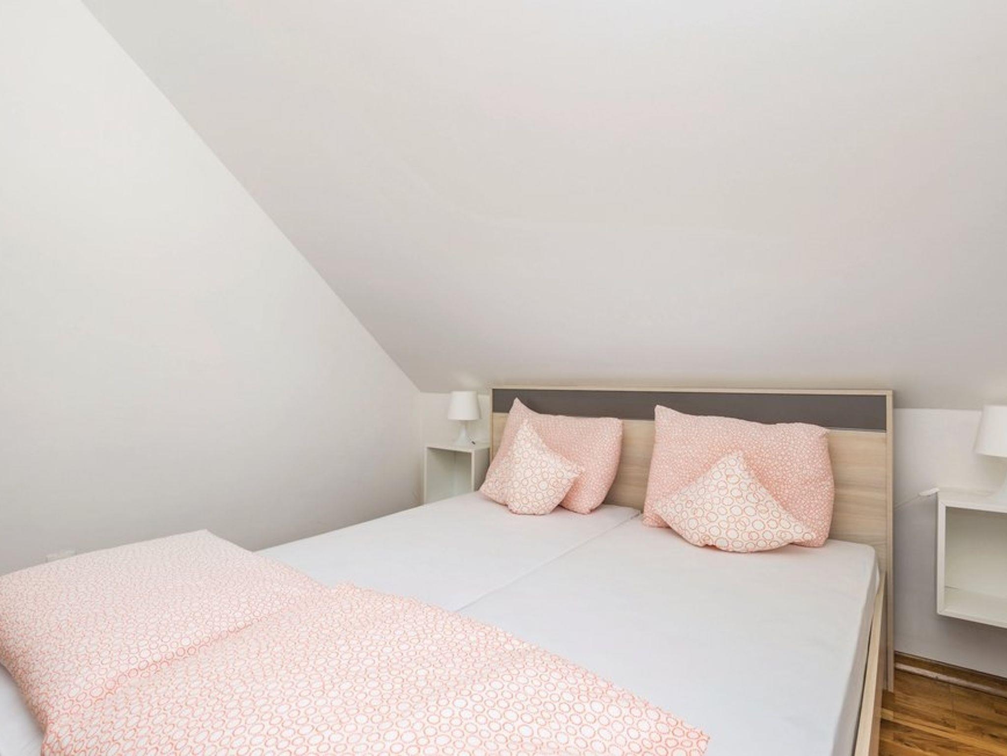 Ferienwohnung bietet Platz für 6 Gäste. Die Betten sind in Schlafzimmern, die es 2 gibt, und in Wohnzimmer, innerhalb einer Gesamtfläche von 53m2, angeordnet. Die Gäste haben einen eigenen Balkon zur Verfügung, auf der sie in warmen Sommernächten genießen können. Es ist erlaubt, Speisen auf dem Gemeinschafts-Grill vorzubereiten. In der Unterkunftseinheit besteht die Möglichkeit des Mitbringens von Haustieren, und die Dienstleistung ist im Preis der Unterkunft enthalten. IM PREIS INBEGRIFFEN: Kurtaxe, Endreinigung, Klimatisierung, Parkplatz, Internet, Haustiere, Föhn. VERBINDLICHE ZUSÄTZLICHE KOSTEN: Aufzahlung für Kurzaufenthalte (prozentualer Zuschlag pro Nächtigungsanzahl: 30% - 1, 20% - 2, 10% - 3). Die Verfügbarkeit zusätzlicher Dienstleistungen in Ihrem reservierten Termin und die Preise derselben (falls nicht aufgeführt) müssen im Voraus überprüft werden. Zusätzliche Dienstleistungen die in der Zahlungsaufforderung nicht aufgeführt sind werden direkt beim Vermieter bezahlt, angenommen der Gast nutzt auch diese. Ermäßigung auf den Grundpreis: Gratistag 14=13 (bei einem Aufenthalt von 14 Tagen oder mehr erhalten Sie einen Gratistag für den Aufenthalt bis 31.12.26).