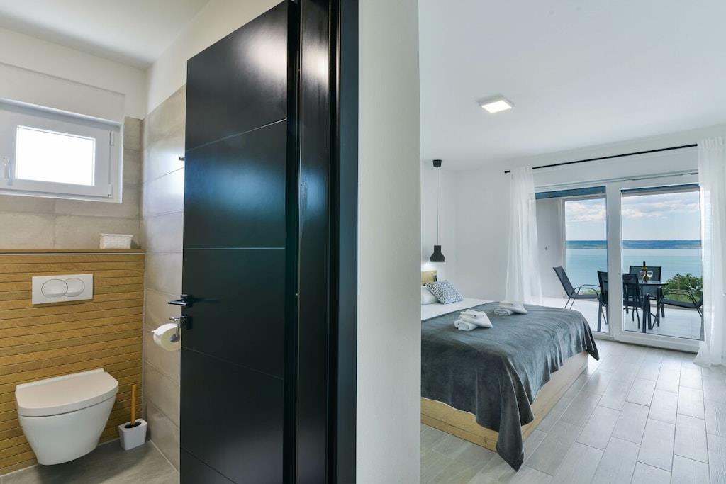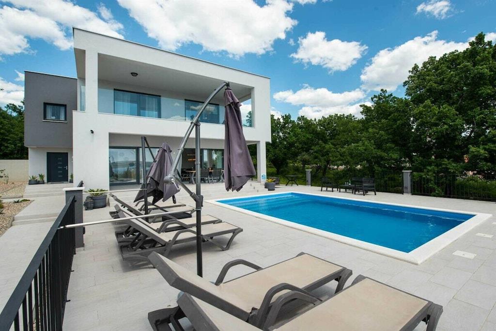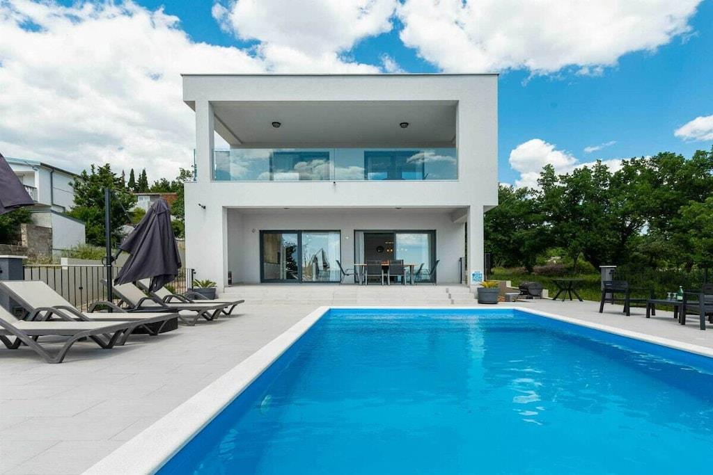 Diese luxuriöse 4 * Villa, nur 70 m vom Strand entfernt, wird Sie atemlos machen. Dies ist eine Oase der Ruhe und Entspannung für alle Sinne. Villa besteht aus vier Schlafzimmern, jedes mit eigenem Bad. Zwei von ihnen haben eine Terrasse und einen atemberaubenden Blick auf das Meer. Im Erdgeschoss befinden sich eine geräumige, voll ausgestattete Küche, ein Esszimmer, ein Wohnzimmer, eine Terrasse mit Zugang zum Außenpoolbereich mit Liegestühlen, ein Grillplatz, eine Tischtennisplatte und fünf gesicherte Parkplätze. Die Villa wurde in einem hochwertigen, spezifischen Industriestil eingerichtet, der sich durch das gesamte Innere zieht und auch perfekt mit dem Äußeren dieser modernen Villa harmoniert.
