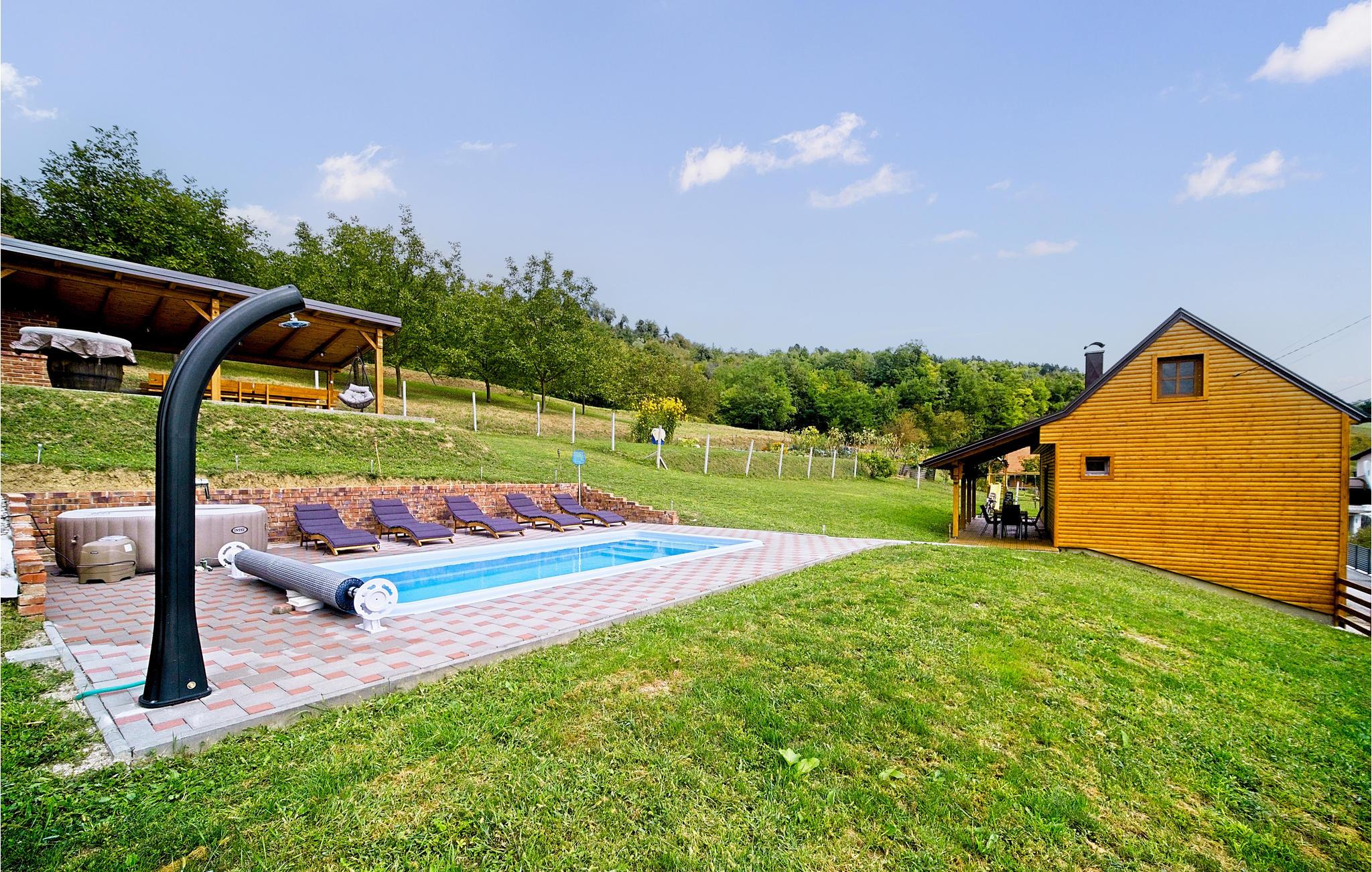 Dette træhus med pool og storslået udsigt over landskabet byder jer velkommen for foden af Plesivica.