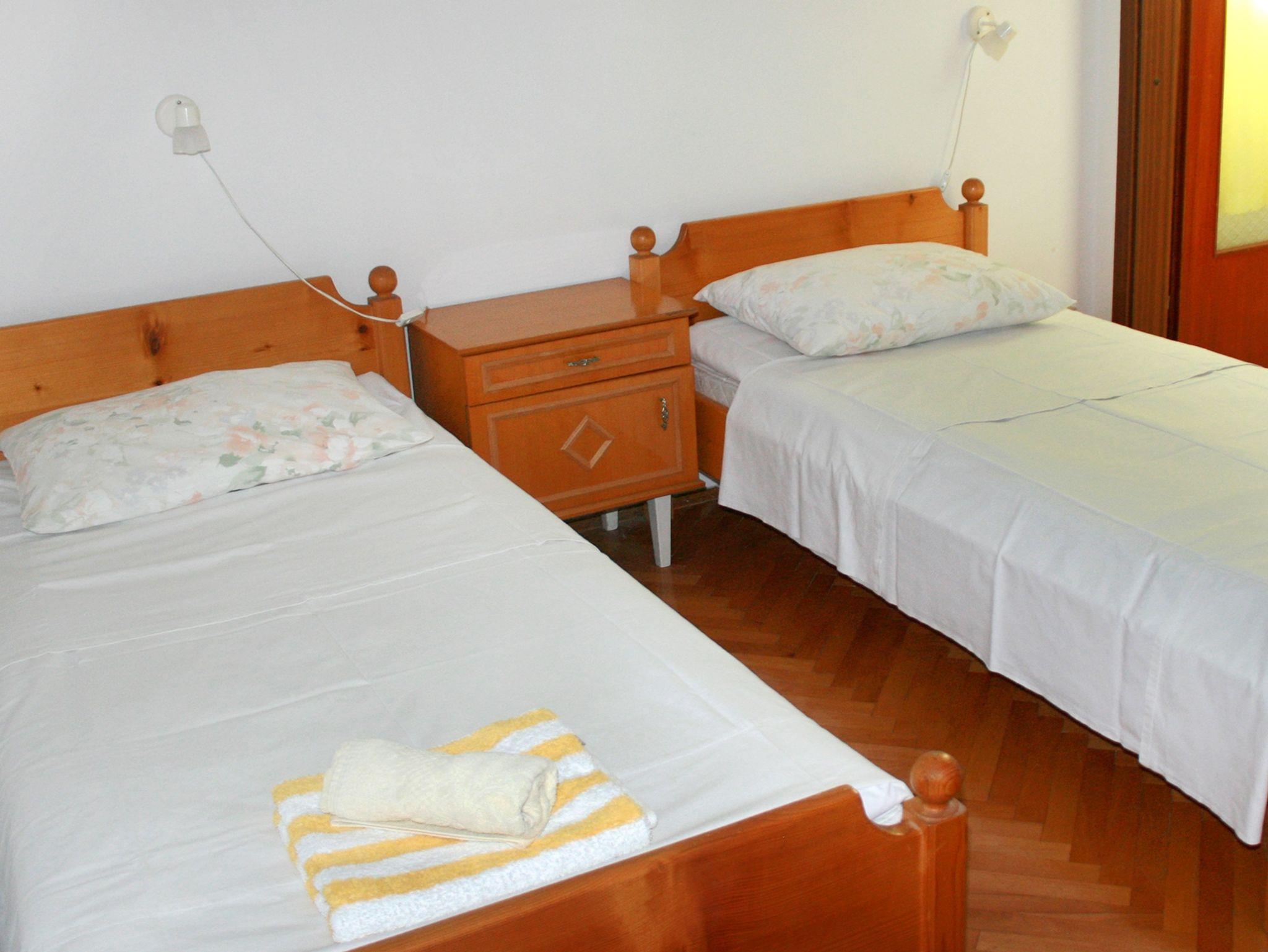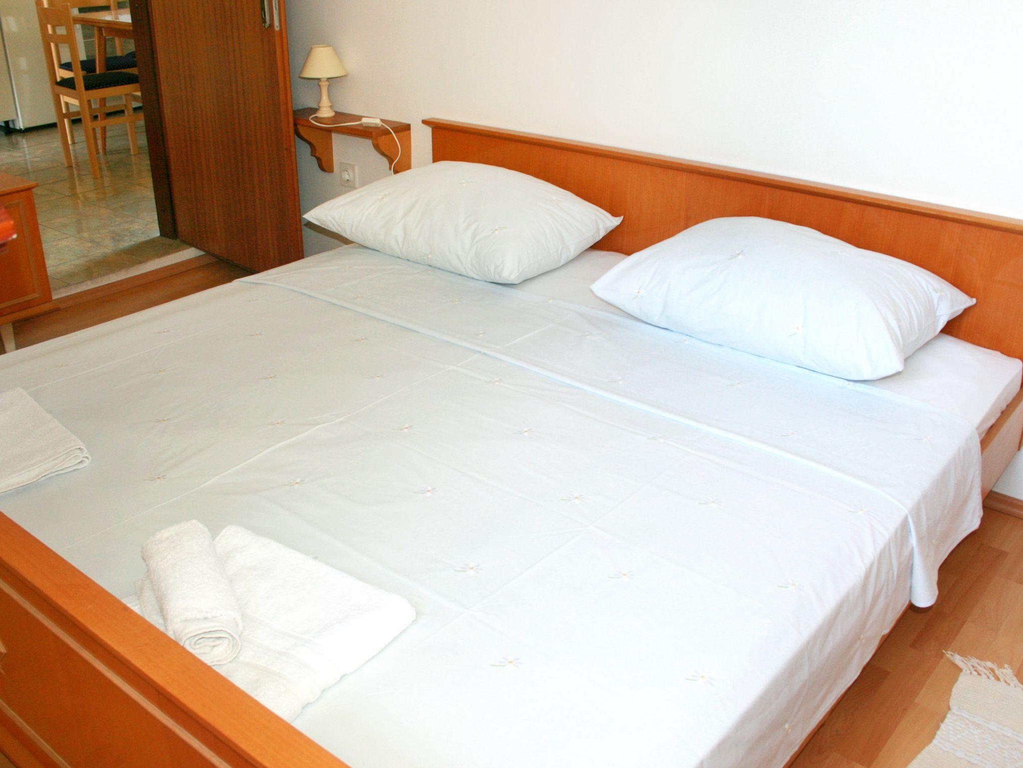 Ferienwohnung bietet Platz für 4 Gäste. Die Betten sind in Schlafzimmern, die es 2 gibt, innerhalb einer Gesamtfläche von 34m2, angeordnet. Die Gäste haben eine eigene Terrasse zur Verfügung, auf der sie in warmen Sommernächten genießen können. Das Apartment bietet Meerblick. Es ist erlaubt, Speisen auf dem Gemeinschafts-Grill vorzubereiten. In der Unterkunftseinheit besteht die Möglichkeit des Mitbringens von Haustieren, und die Dienstleistung ist im Preis der Unterkunft enthalten. IM PREIS INBEGRIFFEN: Kurtaxe, Endreinigung, Klimatisierung, Parkplatz, Internet, Haustiere, Kinderbett, Bügelbrett. VERBINDLICHE ZUSÄTZLICHE KOSTEN: Aufzahlung für Kurzaufenthalte (prozentualer Zuschlag pro Nächtigungsanzahl: 30% - 1, 20% - 2, 10% - 3). UNVERBINDLICHE ZUSÄTZLICHE KOSTEN: Wäschewaschen (4,00 € Waschen), Zusatzbett (5,00 € pro Nacht). Die Verfügbarkeit zusätzlicher Dienstleistungen in Ihrem reservierten Termin und die Preise derselben (falls nicht aufgeführt) müssen im Voraus überprüft werden. Zusätzliche Dienstleistungen die in der Zahlungsaufforderung nicht aufgeführt sind werden direkt beim Vermieter bezahlt, angenommen der Gast nutzt auch diese.