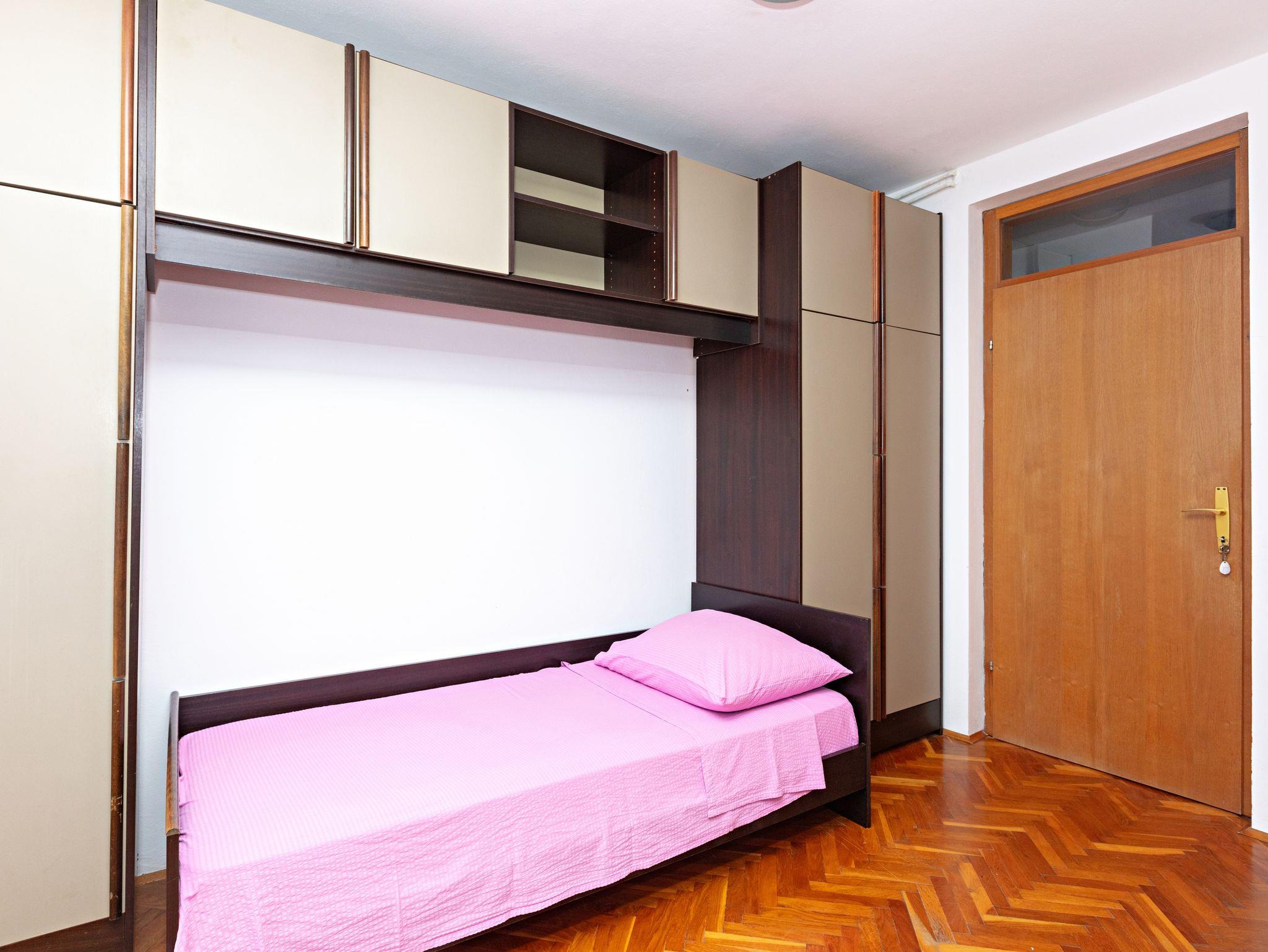 Studio bietet Platz für 3 Gäste. Die Betten sind in Schlafzimmern, die es 1 gibt, innerhalb einer Gesamtfläche von 24m2, angeordnet. Die Gäste haben eine eigene Terrasse zur Verfügung, auf der sie in warmen Sommernächten genießen können. Es ist erlaubt, Speisen auf dem Gemeinschafts-Grill vorzubereiten. IM PREIS INBEGRIFFEN: Kurtaxe, Endreinigung, Klimatisierung, Parkplatz, Internet, tragbarer Grill. VERBINDLICHE ZUSÄTZLICHE KOSTEN: Aufzahlung für Kurzaufenthalte (prozentualer Zuschlag pro Nächtigungsanzahl: 30% - 1, 20% - 2, 10% - 3). Die Verfügbarkeit zusätzlicher Dienstleistungen in Ihrem reservierten Termin und die Preise derselben (falls nicht aufgeführt) müssen im Voraus überprüft werden. Zusätzliche Dienstleistungen die in der Zahlungsaufforderung nicht aufgeführt sind werden direkt beim Vermieter bezahlt, angenommen der Gast nutzt auch diese.