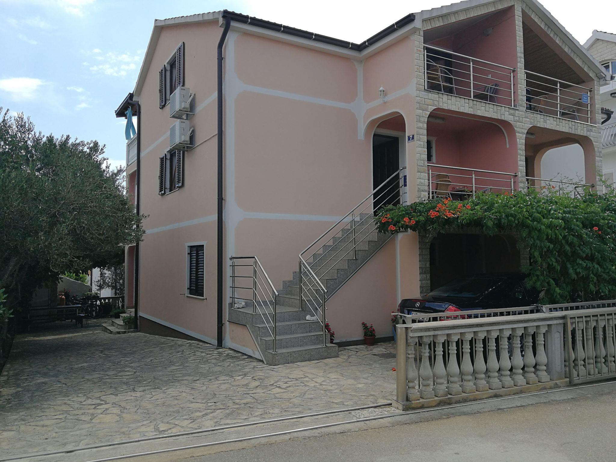 Ferienwohnung bietet Platz für 5 Gäste. Die Betten sind in Schlafzimmern, die es 2 gibt, und in Wohnzimmer, innerhalb einer Gesamtfläche von 42m2, angeordnet. Die Gäste haben eine eigene Terrasse zur Verfügung, auf der sie in warmen Sommernächten genießen können. Es ist erlaubt, Speisen auf dem Gemeinschafts-Grill vorzubereiten. In der Unterkunftseinheit besteht die Möglichkeit des Mitbringens von Haustieren gegen Aufpreis. IM PREIS INBEGRIFFEN: Kurtaxe, Endreinigung, Klimatisierung, Parkplatz, Internet, Wäschewaschen, Fahrrad, Kinderbett, Bügeleisen. VERBINDLICHE ZUSÄTZLICHE KOSTEN: Aufzahlung für Kurzaufenthalte (prozentualer Zuschlag pro Nächtigungsanzahl: 30% - 1, 20% - 2, 10% - 3). UNVERBINDLICHE ZUSÄTZLICHE KOSTEN: Haustiere (5,00 € pro Nacht). Die Verfügbarkeit zusätzlicher Dienstleistungen in Ihrem reservierten Termin und die Preise derselben (falls nicht aufgeführt) müssen im Voraus überprüft werden. Zusätzliche Dienstleistungen die in der Zahlungsaufforderung nicht aufgeführt sind werden direkt beim Vermieter bezahlt, angenommen der Gast nutzt auch diese. Ermäßigung auf den Grundpreis: Gratistag 14=13 (bei einem Aufenthalt von 14 Tagen oder mehr erhalten Sie einen Gratistag für den Aufenthalt bis 31.12.26).