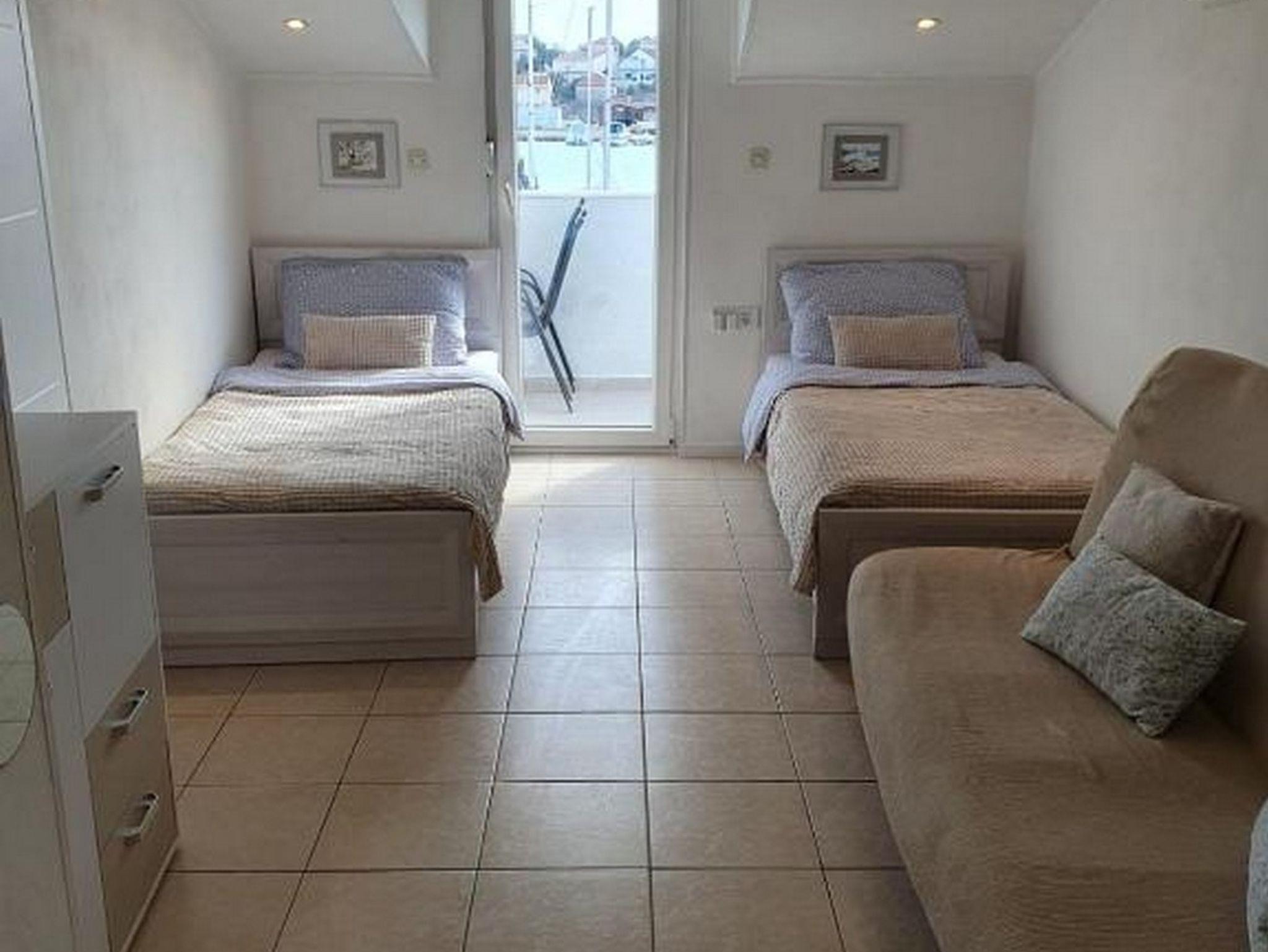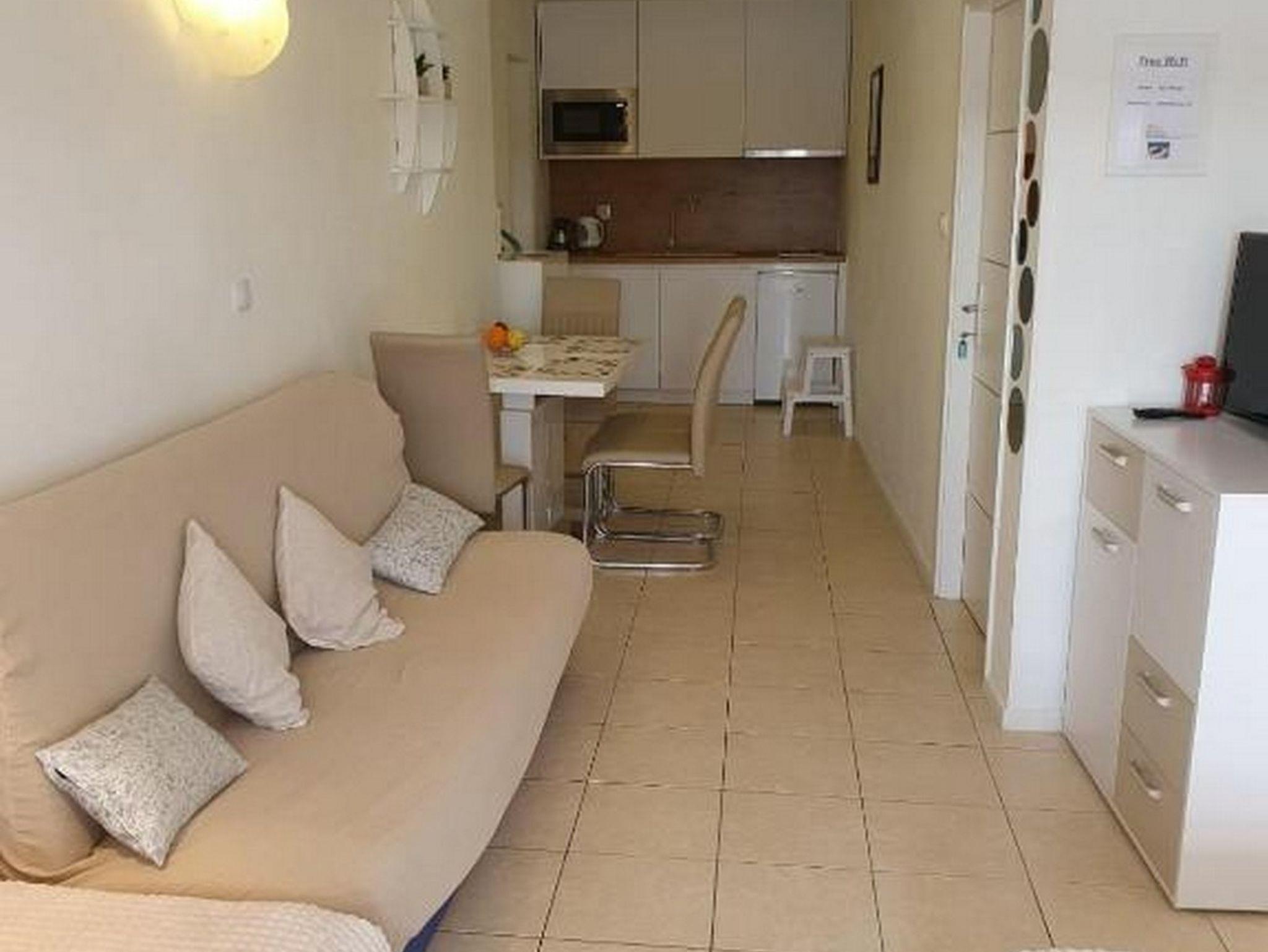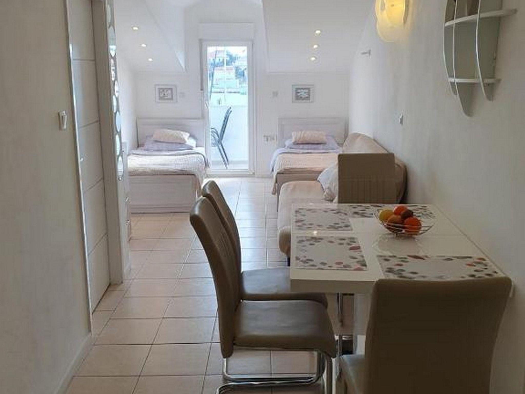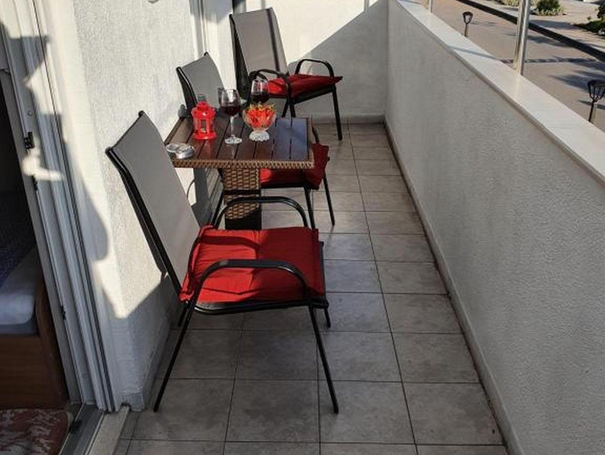 Ferienwohnung bietet Platz für 4 Gäste. Die Betten sind in Schlafzimmern, die es 1 gibt, und in Wohnzimmer, innerhalb einer Gesamtfläche von 30m2, angeordnet. Die Gäste haben einen eigenen Balkon zur Verfügung, auf der sie in warmen Sommernächten genießen können. Das Apartment bietet Meerblick. IM PREIS INBEGRIFFEN: Kurtaxe, Endreinigung, Klimatisierung, Parkplatz, Internet. VERBINDLICHE ZUSÄTZLICHE KOSTEN: Aufzahlung für Kurzaufenthalte (prozentualer Zuschlag pro Nächtigungsanzahl: 30% - 1, 20% - 2, 10% - 3). Die Verfügbarkeit zusätzlicher Dienstleistungen in Ihrem reservierten Termin und die Preise derselben (falls nicht aufgeführt) müssen im Voraus überprüft werden. Zusätzliche Dienstleistungen die in der Zahlungsaufforderung nicht aufgeführt sind werden direkt beim Vermieter bezahlt, angenommen der Gast nutzt auch diese.