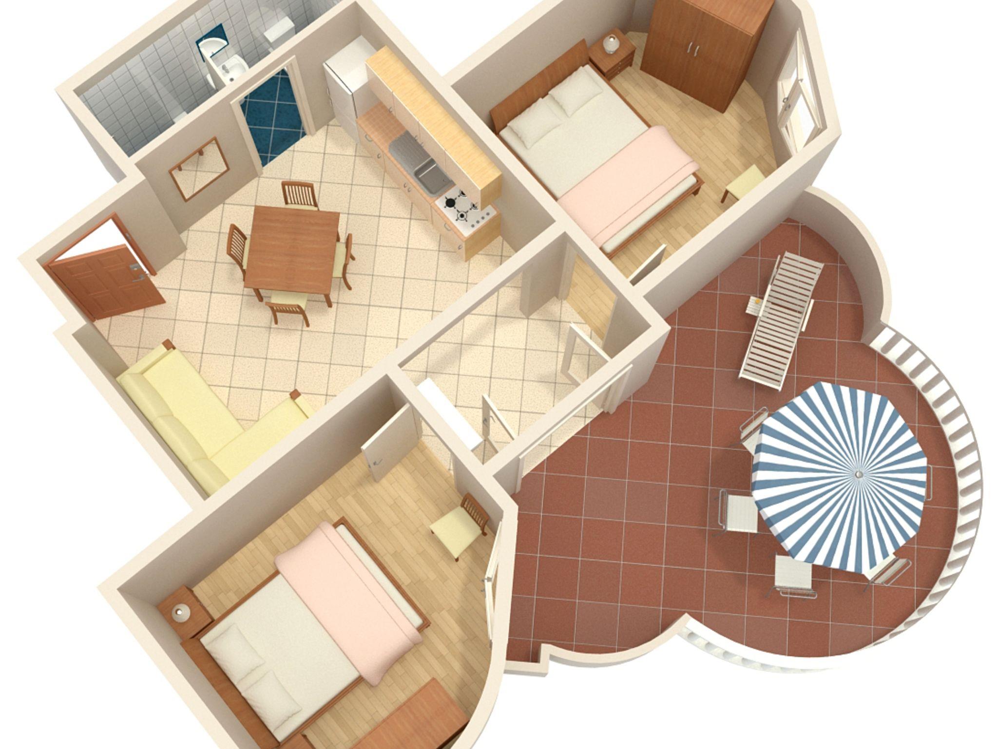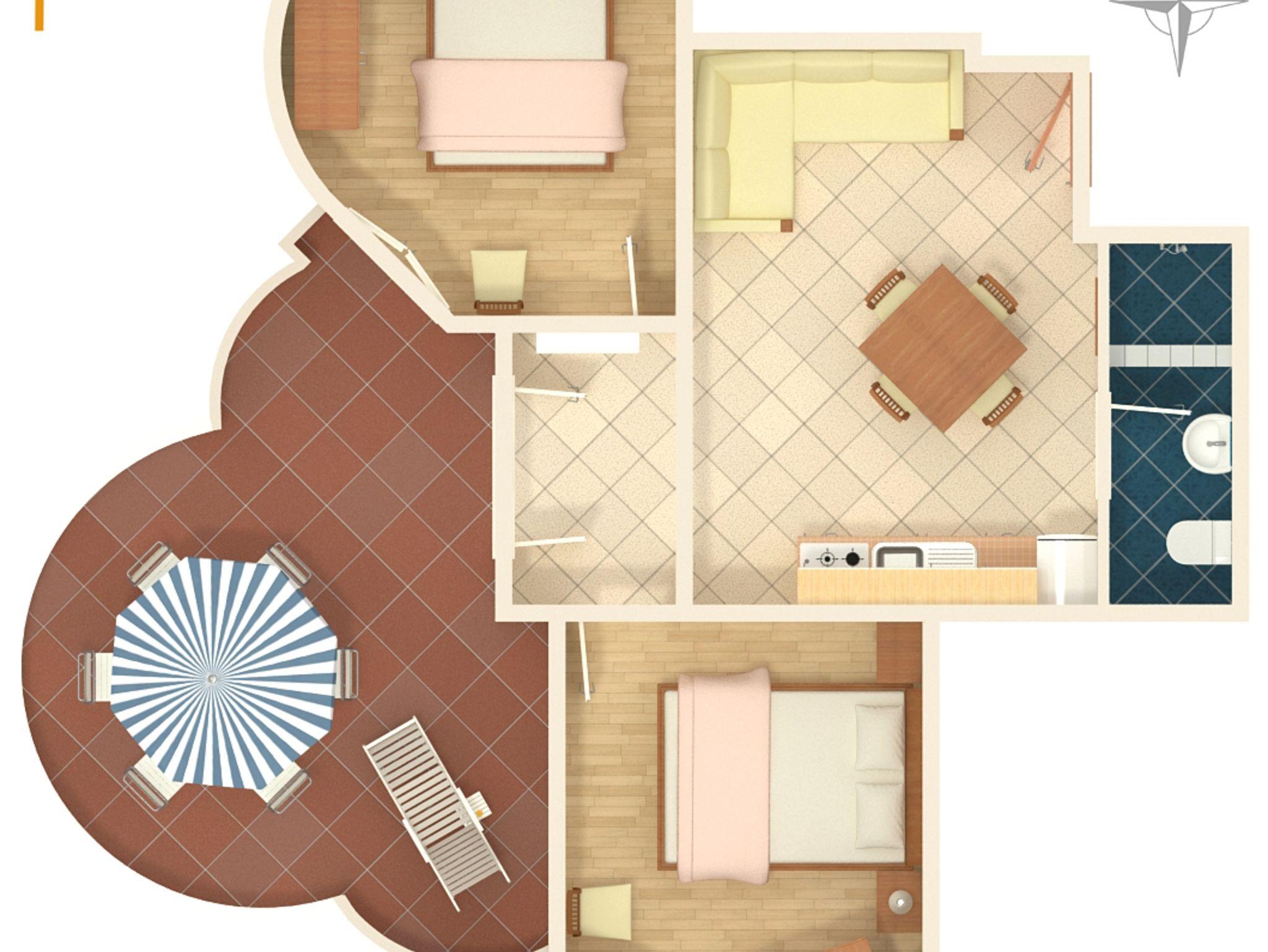 Ferienwohnung bietet Platz für 5 Gäste. Die Betten sind in Schlafzimmern, die es 2 gibt, und in Esszimmer, innerhalb einer Gesamtfläche von 50m2, angeordnet. Die Gäste haben eine eigene Terrasse zur Verfügung, auf der sie in warmen Sommernächten genießen können. Es ist erlaubt, Speisen auf dem Gemeinschafts-Grill vorzubereiten. IM PREIS INBEGRIFFEN: Kurtaxe, Endreinigung, Klimatisierung, Parkplatz, Internet, Föhn. VERBINDLICHE ZUSÄTZLICHE KOSTEN: Aufzahlung für Kurzaufenthalte (prozentualer Zuschlag pro Nächtigungsanzahl: 30% - 1, 20% - 2, 10% - 3). UNVERBINDLICHE ZUSÄTZLICHE KOSTEN: Wäschewaschen (5,00 € Waschen). Die Verfügbarkeit zusätzlicher Dienstleistungen in Ihrem reservierten Termin und die Preise derselben (falls nicht aufgeführt) müssen im Voraus überprüft werden. Zusätzliche Dienstleistungen die in der Zahlungsaufforderung nicht aufgeführt sind werden direkt beim Vermieter bezahlt, angenommen der Gast nutzt auch diese.