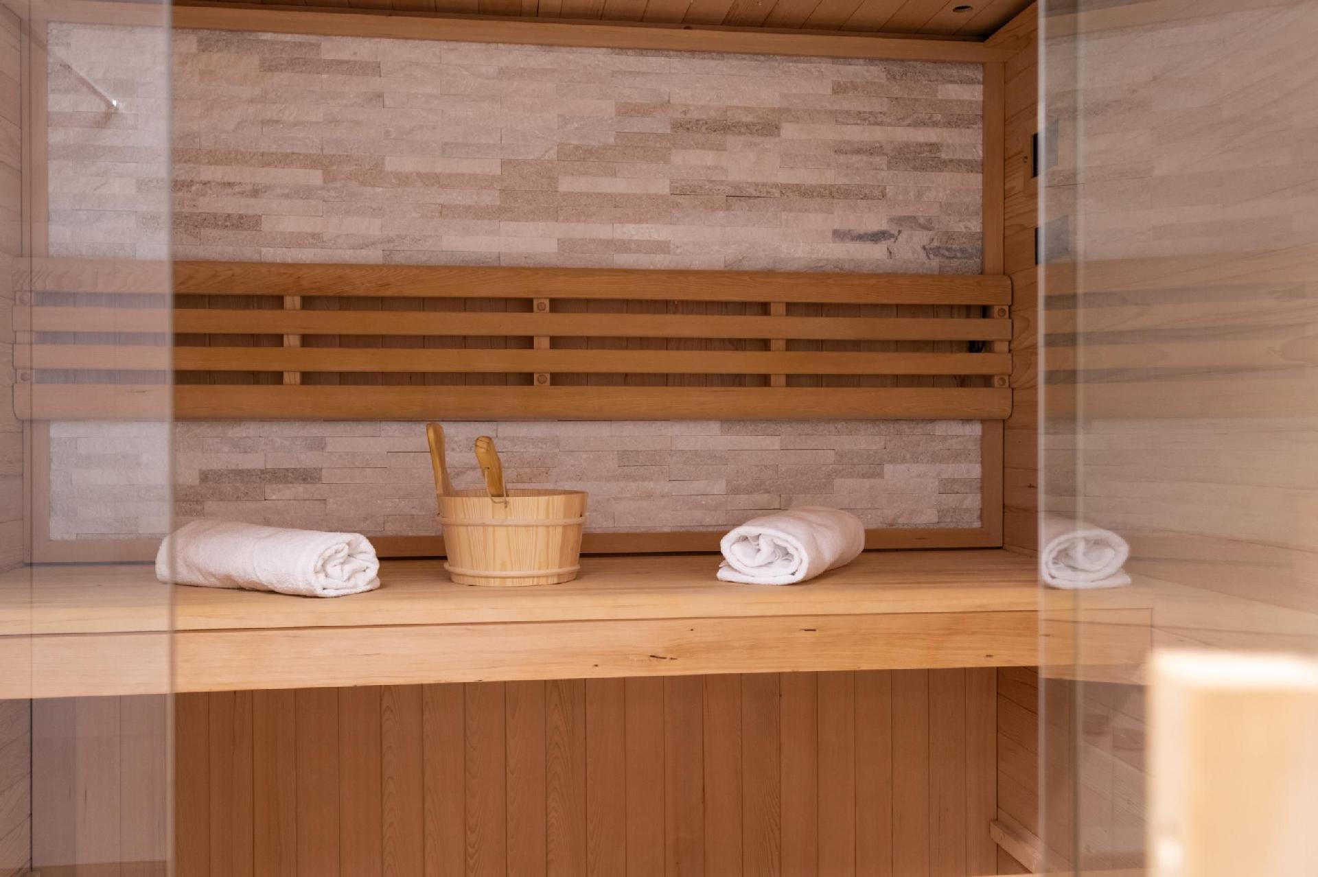 The villa stands out with its saltwater swimming pool, which can be heated, and a built-in Jacuzzi. There’s also a spa area with a sauna and a hydro-massage bath.