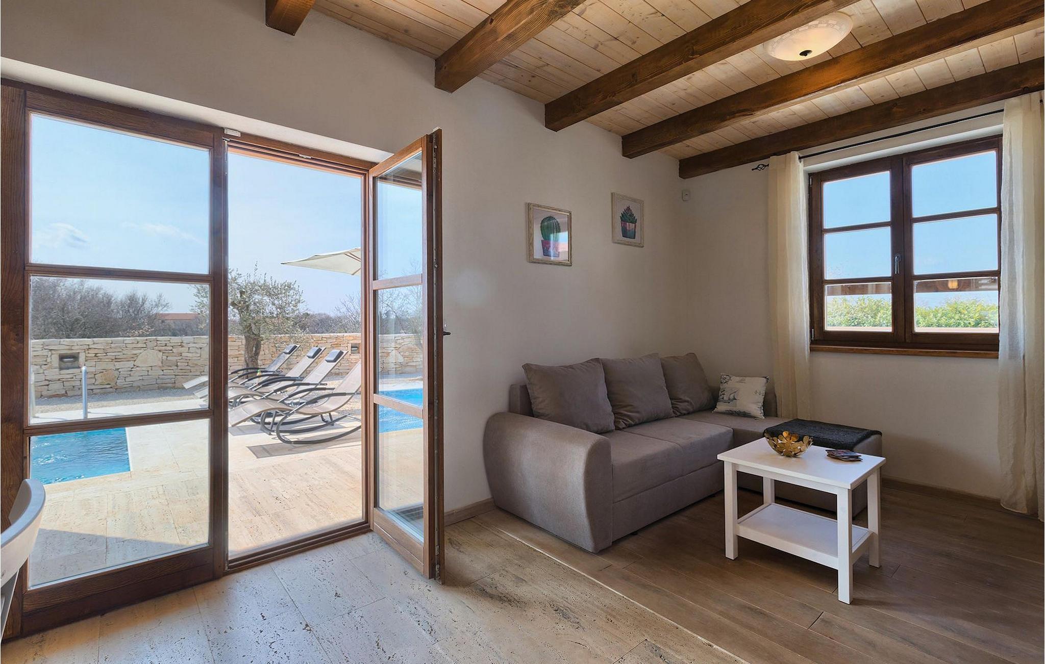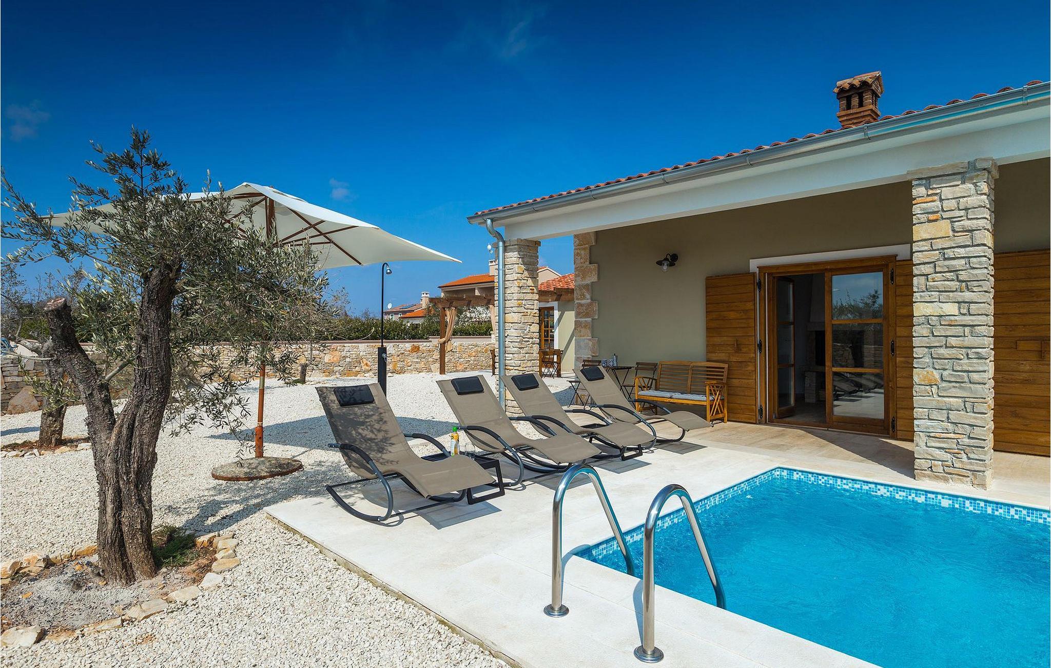 Den skønne charmerende Villa Malena ligger i en lille landsby i det centrale Istrien og kan rumme op til 6+1 gæster. Villaen er et etagers hus og består af et åbent koncept opholdsområde, køkken med morgenmadsbar og spiseplads. Fra stuen har du direkte adgang til poolområdet. I hovedhuset finder du to soveværelser samt to badeværelser. Det tredje soveværelse med eget badeværelse er placeret i poolhuset. Hele villaen er indrettet i en charmerende landlig stil. I det udendørs område finder du en udendørs spiseplads, en traditionel stengrill samt 3 cykler. Villa Malena er omgivet af gamle oliventræer og byder på fred og ro samt afslapning fra hverdagens stress.