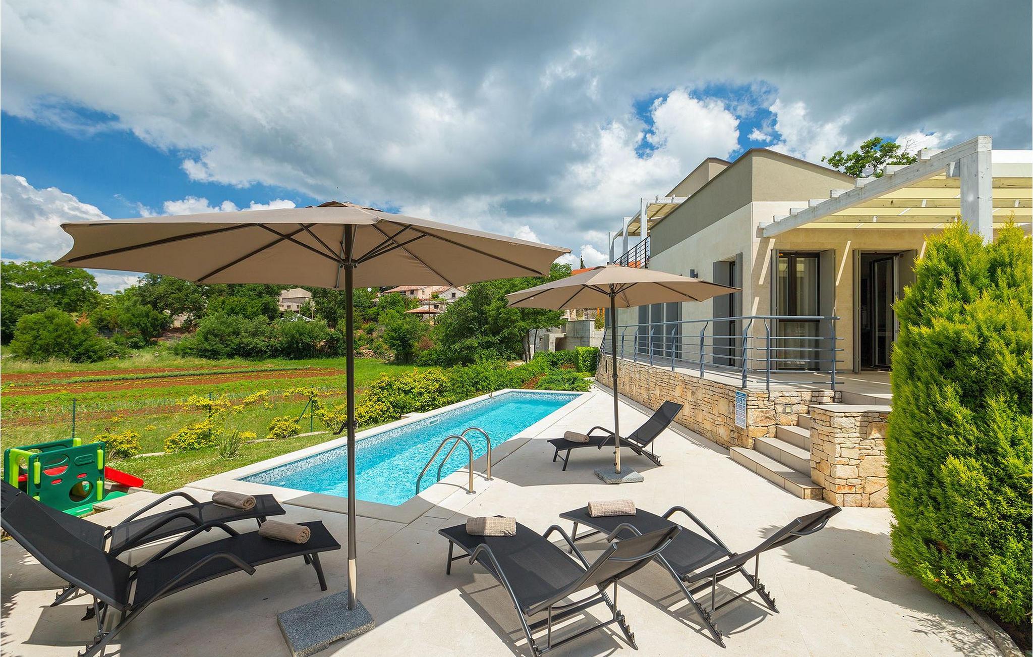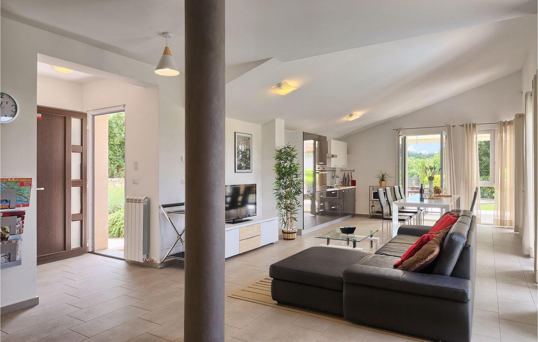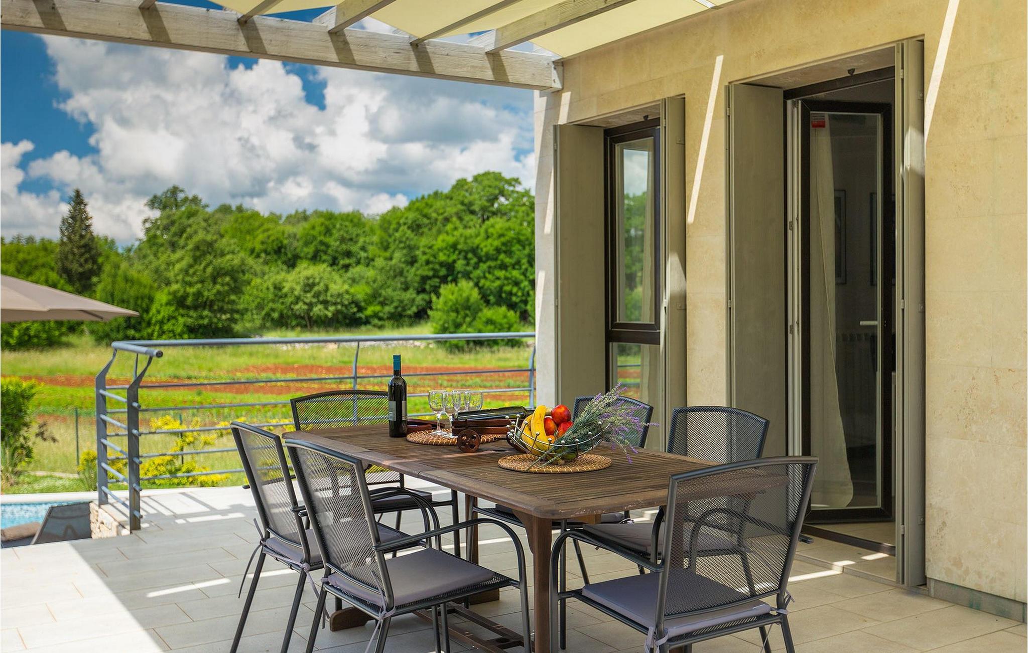 Die Villa Casa Enro befindet sich im Herzen Istriens. Es ist der perfekte Ort wo Sie Ihren nächsten Urlaub genießen können. Die Villa bietet Platz für bis zu 7 Personen auf einem 146 m2 großen Wohnraum. Das offene Interieur besteht aus einer voll ausgestatteten Küche mit Essbereich und einem schicken Wohnzimmer, in dem Sie sich beim Lesen Ihres Lieblingsbuchs entspannen können. Das Erdgeschoss verfügt über ein komfortables Schlafzimmer und ein Badezimmer. Im Obergeschoß befinden sich zwei weitere Schlafzimmer und ein Badezimmer. Ein Schlafzimmer hat zwei Einzelbetten und das andere Schlafzimmer hat ein Doppelbett und einen kleinen Wohnbereich mit TV. Im ersten Stock der Villa befindet sich ebenso eine schöne Terrasse, auf der Sie mit Ihrer Familie und Freunden bei einem Glas der besten istrischen Malvazija entspannen können. Das Erdgeschoss hat einen direkter Zugang zum schönen Garten und Poolbereich. Der Pool ist 24m2 groß und ist die ideale Erfrischung an heißen Sommertagen. Der Außenbereich verfügt über einen Essbereich, in dem Sie Ihre Mahlzeiten mit einer schönen Aussicht genießen können.