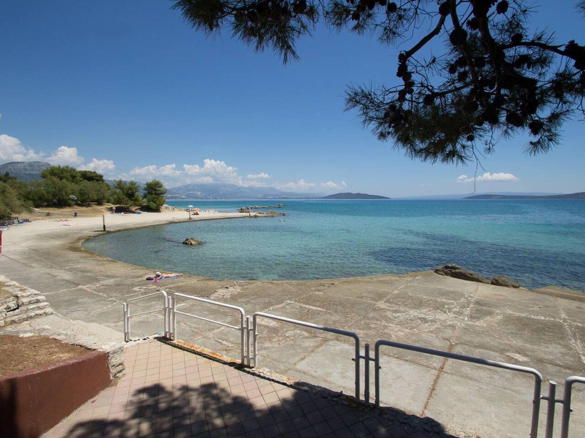 The apartment's location in Kaštel Štafilic places guests in a prime spot to explore the surrounding area. A mere 300m walk brings you to beautiful beaches, while those with pets will appreciate the dog-friendly beach just 500m away. The proximity to both Trogir and Split offers opportunities for cultural excursions and sightseeing, making it an ideal base for both relaxation and adventure.