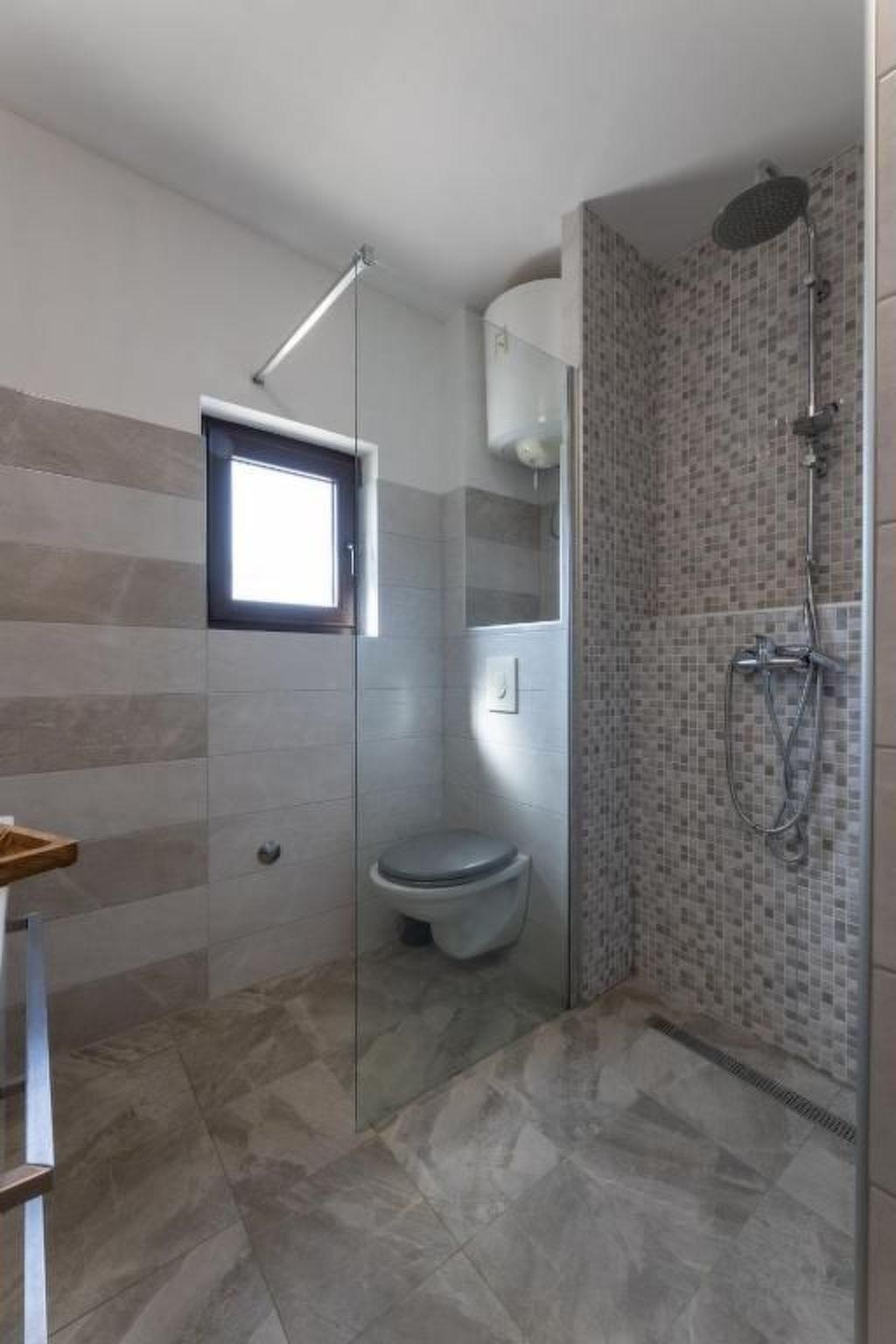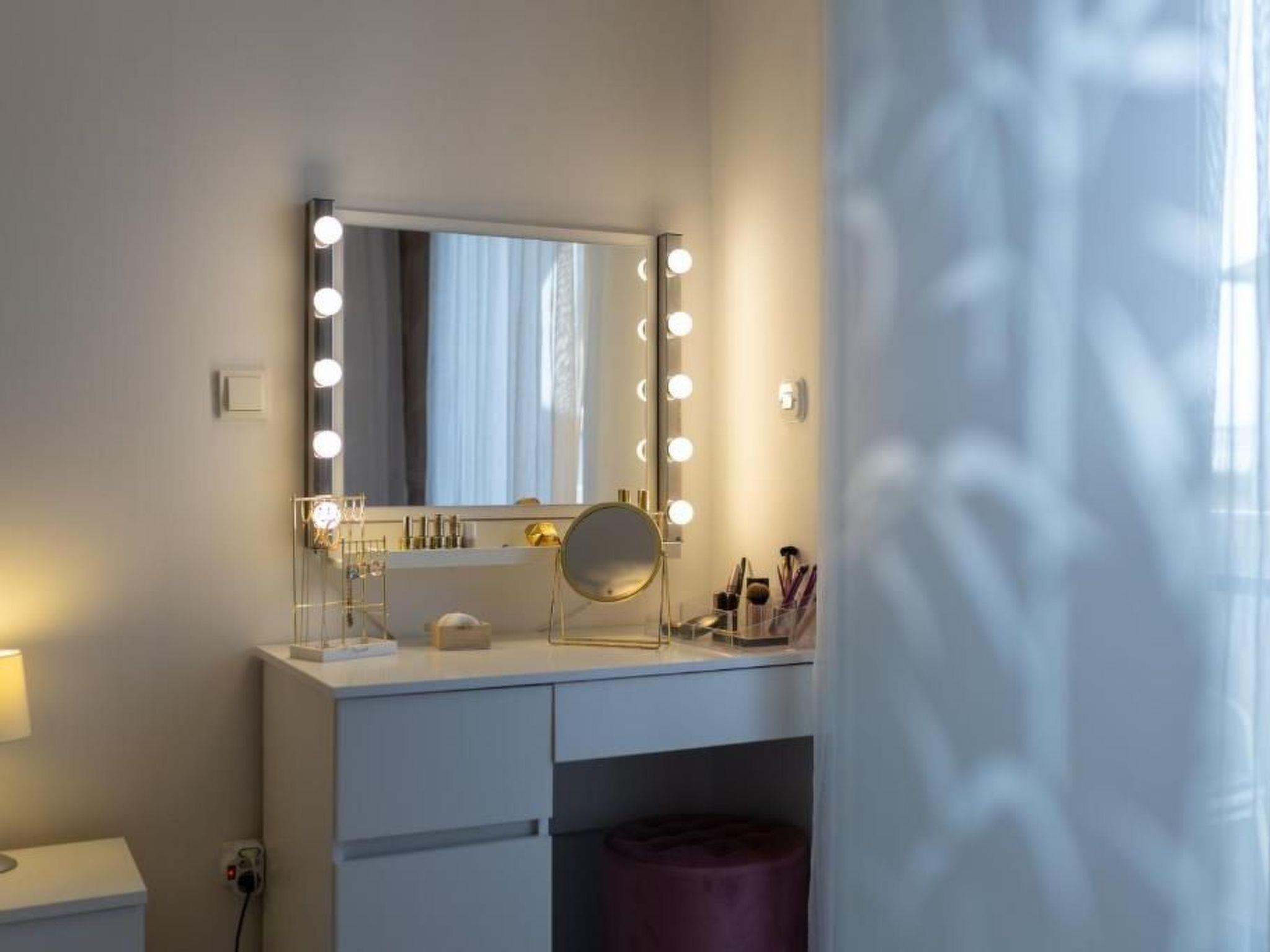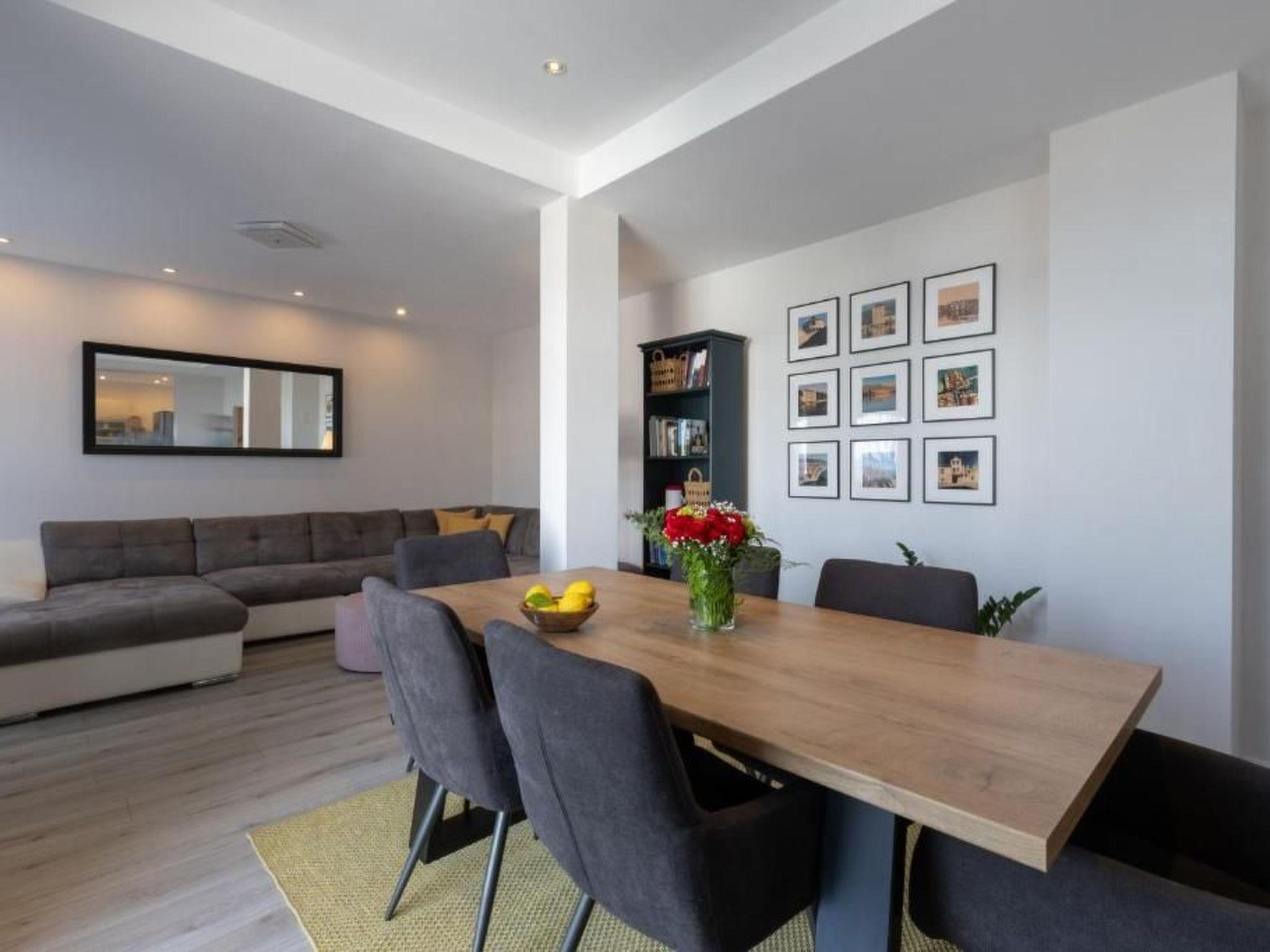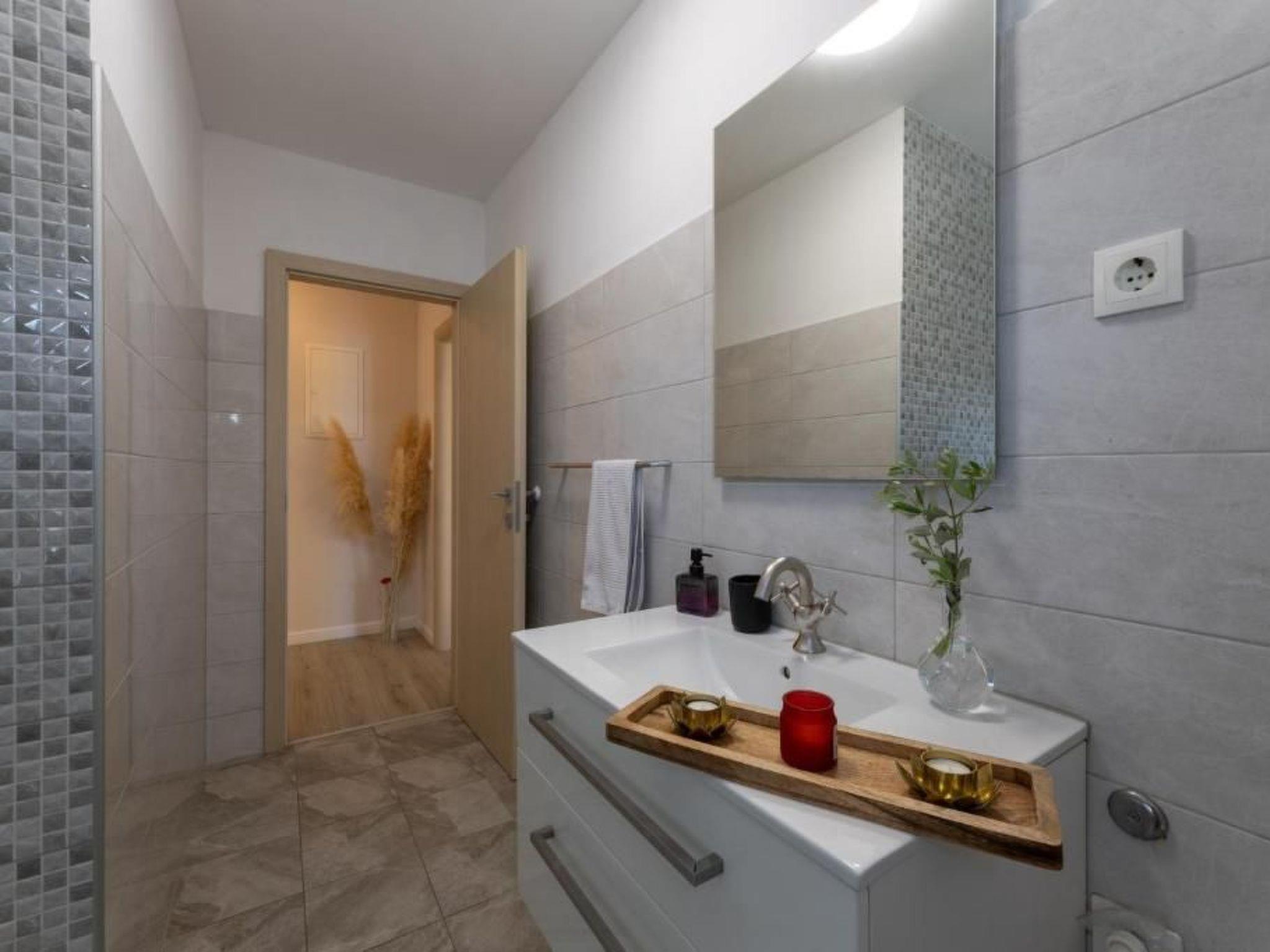 First bedroom contains 1 double bed, its own shower, makeup table and exit to balcony. Second bed contains one single bed and exit to balcony and third bed contains one double bed. There is also one full bathroom and 1 half bathroom (toilet with a sink), laundry area, TV, air conditioning and exit to balcony with a sea view. Also, there is a fully modern equipped kitchen, dining area and a comfortable living room with flat screen TV, library and cozy sofa bed.