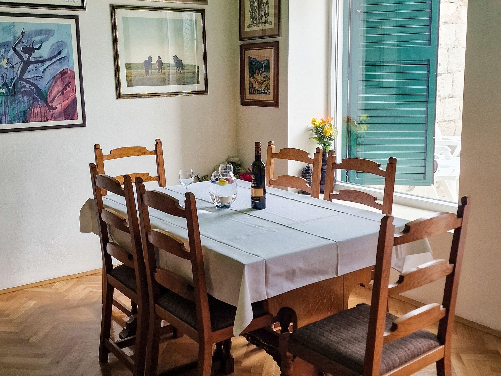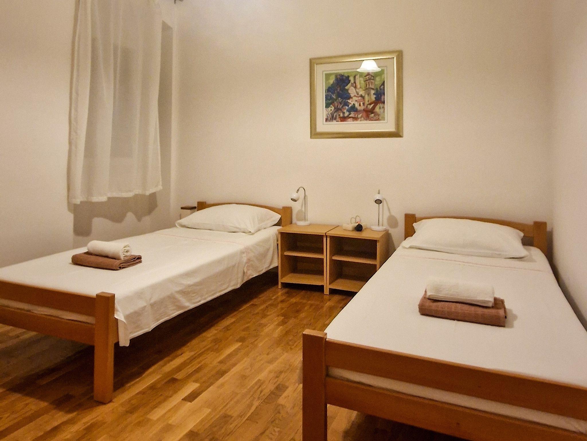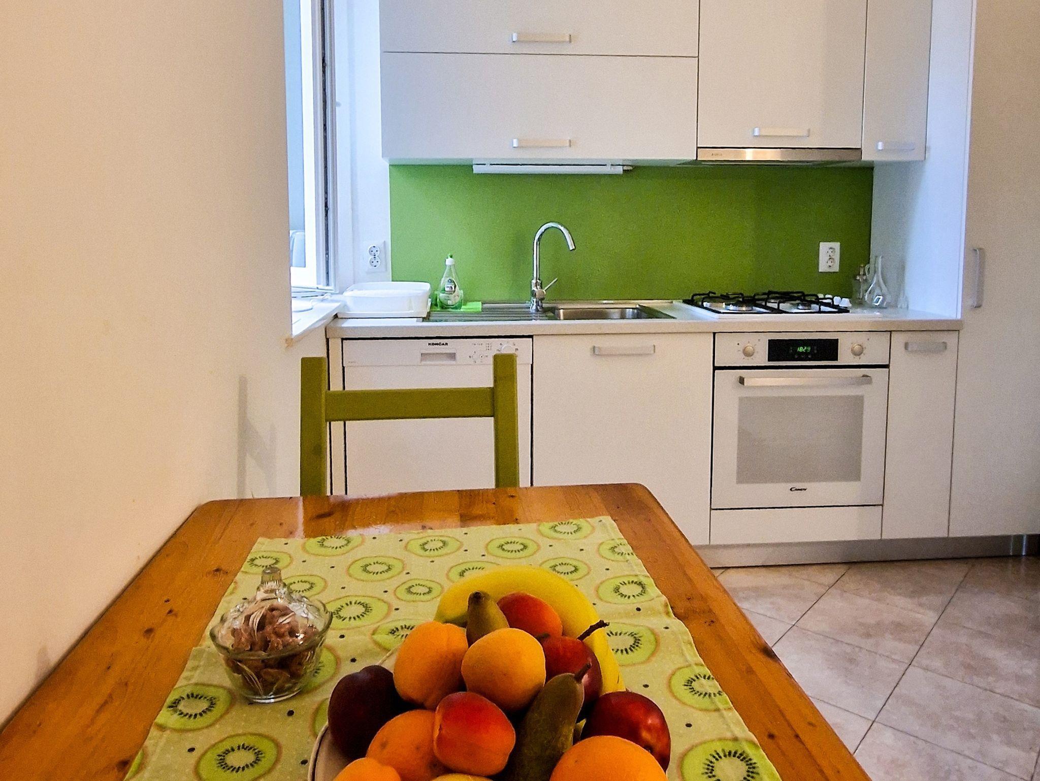 Ferienwohnung bietet Platz für 6 Gäste. Die Betten sind in Schlafzimmern, die es 2 gibt, und in Wohnzimmer, innerhalb einer Gesamtfläche von 76m2, angeordnet. Die Gäste haben eine eigene Terrasse zur Verfügung, auf der sie in warmen Sommernächten genießen können. Das Apartment bietet Meerblick. Für vollen Genuss und Entspannung gibt es einen privaten Grill für Gäste dieser Unterkunft. In der Unterkunftseinheit besteht die Möglichkeit des Mitbringens von Haustieren gegen Aufpreis. IM PREIS INBEGRIFFEN: Kurtaxe, Endreinigung, Klimatisierung, Internet, Kinderbett, Bügeleisen, Bügelbrett, Föhn. UNVERBINDLICHE ZUSÄTZLICHE KOSTEN: Haustiere (15,00 € pro Nacht). Die Verfügbarkeit zusätzlicher Dienstleistungen in Ihrem reservierten Termin und die Preise derselben (falls nicht aufgeführt) müssen im Voraus überprüft werden. Zusätzliche Dienstleistungen die in der Zahlungsaufforderung nicht aufgeführt sind werden direkt beim Vermieter bezahlt, angenommen der Gast nutzt auch diese.