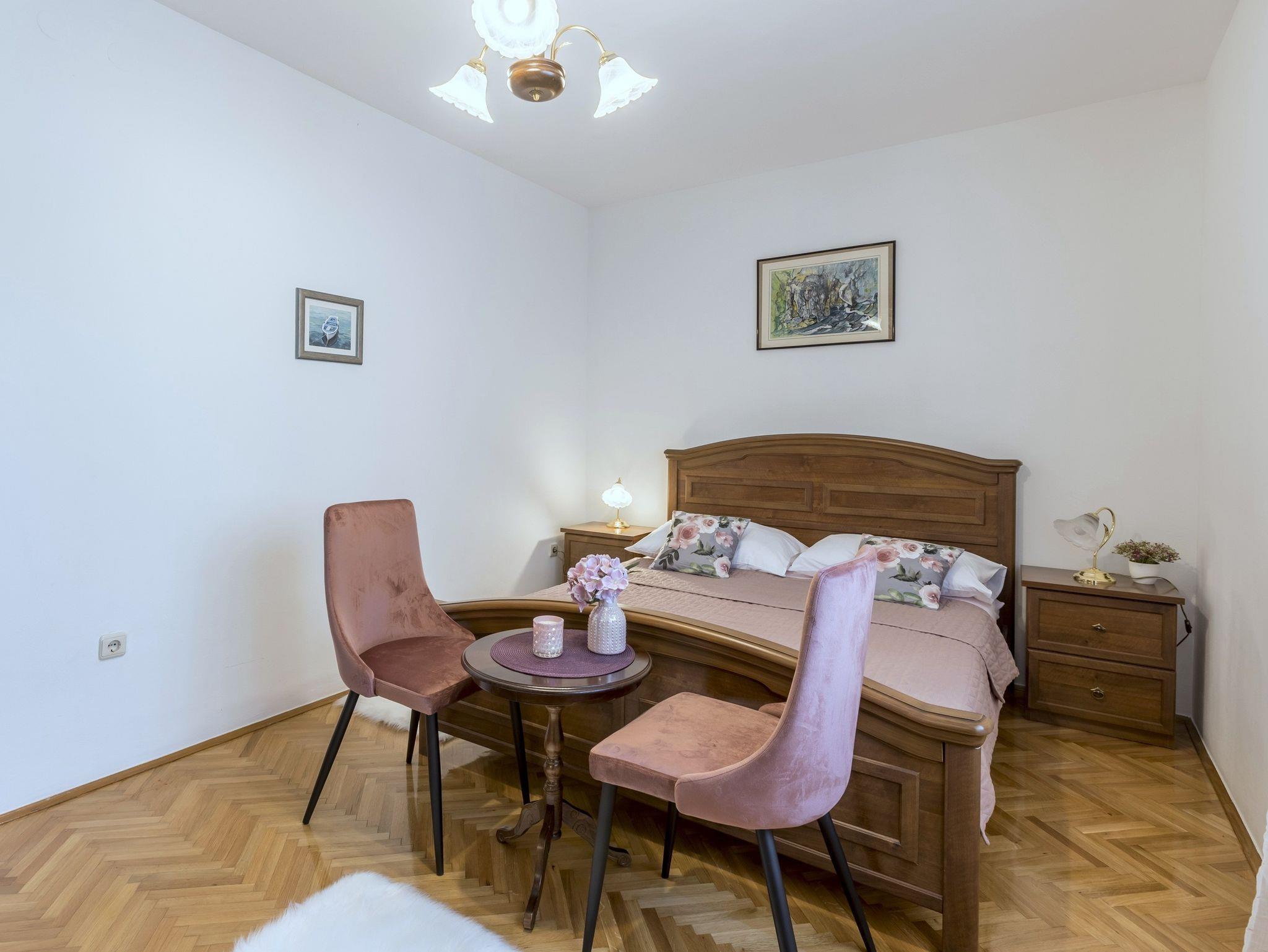 Ferienwohnung bietet Platz für 6 Gäste. Die Betten sind in Schlafzimmern, die es 3 gibt, innerhalb einer Gesamtfläche von 99m2, angeordnet. Die Gäste haben einen eigenen Balkon zur Verfügung, auf der sie in warmen Sommernächten genießen können. Es ist erlaubt, Speisen auf dem Gemeinschafts-Grill vorzubereiten. In der Unterkunftseinheit besteht die Möglichkeit des Mitbringens von Haustieren, und die Dienstleistung ist im Preis der Unterkunft enthalten. IM PREIS INBEGRIFFEN: Kurtaxe, Endreinigung, Klimatisierung, Parkplatz, Internet, Haustiere, Kinderbett, Zusatzbett, Bügeleisen, Bügelbrett, Föhn, tragbarer Grill. Die Verfügbarkeit zusätzlicher Dienstleistungen in Ihrem reservierten Termin und die Preise derselben (falls nicht aufgeführt) müssen im Voraus überprüft werden. Zusätzliche Dienstleistungen die in der Zahlungsaufforderung nicht aufgeführt sind werden direkt beim Vermieter bezahlt, angenommen der Gast nutzt auch diese.