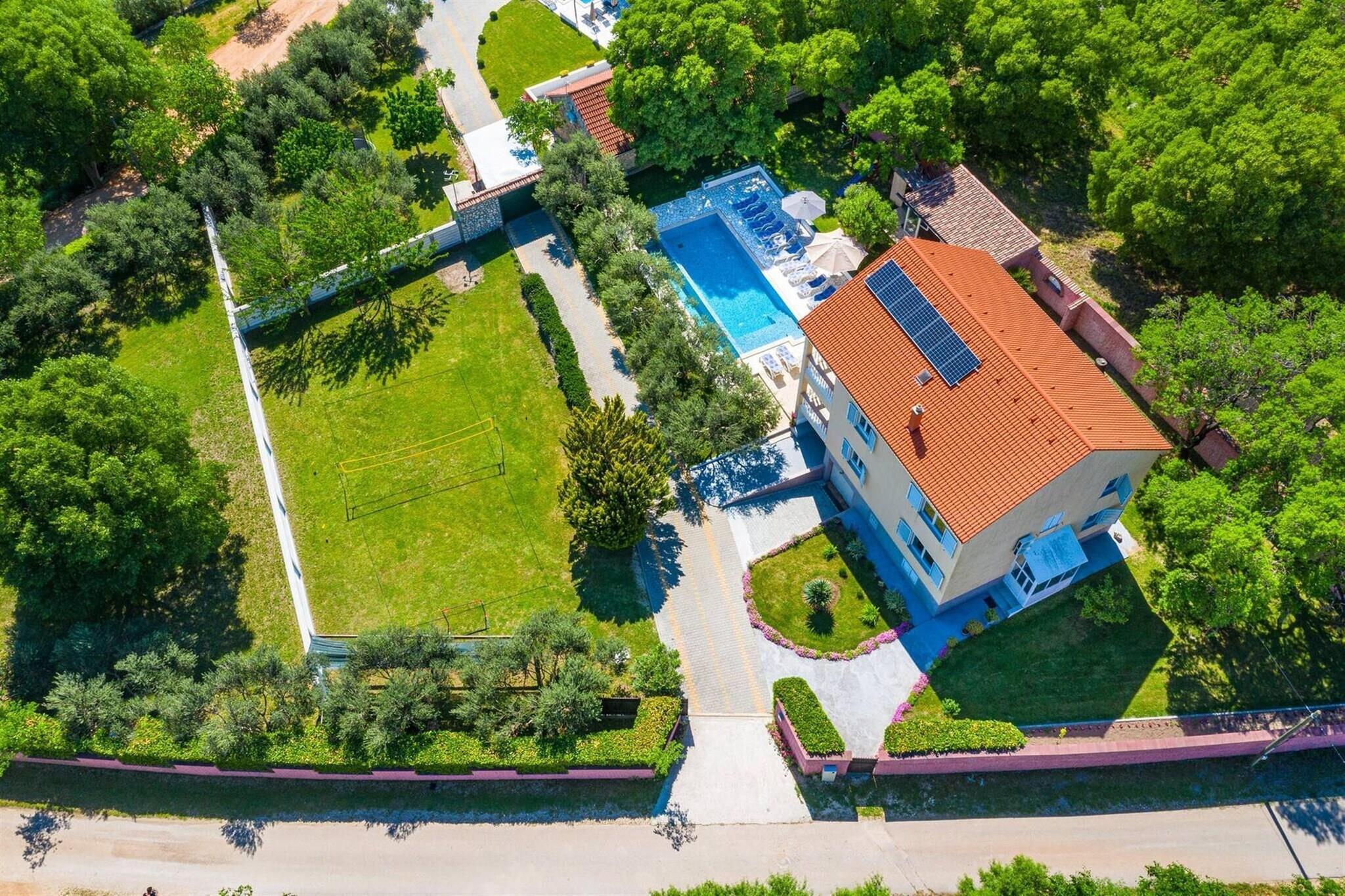 Beliggende i den rolige landsby Kakma, kun 7 km fra strandene i Biograd, tilbyder dette charmerende feriehus den perfekte kombination af afslapning og rekreation for familier eller grupper. Beliggende på en privat ejendom omgivet af grønne områder, tilbyder feriehuset Blanka privatliv, plads og komfort til op til 12 personer. Den rolige beliggenhed kombineret med nem adgang til kysten og nærliggende attraktioner gør det til det perfekte sted for en stressfri ferie i Dalmatien. Villaens 260 m² store indre er fordelt på to fuldt udstyrede etager og omfatter 5 klimatiserede soveværelser, 3 moderne badeværelser, 2 køkkener og en stor, lys stue. Hver etage åbner ud mod en overdækket terrasse med udendørs spiseplads, der er perfekt til familiemåltider i det fri. Det smagfuldt indrettede interiør tilbyder alle hjemmets bekvemmeligheder og afspejler samtidig den afslappende middelhavsatmosfære. Udenfor kan gæsterne benytte sig af en privat infinity-pool på 55 m² med liggestole, sommerkøkken, grilludstyr og en rummelig spiseplads. Der er også en legeplads og en multifunktionel sportsplads, der sikrer masser af underholdning for alle aldre. Naturelskere vil helt sikkert sætte pris på nærheden til Vrana-søen, der er kendt for sine muligheder for fiskeri og fugleobservation, og der sejler dagligt både fra Biograd til Kornati Nationalpark. Med sin beliggenhed mindre end 30 minutters kørsel fra Zadar og Šibenik er feriehuset Blanka det perfekte udgangspunkt for at udforske den dalmatiske kyst, opleve kulturen og beundre landskabet i fuld komfort.