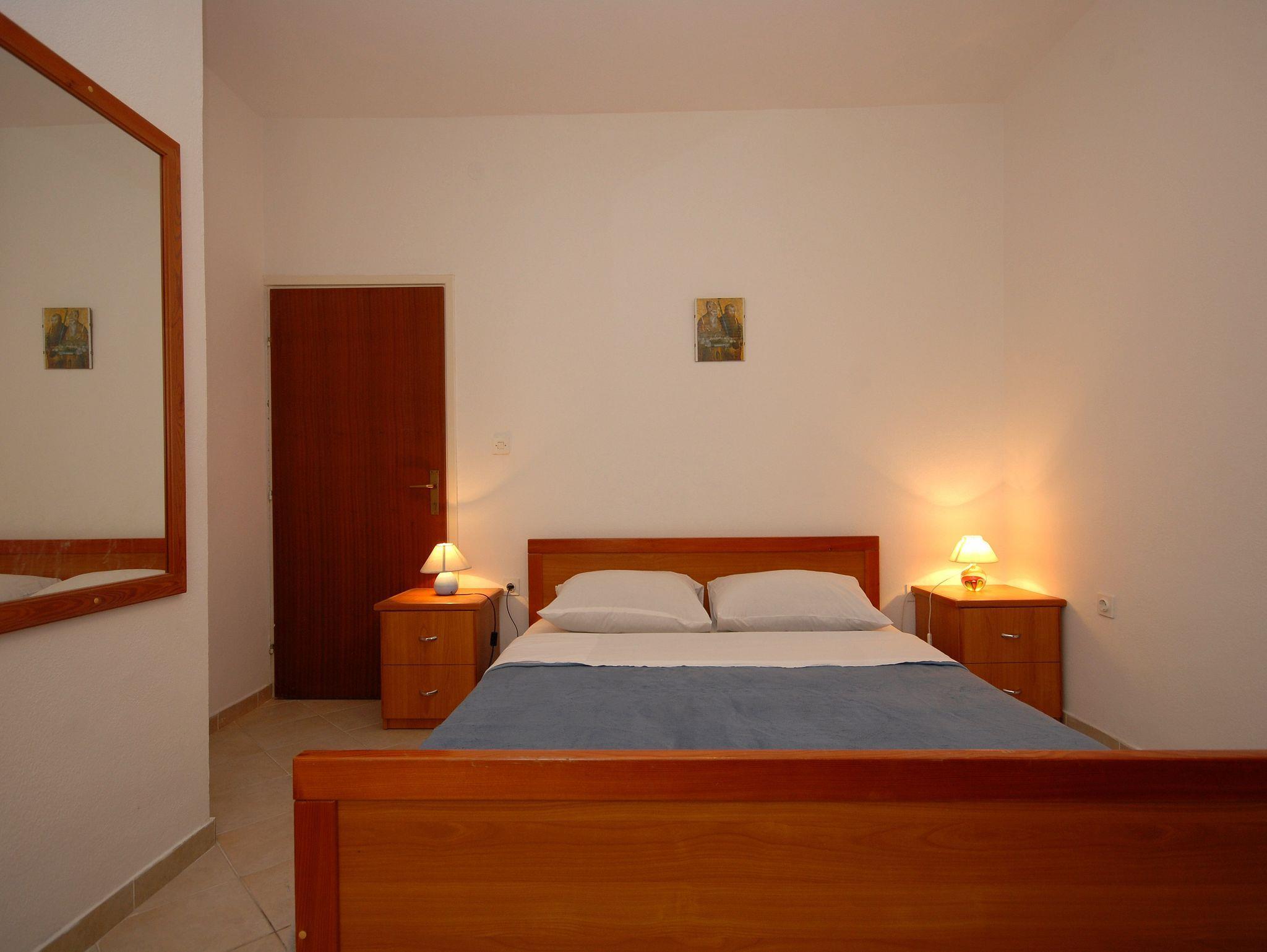 Ferienwohnung bietet Platz für 6 Gäste. Die Betten sind in Schlafzimmern, die es 3 gibt, innerhalb einer Gesamtfläche von 56m2, angeordnet. Die Gäste haben einen eigenen Balkon zur Verfügung, auf der sie in warmen Sommernächten genießen können. Das Apartment bietet Meerblick. Es ist erlaubt, Speisen auf dem Gemeinschafts-Grill vorzubereiten. Während ihres Aufenthalts können Gäste das gemeinsam zur Nutzung stehende Schwimmbad benutzen. IM PREIS INBEGRIFFEN: Kurtaxe, Endreinigung, Pool, Parkplatz, Internet, Kinderbett, 1 Bett für Kinder (im Preis enthalten). VERBINDLICHE ZUSÄTZLICHE KOSTEN: Aufzahlung für Kurzaufenthalte (prozentualer Zuschlag pro Nächtigungsanzahl: 30% - 1, 20% - 2, 10% - 3). UNVERBINDLICHE ZUSÄTZLICHE KOSTEN: Klimatisierung (0,50 € pro Stunde), Wäschewaschen (5,00 € Waschen). Die Verfügbarkeit zusätzlicher Dienstleistungen in Ihrem reservierten Termin und die Preise derselben (falls nicht aufgeführt) müssen im Voraus überprüft werden. Zusätzliche Dienstleistungen die in der Zahlungsaufforderung nicht aufgeführt sind werden direkt beim Vermieter bezahlt, angenommen der Gast nutzt auch diese.
