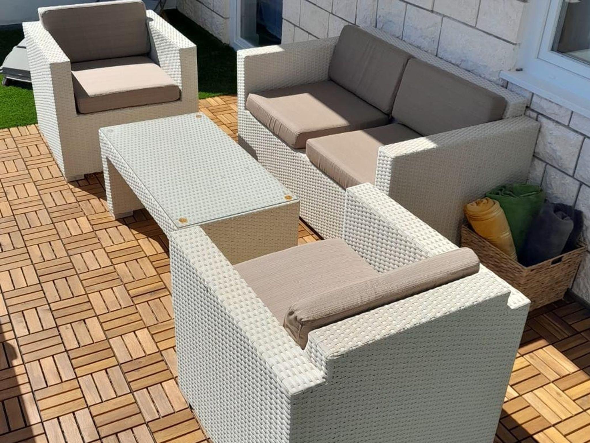 Ferienwohnung bietet Platz für 4 Gäste. Die Betten sind in Schlafzimmern, die es 2 gibt, innerhalb einer Gesamtfläche von 58m2, angeordnet. Die Gäste haben eine eigene Terrasse zur Verfügung, auf der sie in warmen Sommernächten genießen können. Das Apartment bietet Meerblick. Es ist erlaubt, Speisen auf dem Gemeinschafts-Grill vorzubereiten. In der Unterkunftseinheit besteht die Möglichkeit des Mitbringens von Haustieren gegen Aufpreis. IM PREIS INBEGRIFFEN: Kurtaxe, Endreinigung, Klimatisierung, Parkplatz, Internet, Kinderbett, Bügeleisen, Bügelbrett, Föhn. UNVERBINDLICHE ZUSÄTZLICHE KOSTEN: Haustiere (10,00 € pro Nacht). Die Verfügbarkeit zusätzlicher Dienstleistungen in Ihrem reservierten Termin und die Preise derselben (falls nicht aufgeführt) müssen im Voraus überprüft werden. Zusätzliche Dienstleistungen die in der Zahlungsaufforderung nicht aufgeführt sind werden direkt beim Vermieter bezahlt, angenommen der Gast nutzt auch diese. Ermäßigung auf den Grundpreis: Gratistag 14=13 (bei einem Aufenthalt von 14 Tagen oder mehr erhalten Sie einen Gratistag für den Aufenthalt bis 31.12.26).