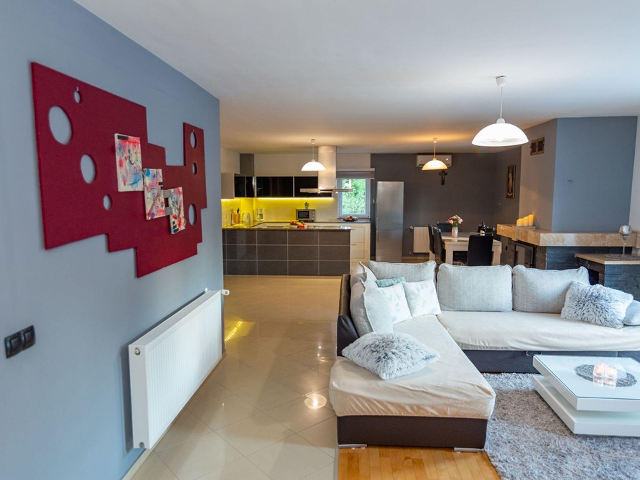 Large outdoor terrace is where you will spend most of the time relaxing on sun loungers or sunbathing in a 32 m2 pool with freshwater which is a cool refreshment on a warm summer days. Right next to it a beautiful fireplace with dining area that is perfect for barbecuing, a tennis table and a lounge corner, all exclusively for you. On the south side of the property you will find the playground with soccer goals and a badminton net.