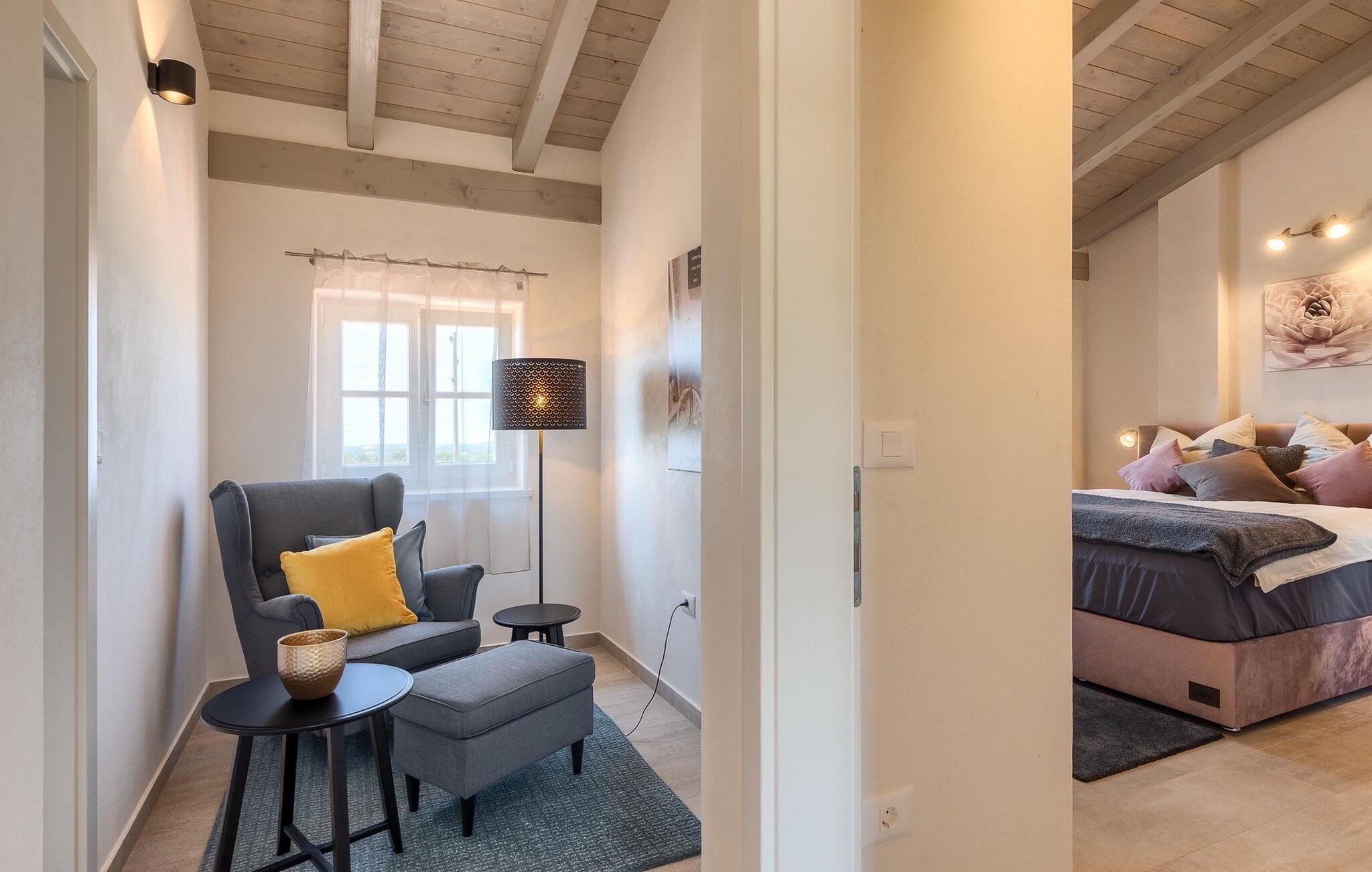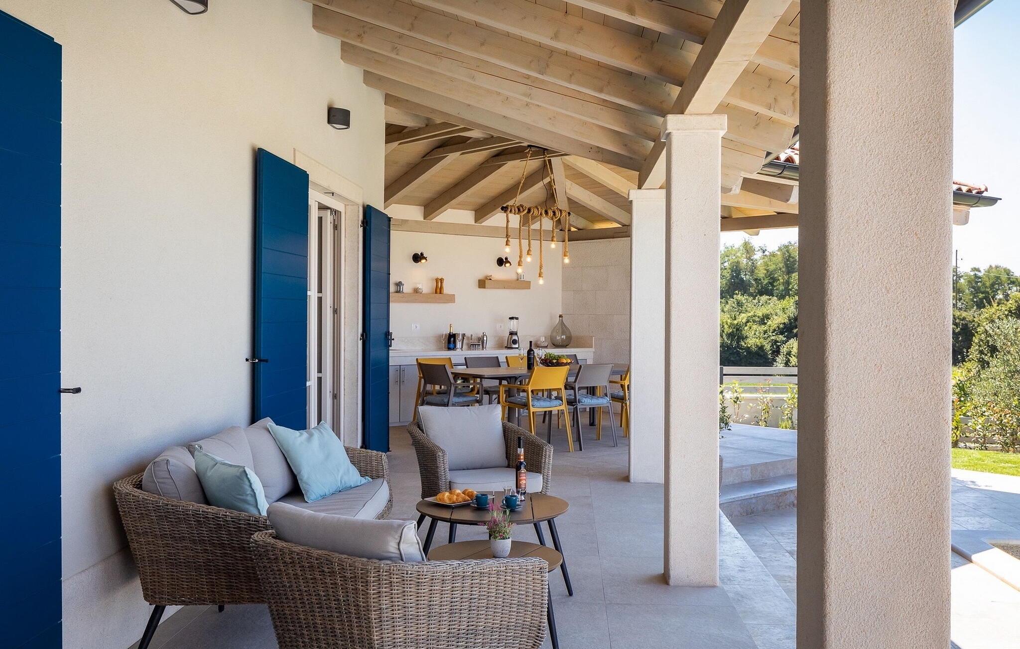 Villa MiLuMaMaNi er en charmerende familievilla i centrum af Istrien, kun en kort køretur fra kystbyen Rovinj. Den moderne villa er opdelt i to etager. Alt er indrettet i en meget varm stil og giver dig en følelse af hjem. Villaen har i alt 4 veludstyrede soveværelser og kan rumme op til 10 personer. To soveværelser er på første sal, mens de to andre soveværelser er i stueetagen. Alle værelser har tv, aircondition og eget badeværelse. Den åbne stueetage består af et moderne og fuldt udstyret køkken med spiseplads og en hyggelig stue med pejs. Villaen er meget lys takket være de store vinduer og døre.
