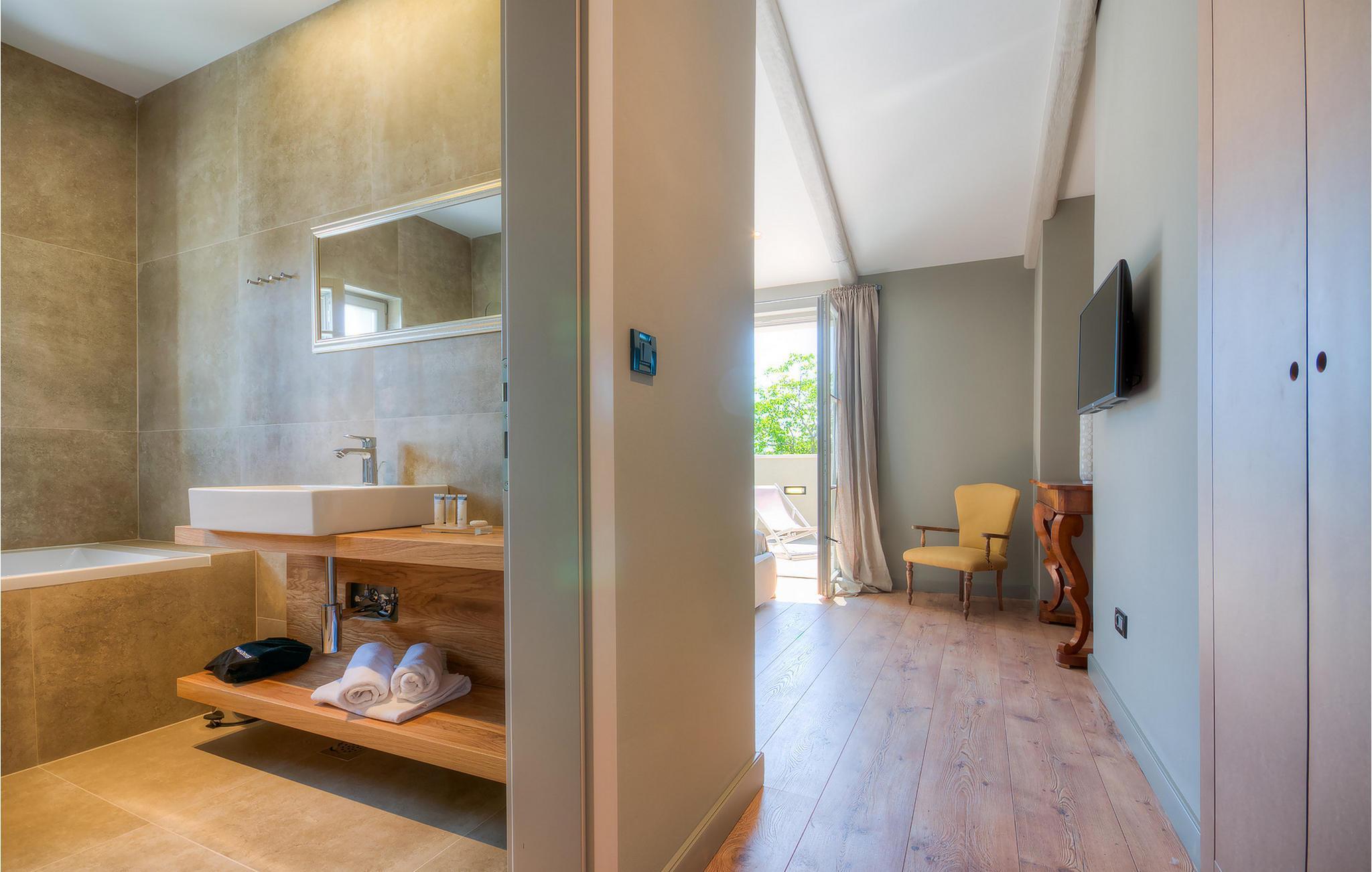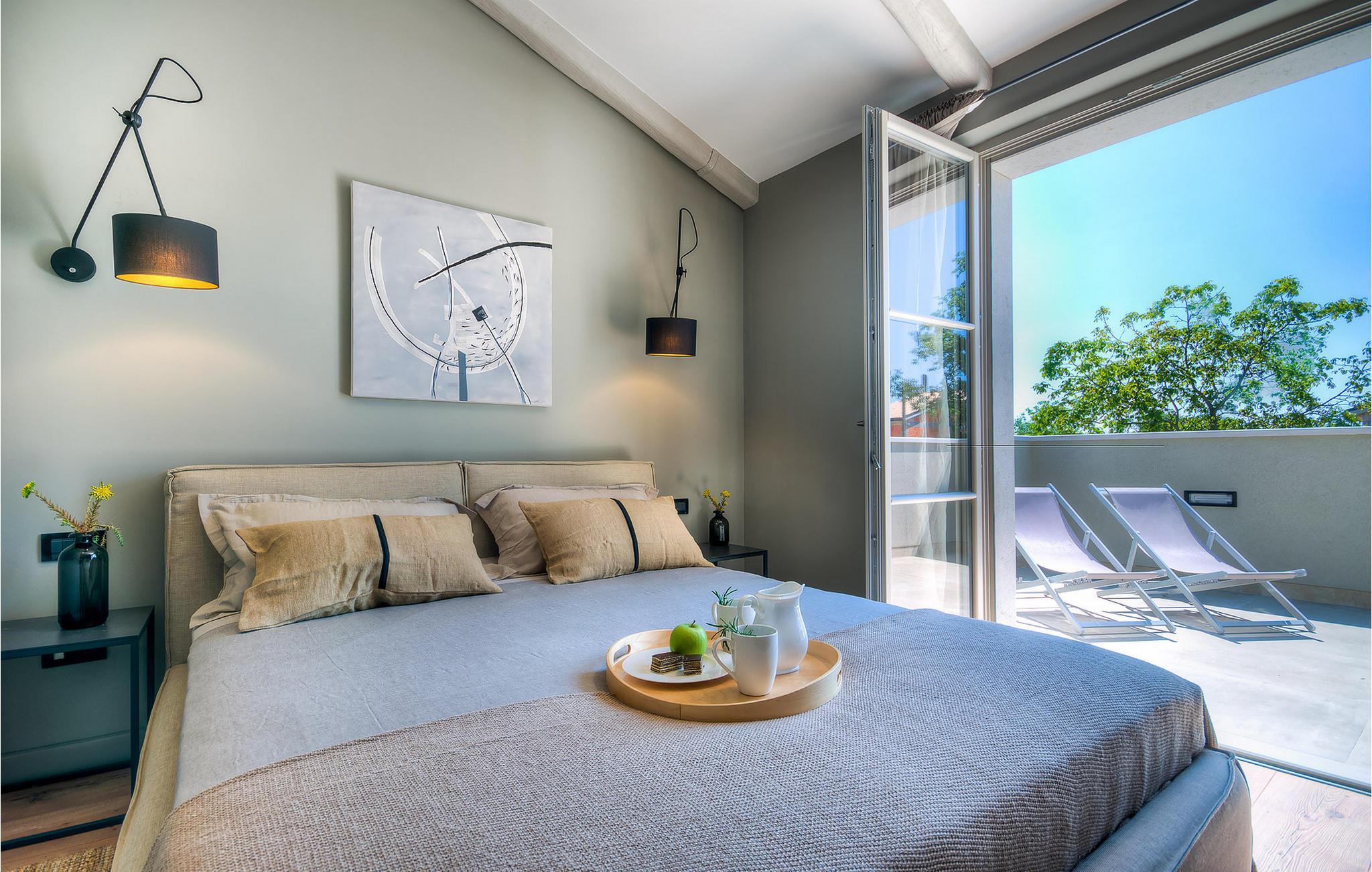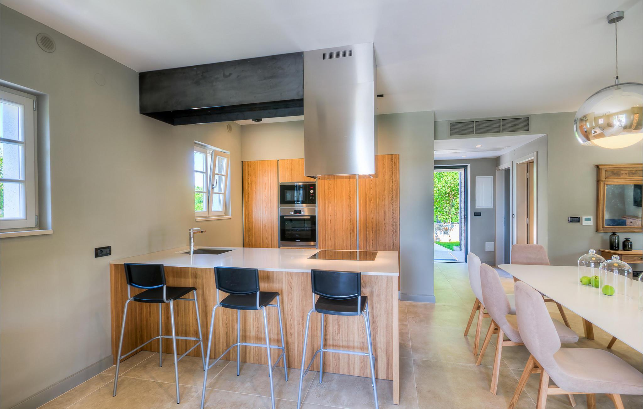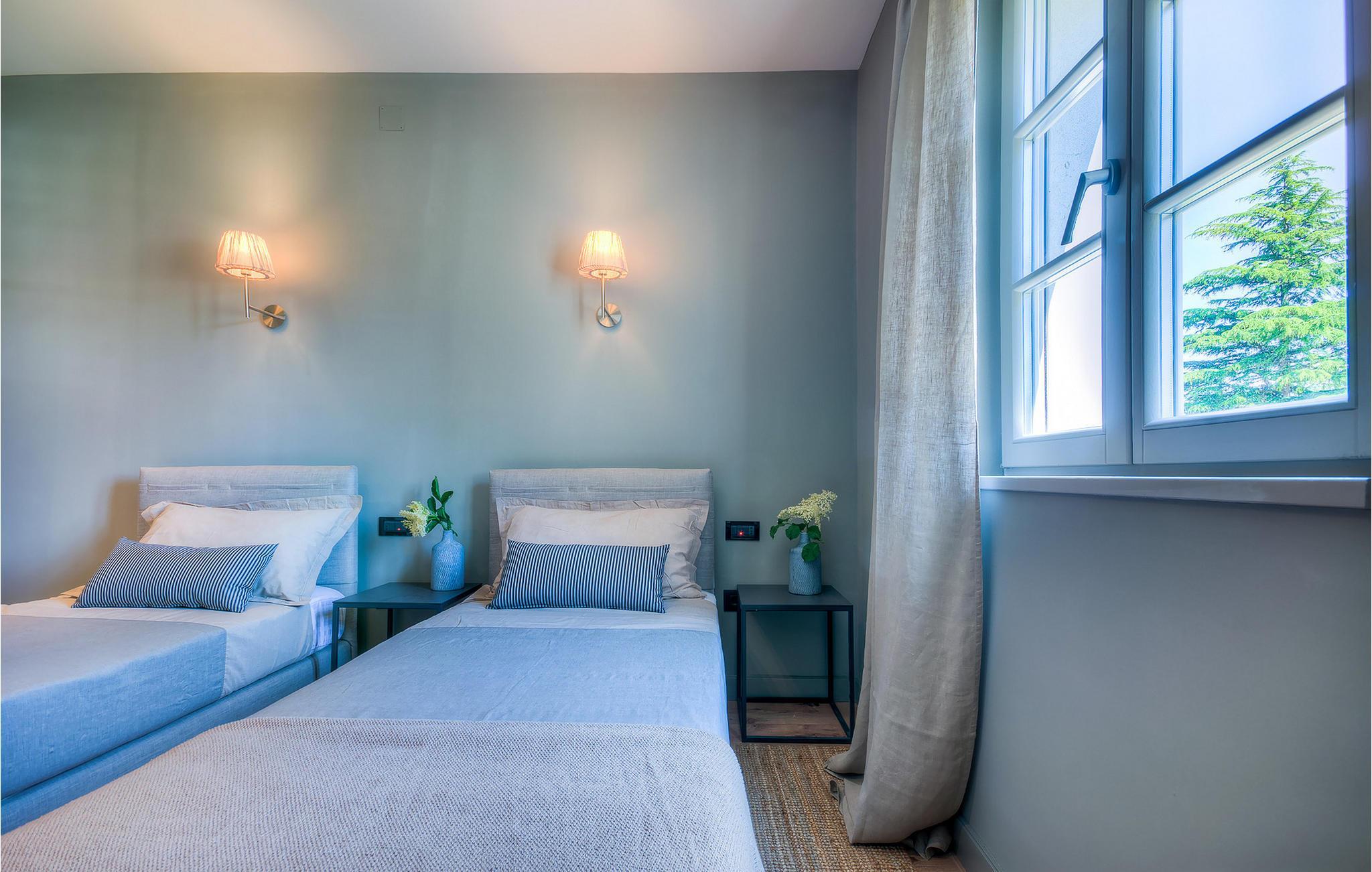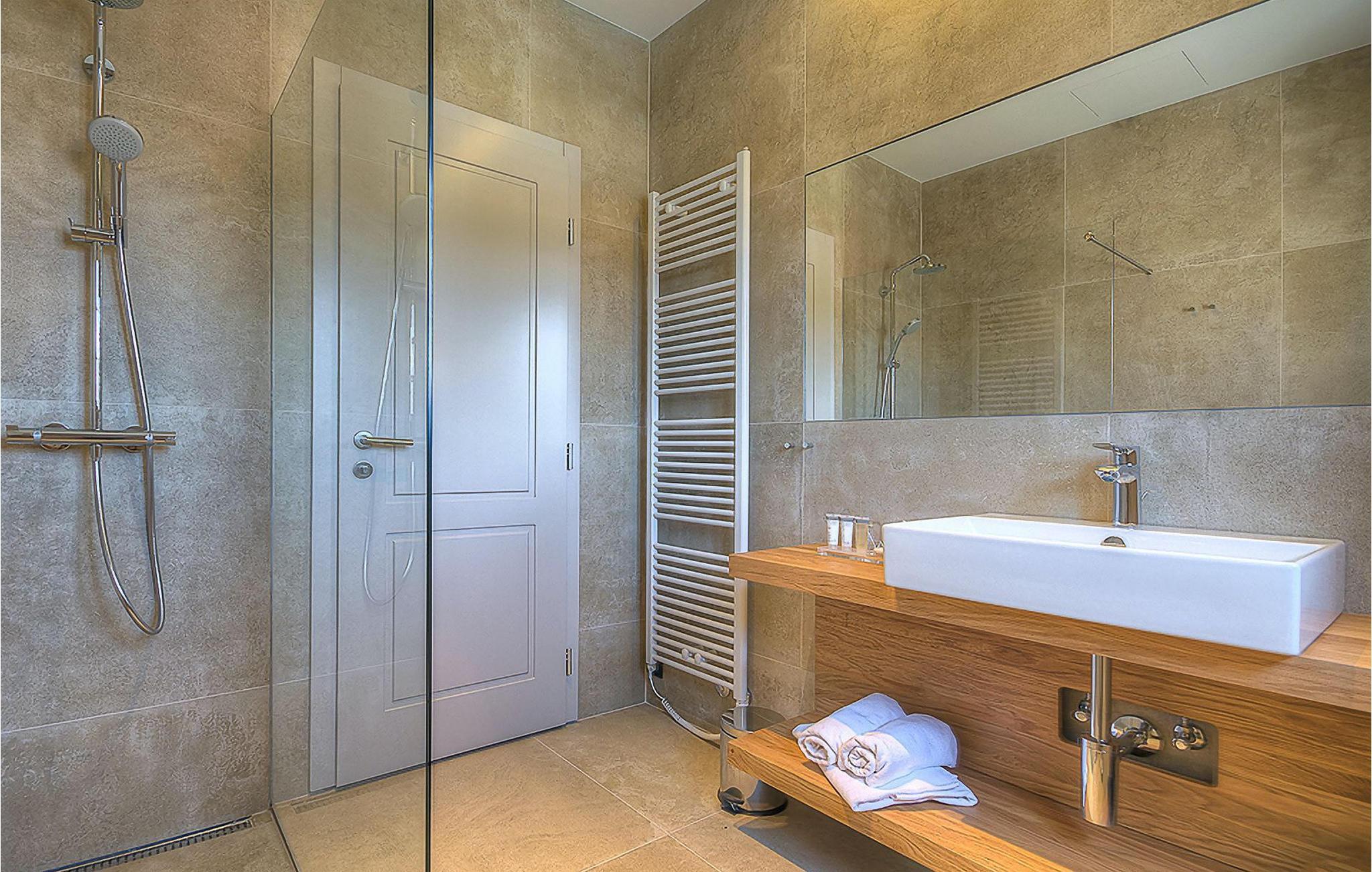 Hvis du ønsker at opleve noget særligt, nedsænket dybt i det billedskønne Istriske landskab i komfort og stil, kunne den dejlige Villa Mia ikke være et bedre valg. Beliggende i en smukt velholdt rummelig have med velplejede græsplæner med cypresser og en indbydende swimmingpool med solterrasse, kan denne pragtfulde ejendom ikke undgå at imponere. De fritlagte stenvægge, smukke skodder og en hyggelig veranda med indbygget grill, al fresco spisestue og loungeområde giver et dejligt førstehåndsindtryk, mens interiøret mere end lever op til dets regning. Udsøgt designet overalt med en blanding af højkvalitets moderne og vintage møbler, iøjnefaldende belysning og store franske vinduer, der holder rummene særligt lyse og luftige, huset har en varm, afslappende følelse, der omfatter både traditionel og moderne smag. I stueetagen dominerer et smukt, aflangt rum opdelt i opholds-, spise- og køkkenområder med en elegant designet pejs og en behagelig sofa til at synke ned i og udveksle historier om dagens aktiviteter. Et af de fire udsøgt møblerede soveværelser ligger i stueetagen, mens de tre andre er fordelt på øverste etage, og alle nyder godt af at have et fladskærms-tv og et smukt indrettet badeværelse. Der er også en smuk balkon på første sal, hvorfra du kan nyde den fantastiske udsigt over landskabet. Villa Mia kan varmt anbefales, ikke kun som en base for at opdage Istriens indiskutable charme, men også for familier, der ønsker at have det sjovt og slappe af i luksuriøse omgivelser. Beliggende lige mellem de tre charmerende små middelalderbyer Žminj, Svetvincenat og Kanfanar, kunne denne ejendom ikke være bedre designet og placeret til en ferie, der kombinerer dovne dage med dolce far niente med sightseeing i nogle af de smukkeste områder i Istrien. De maleriske middelalderbyer på en bakketop, traditionelle landlige landsbyer, hvor tiden har stået stille, og landskaber af uovertruffen skønhed er ideelle til naturskønne køreture, cykling og gåture. Lækkert traditionelt køkken og vin i verdensklasse, som denne region er kendt for, tilføjer de sidste ingredienser til en mindeværdig ferie. Uanset hvor du går, vil lokalbefolkningen tilbyde en vidunderlig varm velkomst i denne fascinerende region. Du kan også købe dagligvarer direkte fra de lokale producenter. Og hvis du er i humør til en anderledes slags action, er det krystalklare Adriaterhav med sine smukke strande, samt de travle turist-hot spots kun en kort køretur væk.