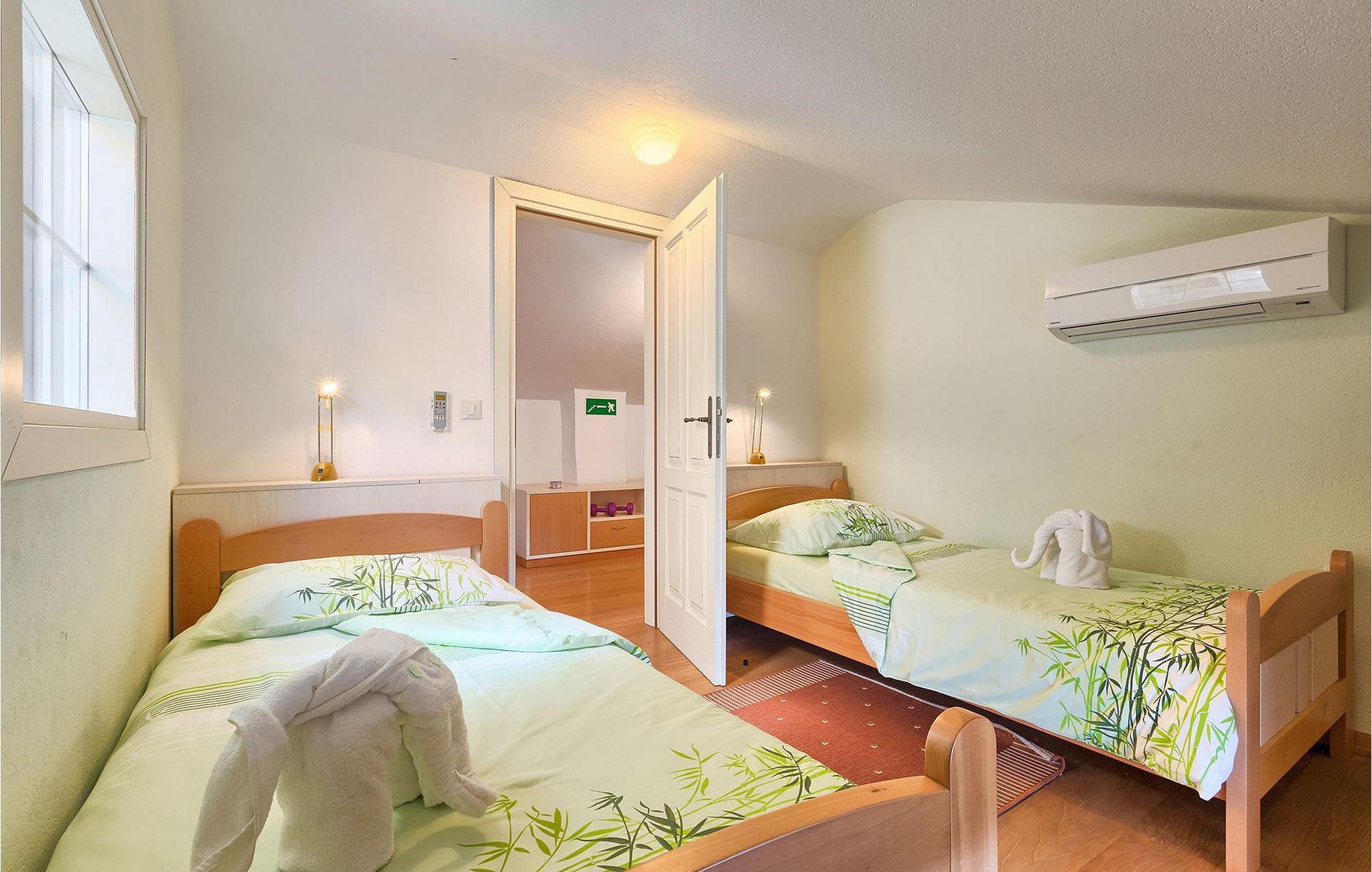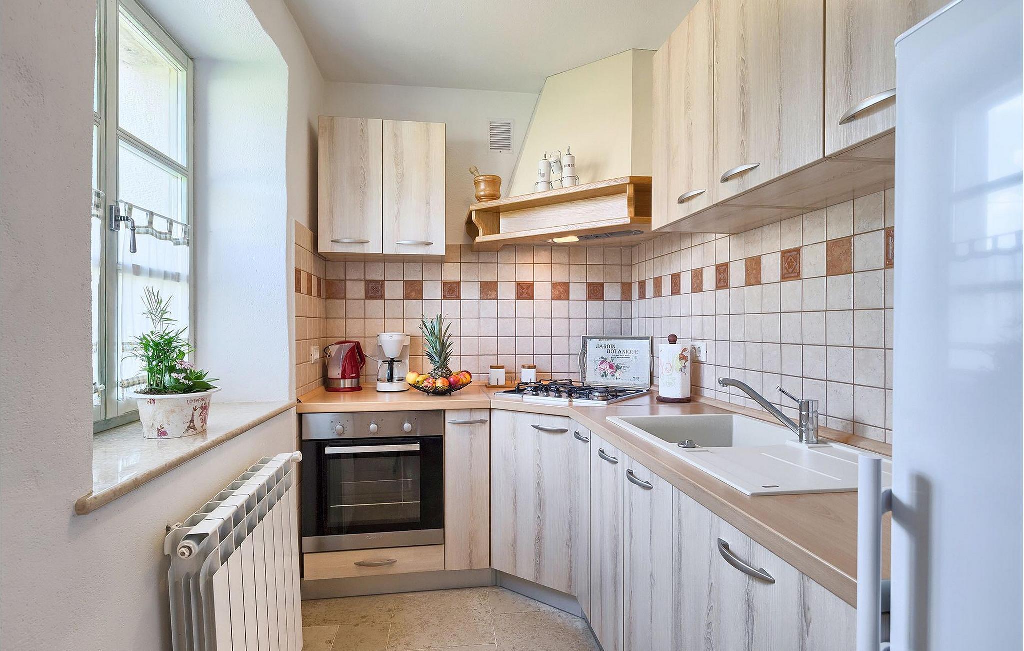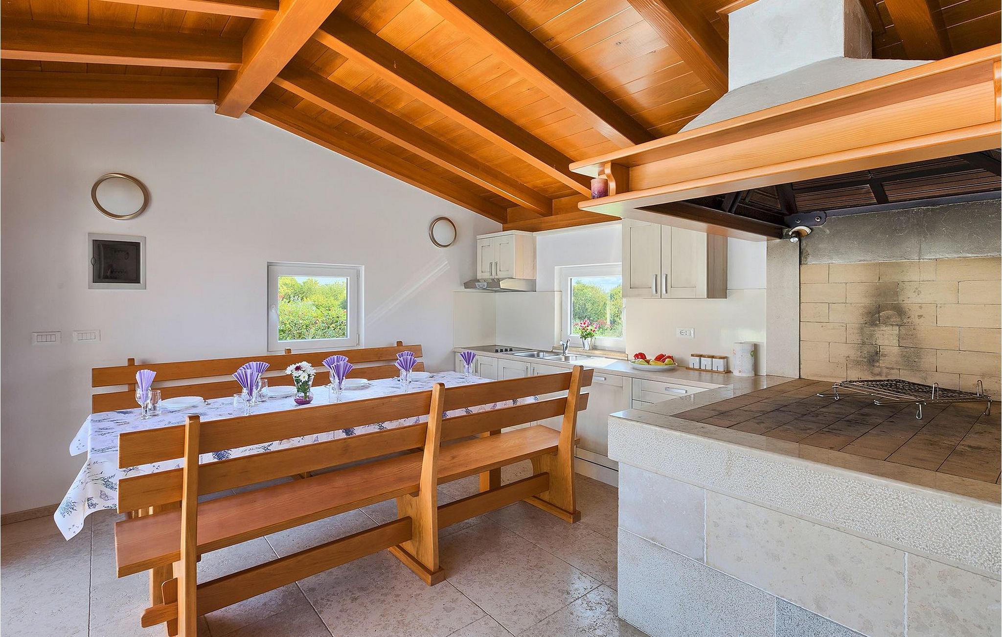 Denne charmerende ejendom kan rumme op til 8 personer i 4 dejligt indrettede soveværelser (2 med dobbeltsenge og 2 med 2 enkeltsenge) og en ekstra sovesofa på øverste etage. Alle værelser har aircondition og nyudstyrede med LCD-tv. Stuen er rummelig og hyggelig og byder på komfort og afslapning. Opholdsstuen består af en komfortabel stue med sofa, spiseplads og et veludstyret køkken. Foran villaen er der en skøn overdækket terrasse, hvor du finder et stort spisebord til spisning under åben himmel. På den anden side af gaden, flere skridt væk, er en adskilt muret og indhegnet gårdhave med en swimmingpool, hvor du kan forfriske dig på varme sommerdage. Her finder du et fuldt udstyret sommerkøkken med stort spisebord samt grill. På ejendommen er der en børnegynge og bordtennis til din og dit barns underholdning. Denne ejendom er beliggende i den centrale del af halvøen Istrien, nær den lille by Kanfanar, mere præcist landsbyen Bubani. Den gamle arkitektur i Kanfanar og de omkringliggende landsbyer er velbevaret, og oliven dominerer dette område med et varmt middelhavsklima. Kanfanar og dets omkringliggende landskab er velkendt, ikke kun for sin historiske og kulturelle arv, men for fremragende ægte istriske køkken. Istrien er et unikt og fortryllet sted, der har budt velkommen til besøgende og bosættere fra alle dele af verden, så længe vi har nedtegnet historie. Byen Pula med dets romerske amfiteater og Brijuni nationalpark med en 18-hullers golfbane ligger kun 20 minutters kørsel derfra. Gode restauranter og taverner kan findes på kun en kort køretur i alle retninger. Det er et fantastisk sted at nyde maden, historien og trods alt at slappe af. Bil anbefales.