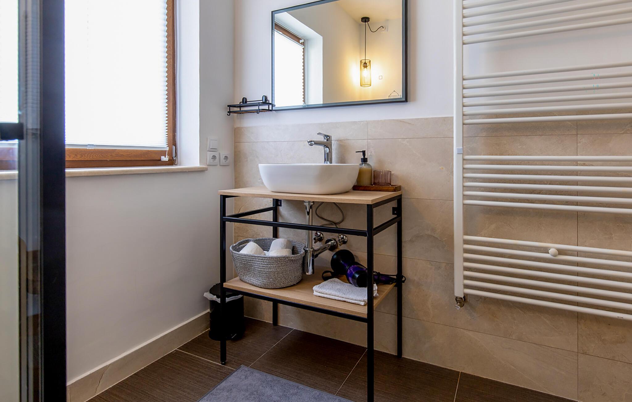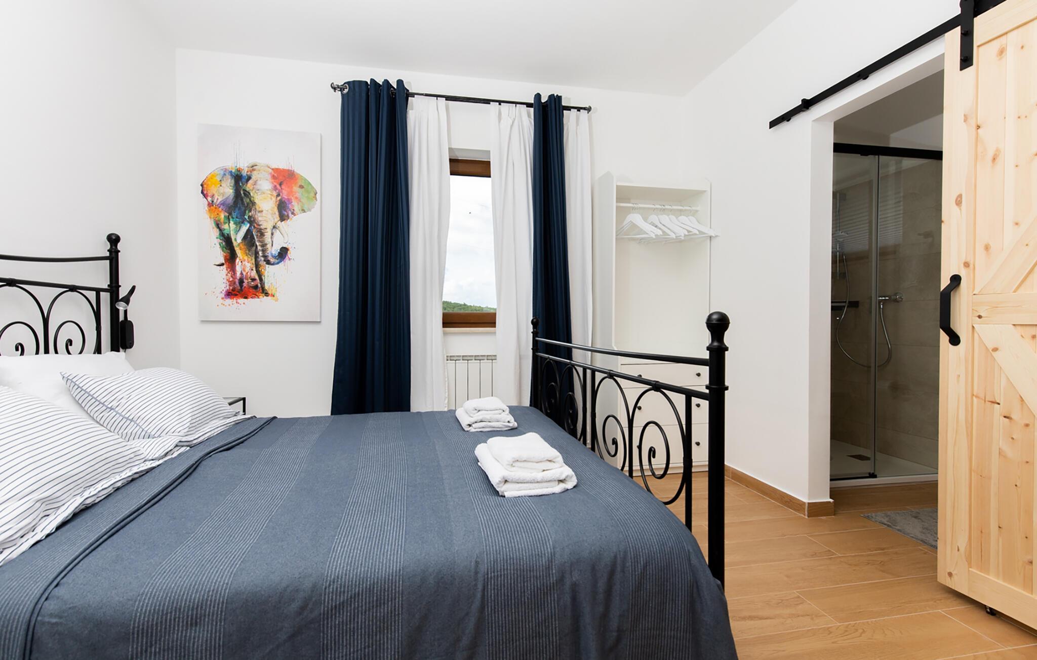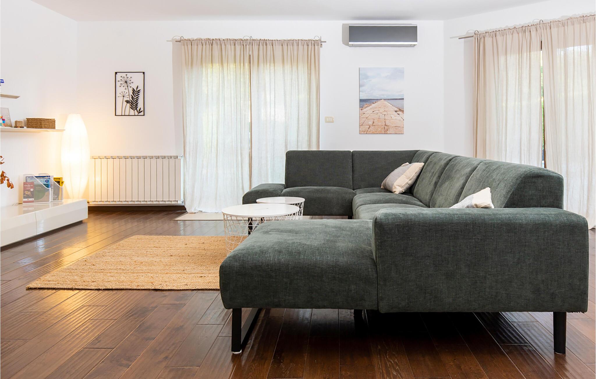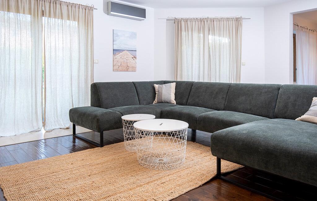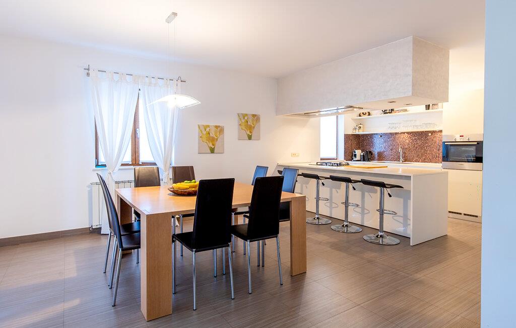 Kan du lide charmen ved rustikke stenvillaer, og alligevel vil du ikke undvære et moderne boligdesign? Så er Villa Vito Rovinj lige noget for dig. På i alt tre etager tilbyder denne villa plads til op til 8 personer og er ideel til en afslappende ferie. Villa Vito Rovinj er et charmerende istrisk landsted, som er blevet indrettet med kærlighed for detaljer. Materialer af høj kvalitet og en raffineret dekoration skaber en rolig atmosfære, der inviterer dig til at flygte fra hverdagens stress. På villaens første sal er der rummelig opholds- og spisestue med lyst køkken, soveværelse med dobbeltseng og badeværelse. På anden sal er der yderligere tre soveværelser, hvoraf to har en dobbeltseng i hvert værelse. Det ene værelse er udstyret med to enkeltsenge. Et rummeligt badeværelse fuldender anden sal. Et særligt højdepunkt kan findes i villaens kælder. Det rummelige underholdningsområde med massivt bord og ekstra køkken inviterer dig til at blive hængende. Nyd sociale aftener der med familie eller venner ved pejsen eller billardbordet. For sportsentusiaster er der også et fitnessområde i kælderen. Gæster, der nyder udendørs sport, vil helt sikkert nyde Villa Vito Rovinjs beliggenhed. Oplev de rolige og grønne omgivelser til fods og slap bagefter af i den private pool eller på en af de mange liggestole. Denne ejendom er beliggende i den centrale del af halvøen Istrien, nær den smukke by Rovinj. Den gamle arkitektur i Rovinj og de omkringliggende landsbyer er velbevaret, og oliven dominerer dette område med varmt middelhavsklima. Rovinj og det omkringliggende landskab er velkendt, ikke kun for sin historiske og kulturelle arv, men for fremragende og ægte istrisk køkken. Istrien er et unikt og fortryllet sted, der har budt velkommen til besøgende og bosættere fra alle dele af verden, så længe vi har nedtegnet historie. Byen Pula med dets romerske amfiteater og Brijuni nationalpark med en 18-hullers golfbane ligger kun 30 minutters kørsel derfra. Gode restauranter og taverner kan findes på kun en kort køretur i alle retninger. Det er et fantastisk sted at nyde maden, historien og trods alt at slappe af. Temperaturen i den opvarmede swimmingpool er afhængig af eksterne faktorer, herunder vejrforhold, og som sådan kan temperaturen på vandet ikke garanteres.