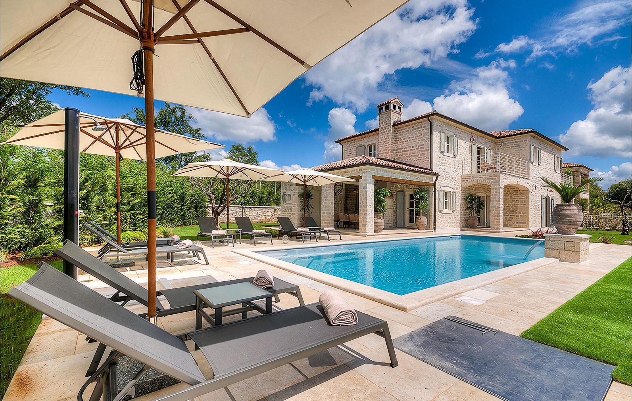 Diese traumhafte Villa, zusammen mit Villa Elli, Villa Nevia und Villa Zoe ist Teil eines Luxus-Projekts mit 5600 m2 Privatgrundstück, das den Gästen dieser 4 Villen einen Bio-Garten mit Saisongemüse, Open-Air-Fitness, 2 Tennisplätze, 2 Bocciaplätze, sowie Sportplätze für Handball, Fußball, Basketball und Volleyball bietet. Für ein echtes Erlebnis Istriens kann man auf dem Grundstück auch 3 Boskarins beobachten, weiß-graues langhörniges Rindvieh, das Symbol der Region.