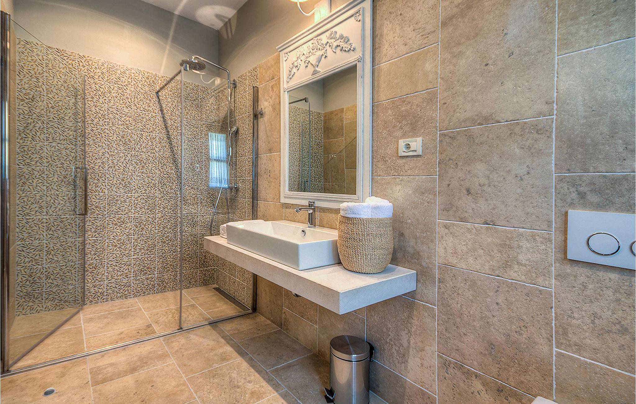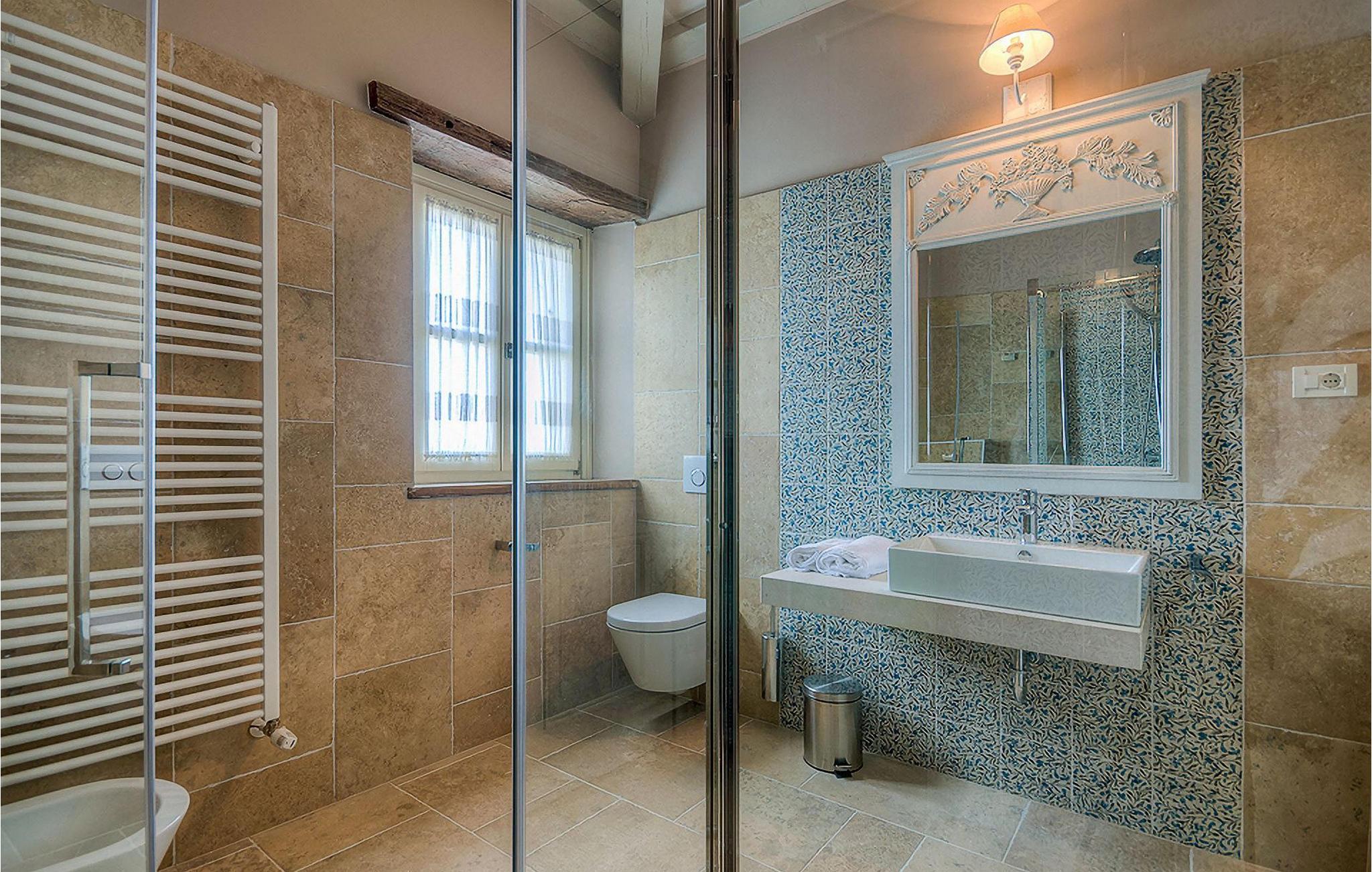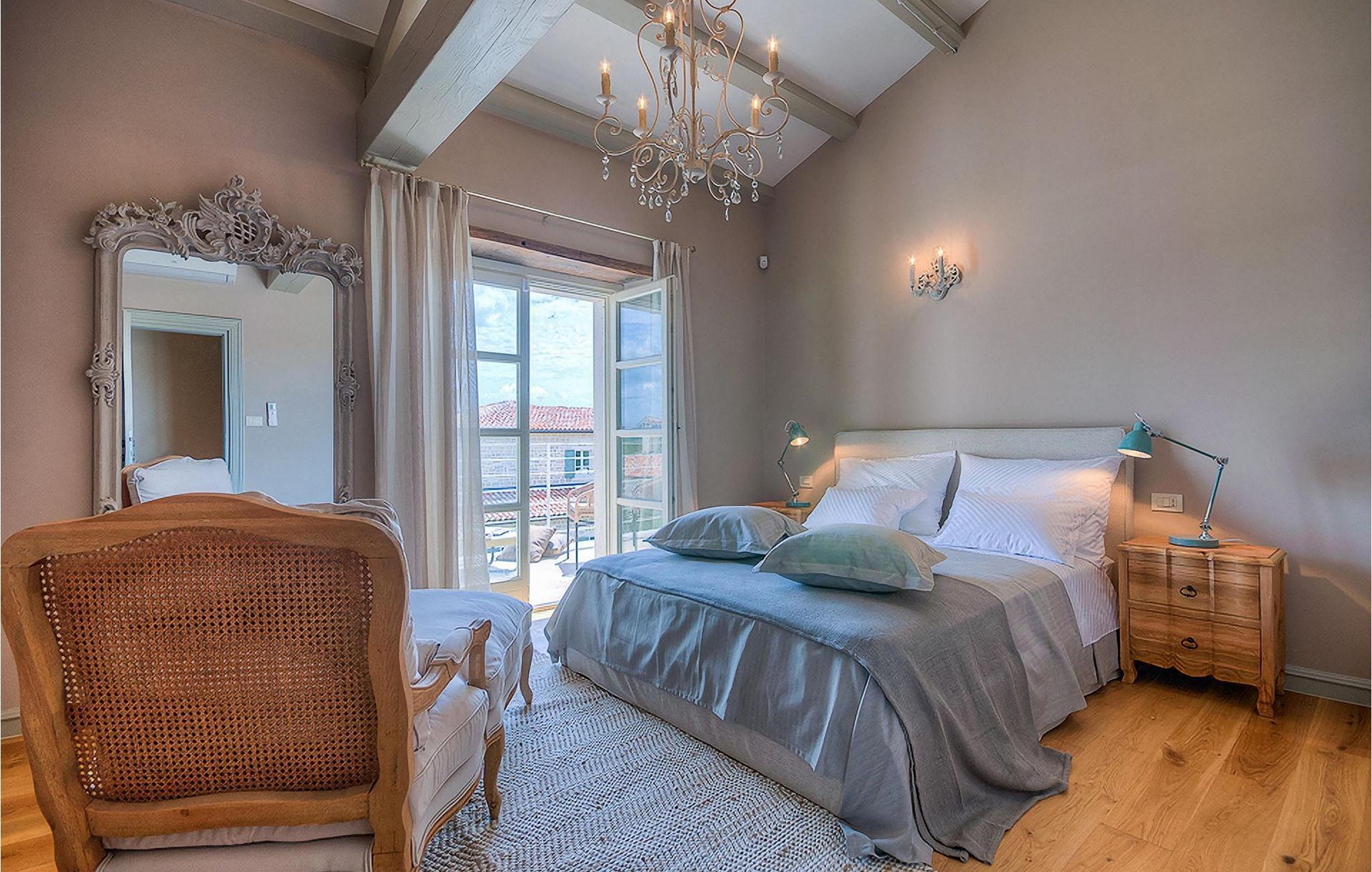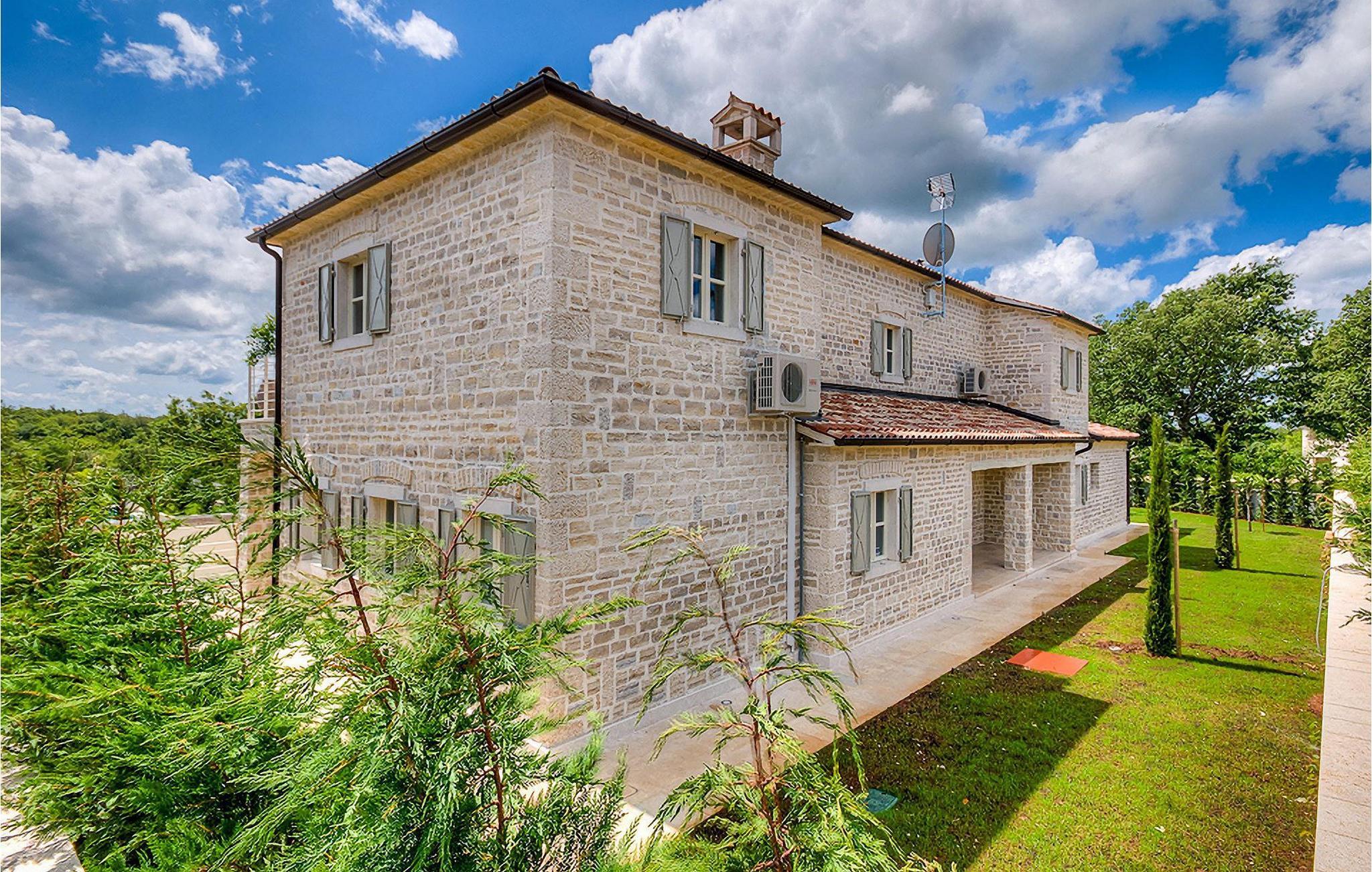 Elegant, stilvoll und hervorragend gelegen, inmitten der pittoresken Landschaft Istriens und doch noch in der Nähe von sonnigen Stränden und lebendigen Küstenstädten, bietet die Villa Elena luxuriöse Unterkunft, in der Sie jede Minute Ihres Urlaubs entspannt genießen können. Das Erdgeschoss ist ganz dem aufwändigen Verweilen gewidmet. Der herrliche großzügig ausgelegte Raum ist durch einen Steinbogen in Wohn-, Ess- und Kochbereiche verteilt, mit riesigen Fenstertüren, die eine Fülle an warmem istrischem Licht hineinbringen. Natursteinwände, Holzbalkendecken und der herrliche offene Kamin schaffen eine warme, gemütliche Atmosphäre, während die Mischung aus modernen und Vintage-Möbeln, sowie die exquisite Ausstattung Sie mit erstklassigem Komfort versorgen. Drei Schlafzimmer sind über die obere Etage verteilt, während das vierte im Erdgeschoss direkt auf den verlockenden Privatpool öffnen, der wunderbare Ort zum Erholen und Entspannen. Die hübsche, überdachte Veranda mit dem authentischen eingebauten Grill und einem großen Esstisch ist eine attraktive Zuflucht von der Sommerhitze, sowie der perfekte Ort für genussvolle Mahlzeiten im Freien.