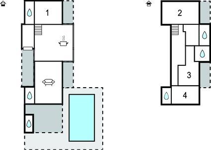 Badezimmer (nr. 4) - WC. Warmes und kaltes Wasser. Dusche