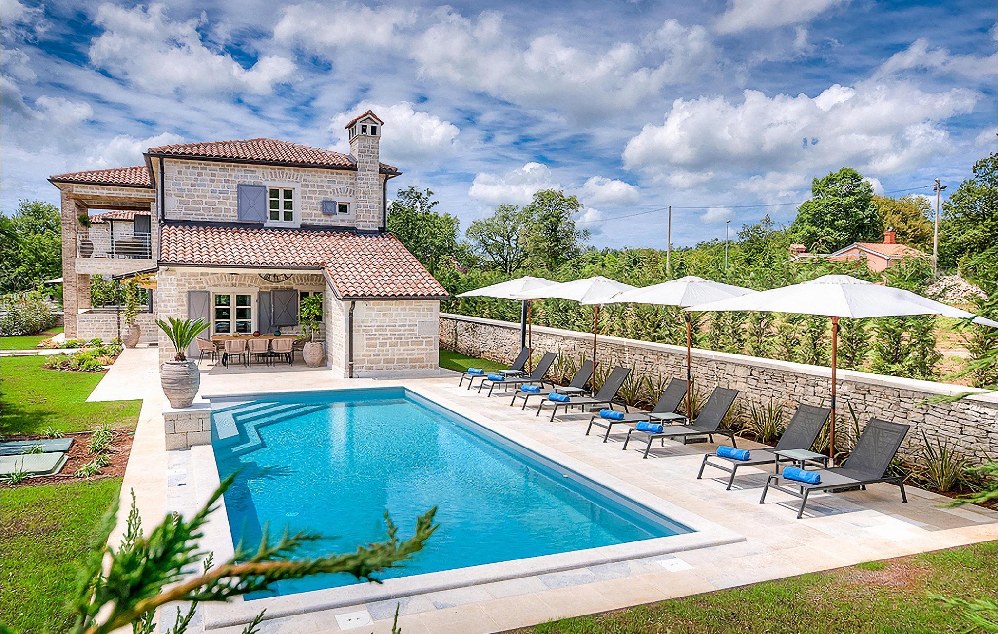 Denne smukke villa, sammen med Villa Nevia, Villa Elli og Villa Elena, ligger i et luksusprojekt med 5600 m2 privat jord, der tilbyder gæsterne af disse 4 villaer en økologisk have med årstidens grøntsager, udendørs fitness, 2 tennisbaner, 2 petanquebaner, samt baner til håndbold, fodbold, basketball og volleyball. For en ægte istrisk fornemmelse er der også 3 boskariner, hvide grå langhornede istriske kvæg, et symbol på regionen. Elegant, sofistikeret og fremragende beliggende midt i det maleriske istriske landskab, men alligevel inden for rækkevidde af solrige strande og livlige badebyer, tilbyder Villa Zoe luksuriøs indkvartering, hvor du øjeblikkeligt kan slappe af og nyde hvert minut af din ferie. Stueetagen er udelukkende dedikeret til overdådig bolig, med et vidunderligt langt rum opdelt af en buegang i opholds- og spise-/madlavningsområder med franske døre, der bringer overfloden af varmt istrisk lys indenfor. Fritlagt murværk, bjælkelofter og en smuk åben pejs skaber en varm og behagelig atmosfære, mens en blanding af moderne og vintage møbler og udsøgt indretning giver dig komfort af høj kvalitet. De fire stilfuldt designede soveværelser er fordelt over den øverste etage, mens stueetagen åbner direkte til det indbydende private poolområde, som udgør et fantastisk sted at slappe af og slappe af, herunder en dejlig, overdækket, autentisk grill med et spisebord, der gør en vidunderligt tilbagetog fra solen eller det perfekte sted at nyde dine udendørs måltider. Du vil aldrig mangle ting at gøre og steder at besøge, hvilket gør denne smukke villa til en god base for din ferie i Istrien. Villa Zoe er beliggende i den centrale del af halvøen Istrien, nær den lille by Kanfanar. Den gamle arkitektur i byen og de omkringliggende landsbyer er velbevaret, og vinmarker og oliven dominerer dette område med varmt middelhavsklima. Kanfanar og dets omkringliggende landskab er kendt, ikke kun for deres historiske og kulturelle arv, men for ægte istrisk køkken. Istrien er et unikt og fortryllet sted, der har budt velkommen til besøgende og bosættere fra alle dele af verden, så længe vi har nedtegnet historie. Byen Pula med dets romerske amfiteater og Brijuni nationalpark med en 18-hullers golfbane ligger kun 30 minutters kørsel derfra. Det er et fantastisk sted at nyde maden, historien og trods alt at slappe af. En bil anbefales.