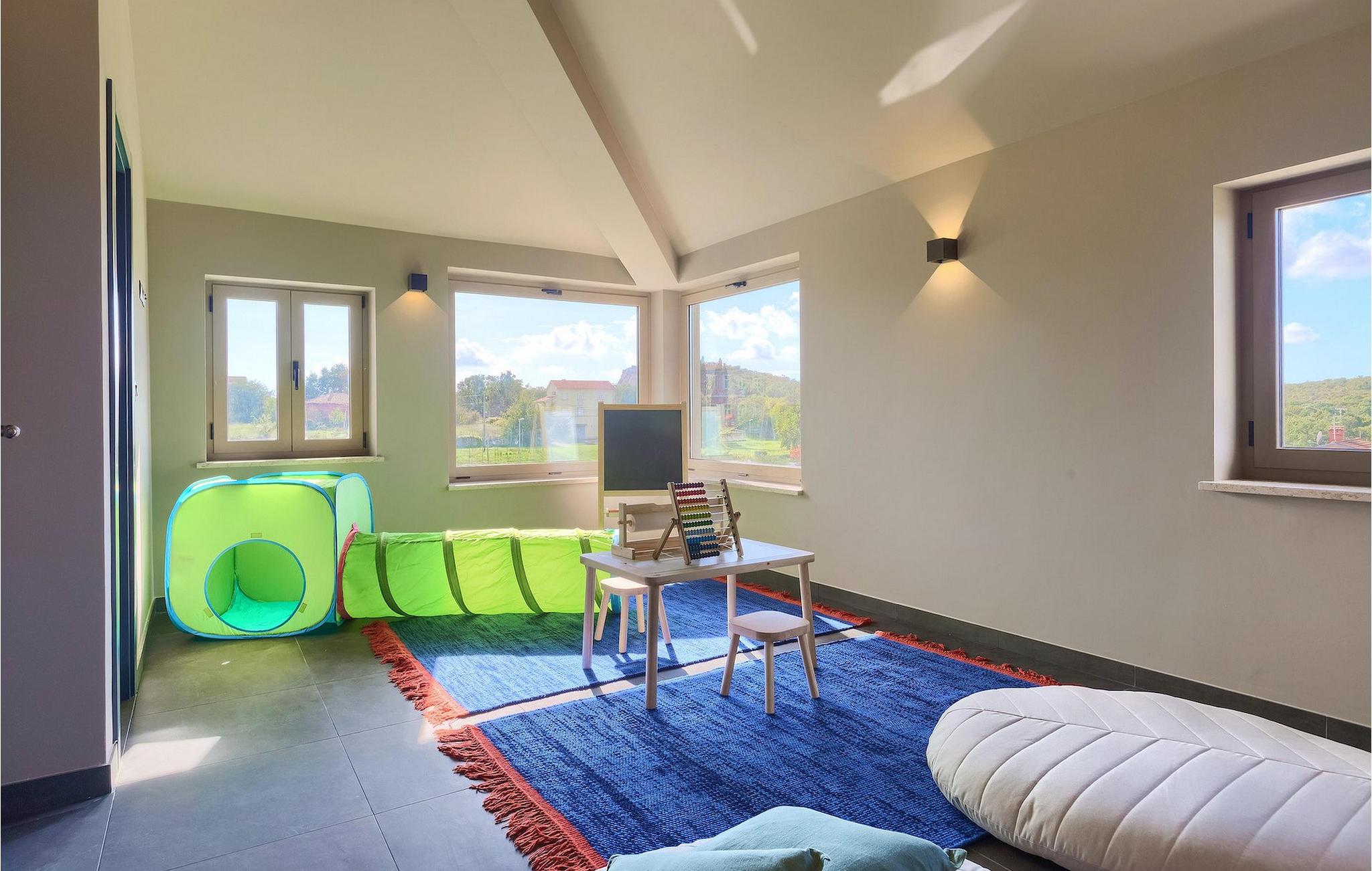 Til uforglemmelige stunder udendørs har du en stor have, med en omhyggeligt plejet græsplæne og blomster, en privat pool og et overdækket udekøkken med stor spiseplads. Uanset om du vil grille og hænge ud, solbade eller hvile dig, så tag en pause fra hverdagen og sug energien til dig på dette magiske sted. Villa San Martino er dit eventyrsted for en ideel familieferie i smukke Istrien. I den sydvestlige del af Istrien, omkring 15 minutters kørsel fra Rovinj, ligger en lille landsby Sošici, i byen Kanfanar. Du finder den fred, der er karakteristisk for små bebyggelser i Istriens bagland, men samtidig ofrer du ikke noget, fordi det ånder levende i 365 dage om året.