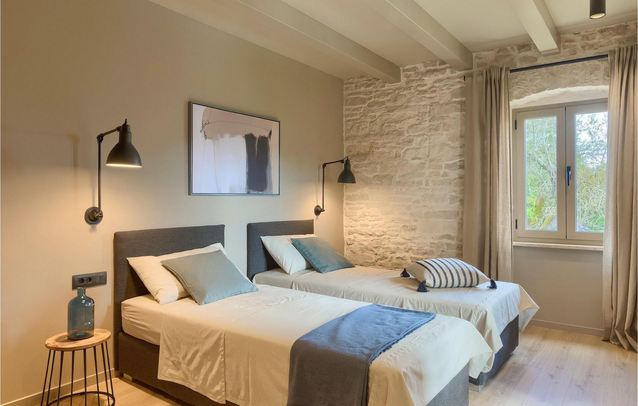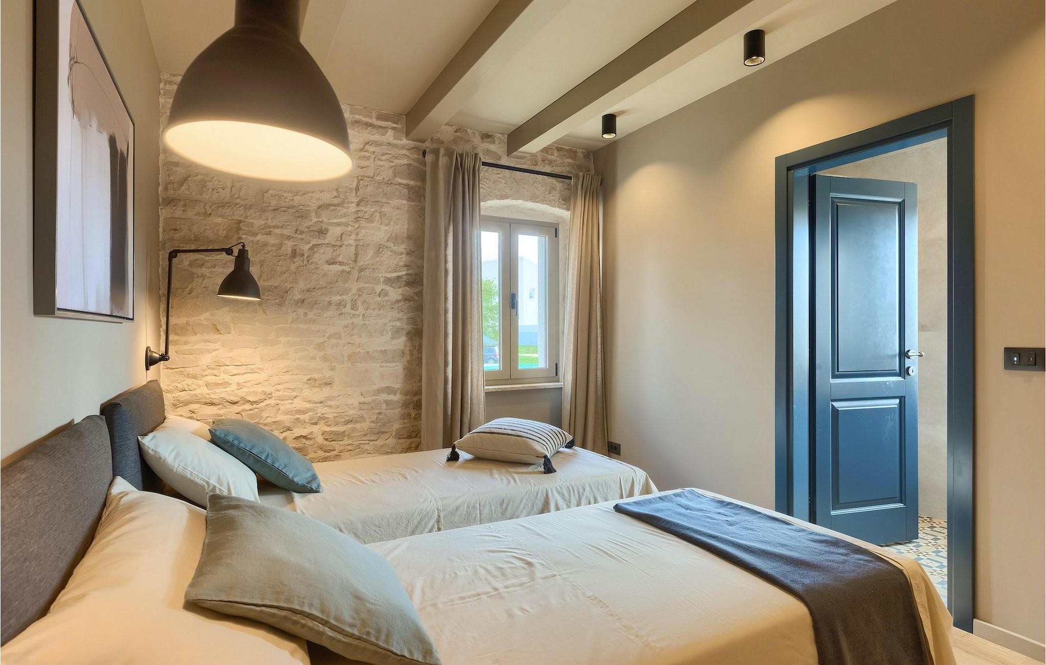 Fra jorden, går du op på første sal, hvor der er tre soveværelser, hver med en dobbelt komfortabel seng til dit drømmeimperium. Du vil især blive imponeret over detaljerne i stenmuren, og et øjeblik vil du glemme, hvilket århundrede du befinder dig i - helt forståeligt i ferien.